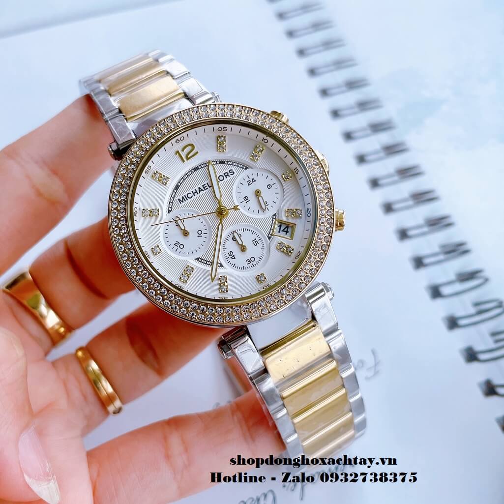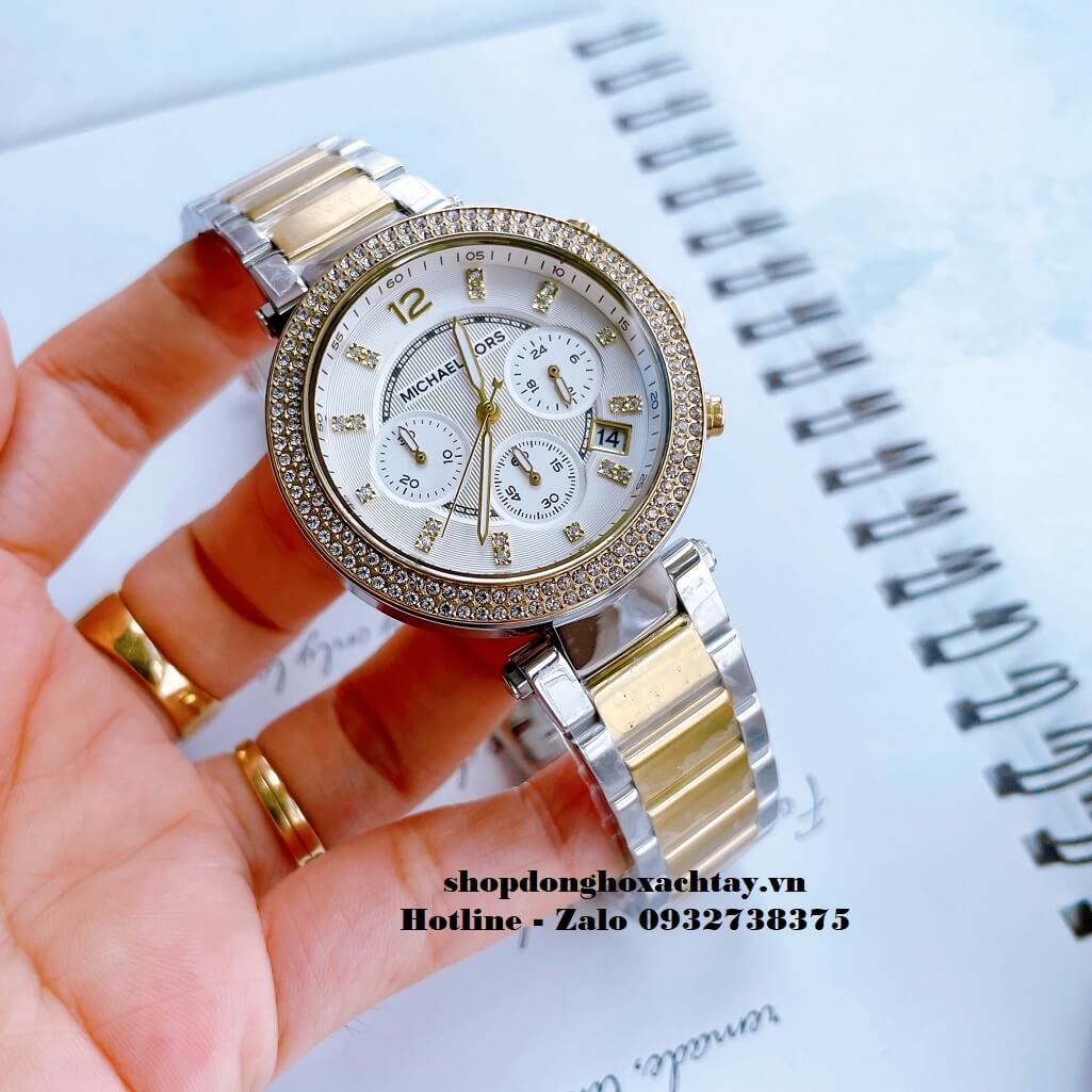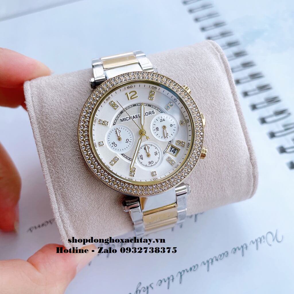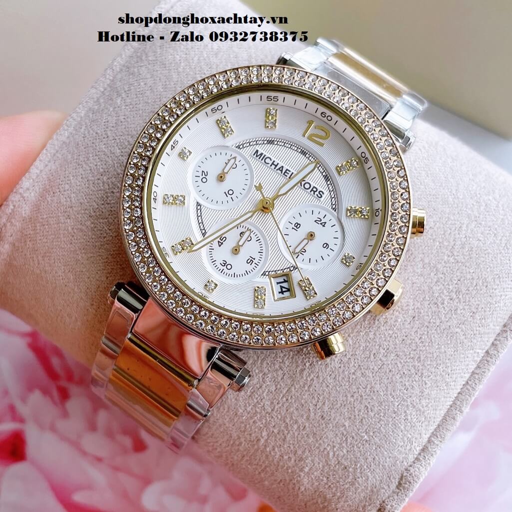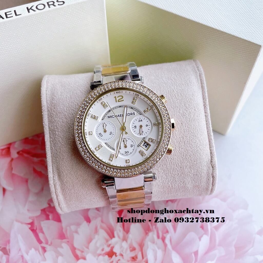 - Dòng MK Paker 6 kim cá tính, viền đá Swarovski lấp lánh, màu demi bạc phối vàng sáng bóng