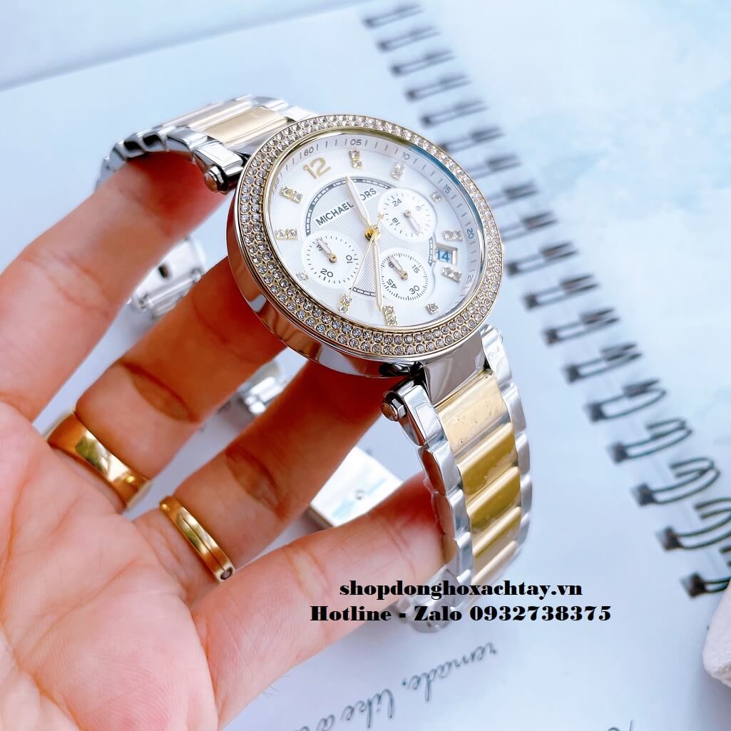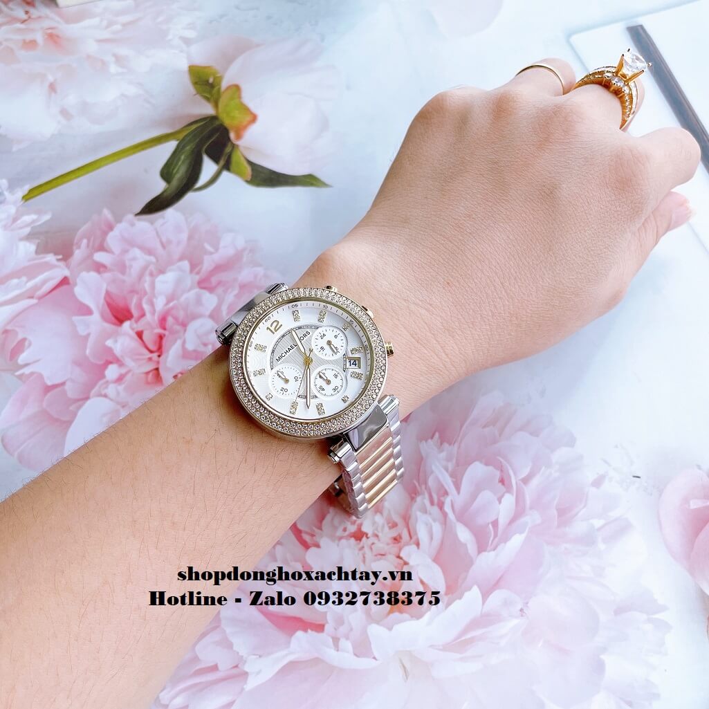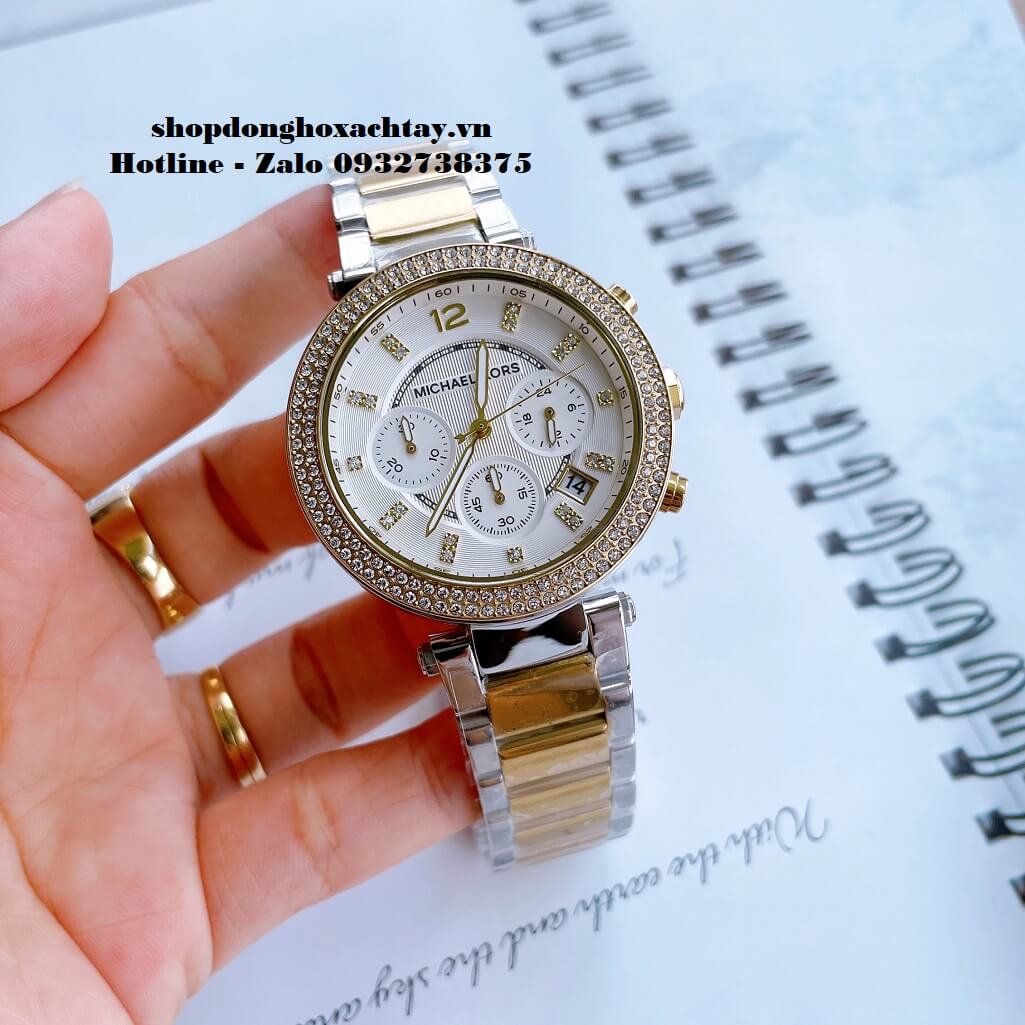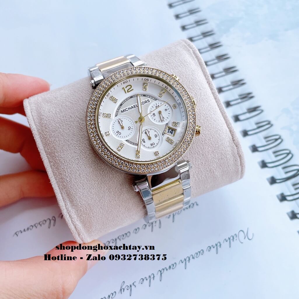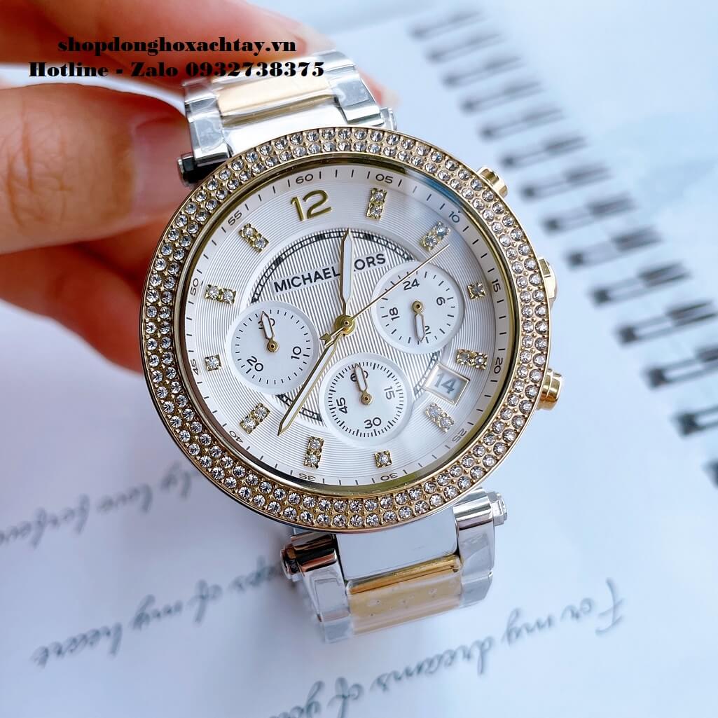 - Dòng MK Paker 6 kim cá tính, viền đá Swarovski lấp lánh, màu demi bạc phối vàng sáng bóng