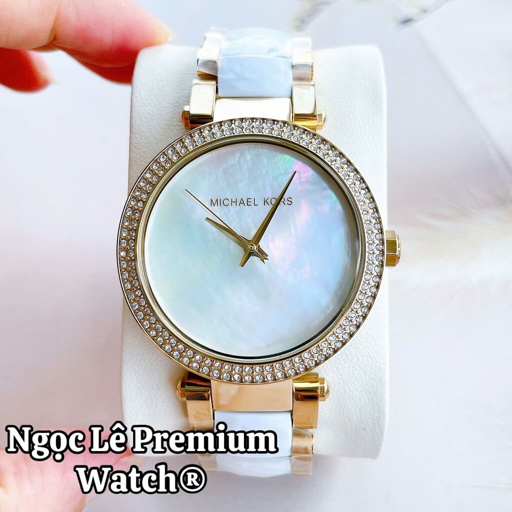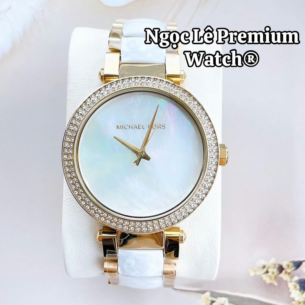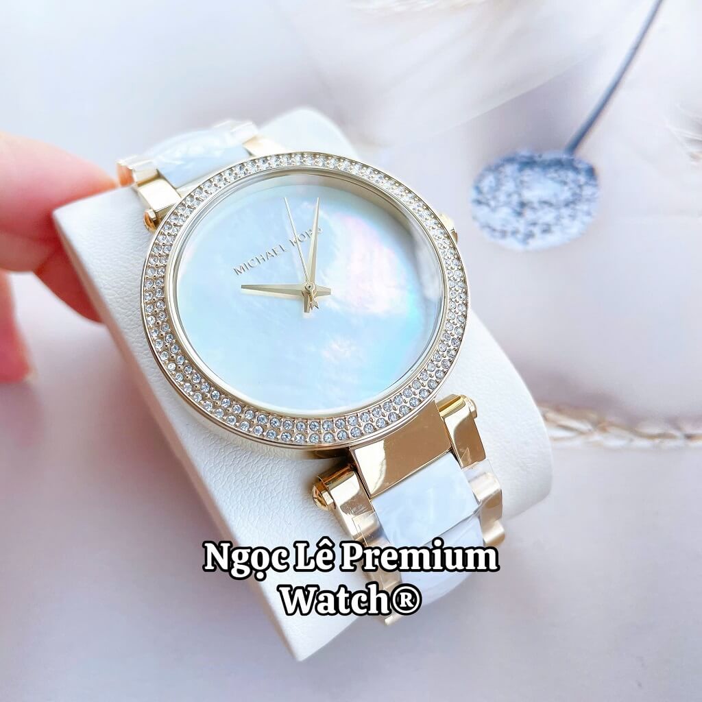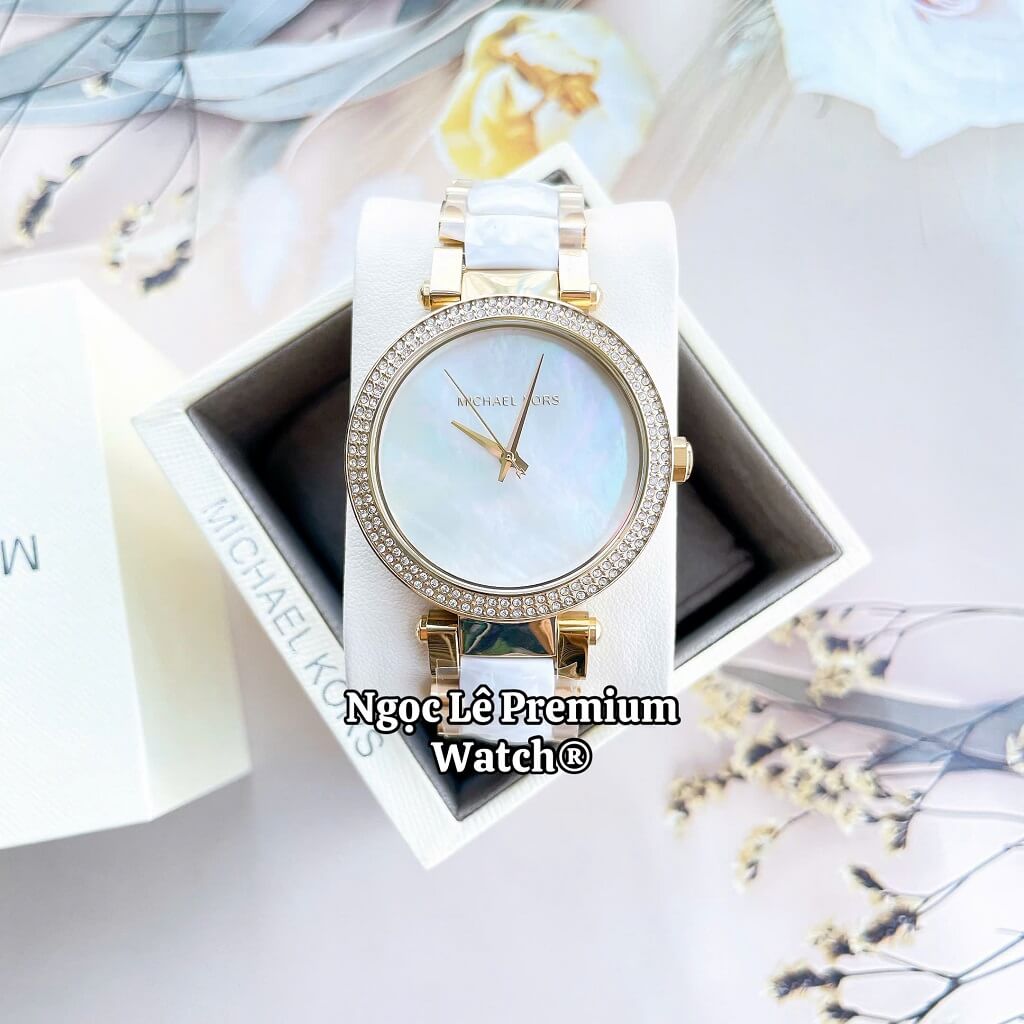 Đồng Hồ Nữ Michael Kors MK6400 Dây Acetate Đính Đá Vỏ Vàng Gold Size 38mm