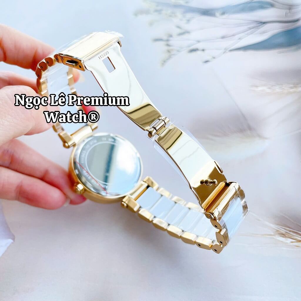 Vỏ: Thép không gỉ mạ vàng gold, viền đính đá
