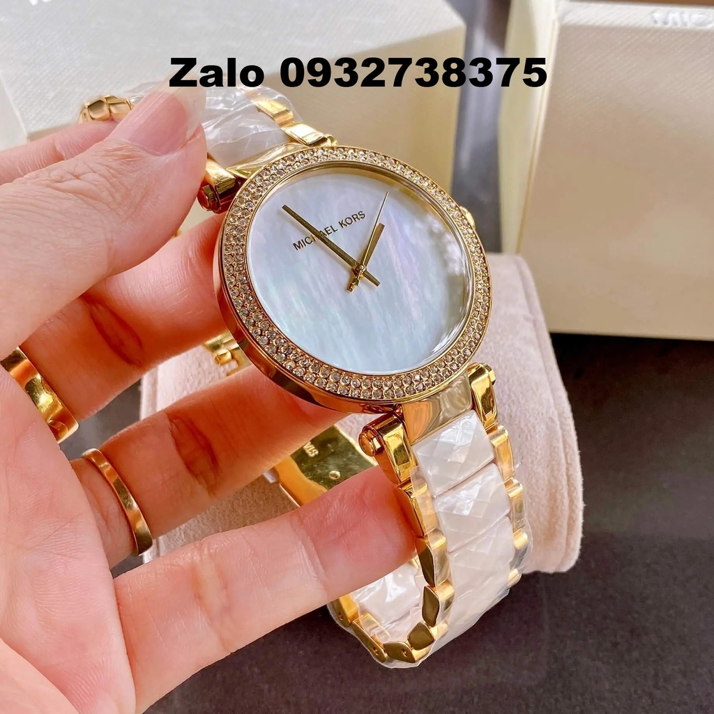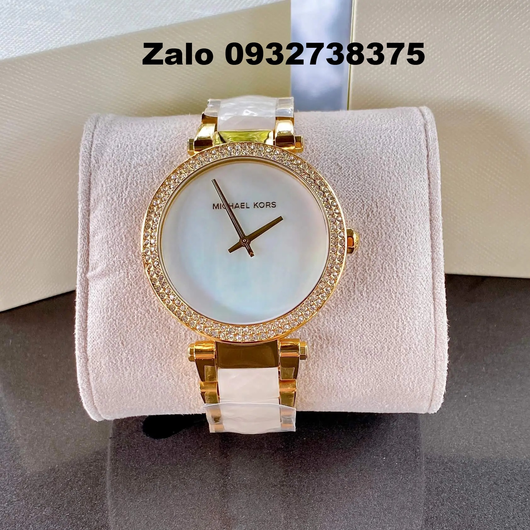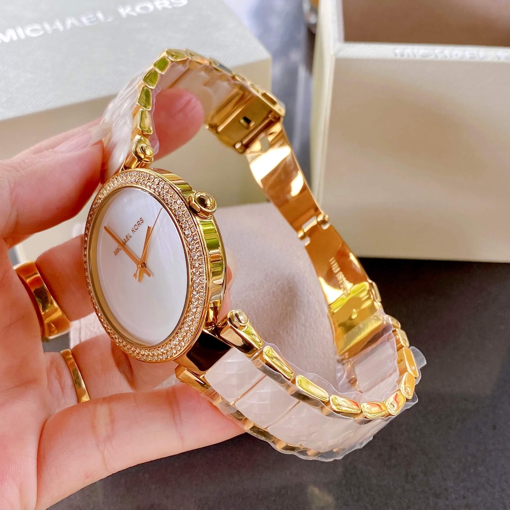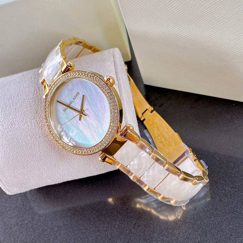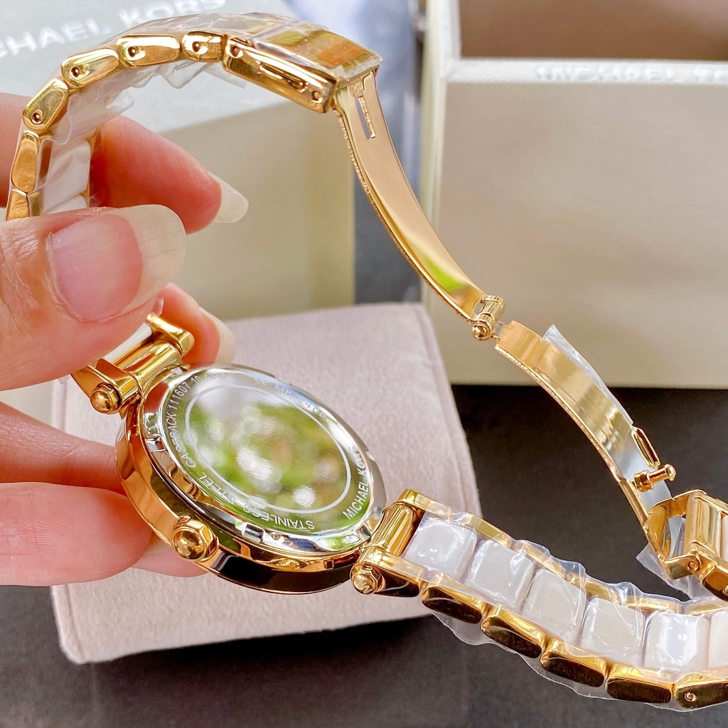 - Đồng Hồ Nữ Michael Kors MK6400 Dây Kim Loại Vàng Gold Mix Acetate Trắng Size 39mm