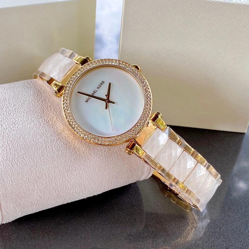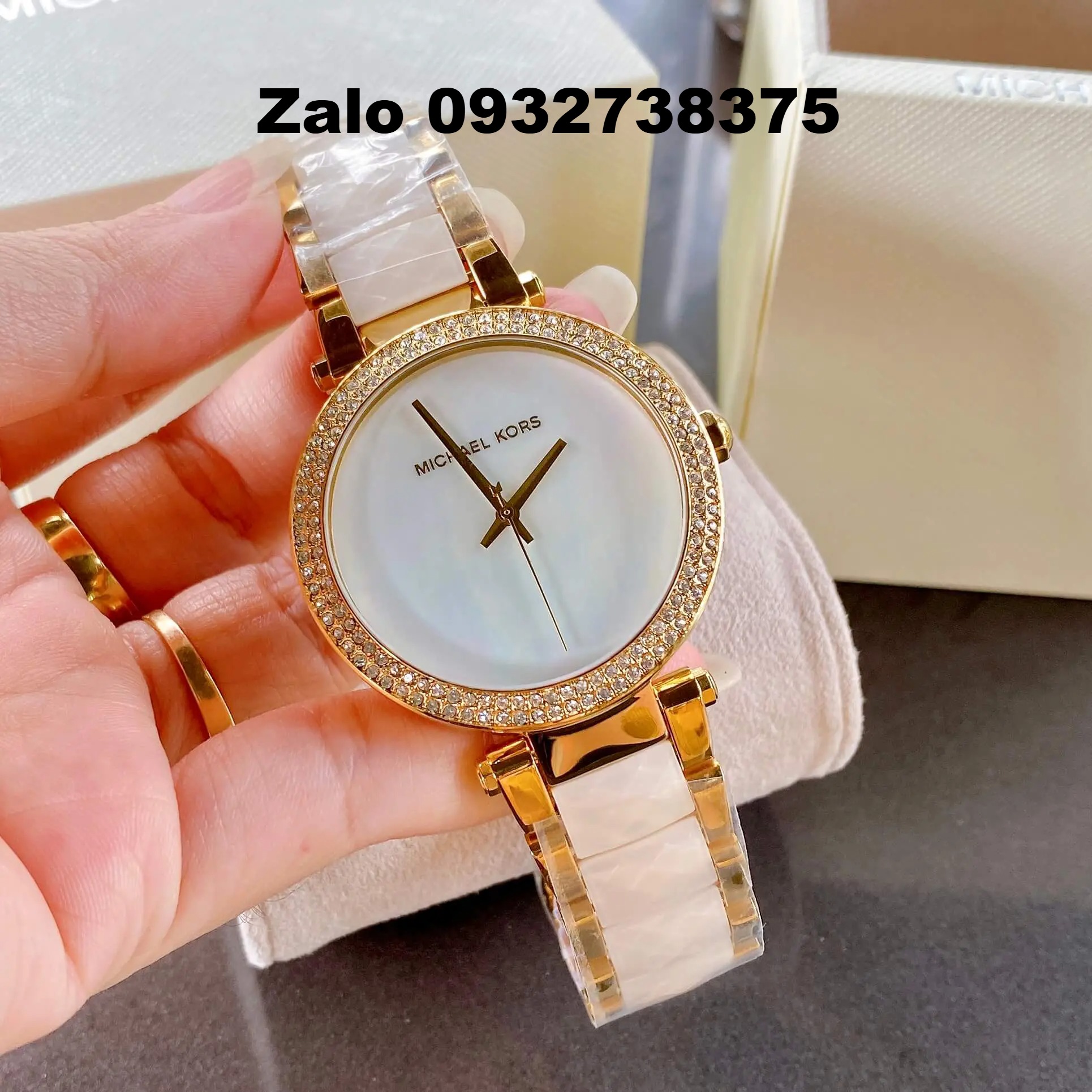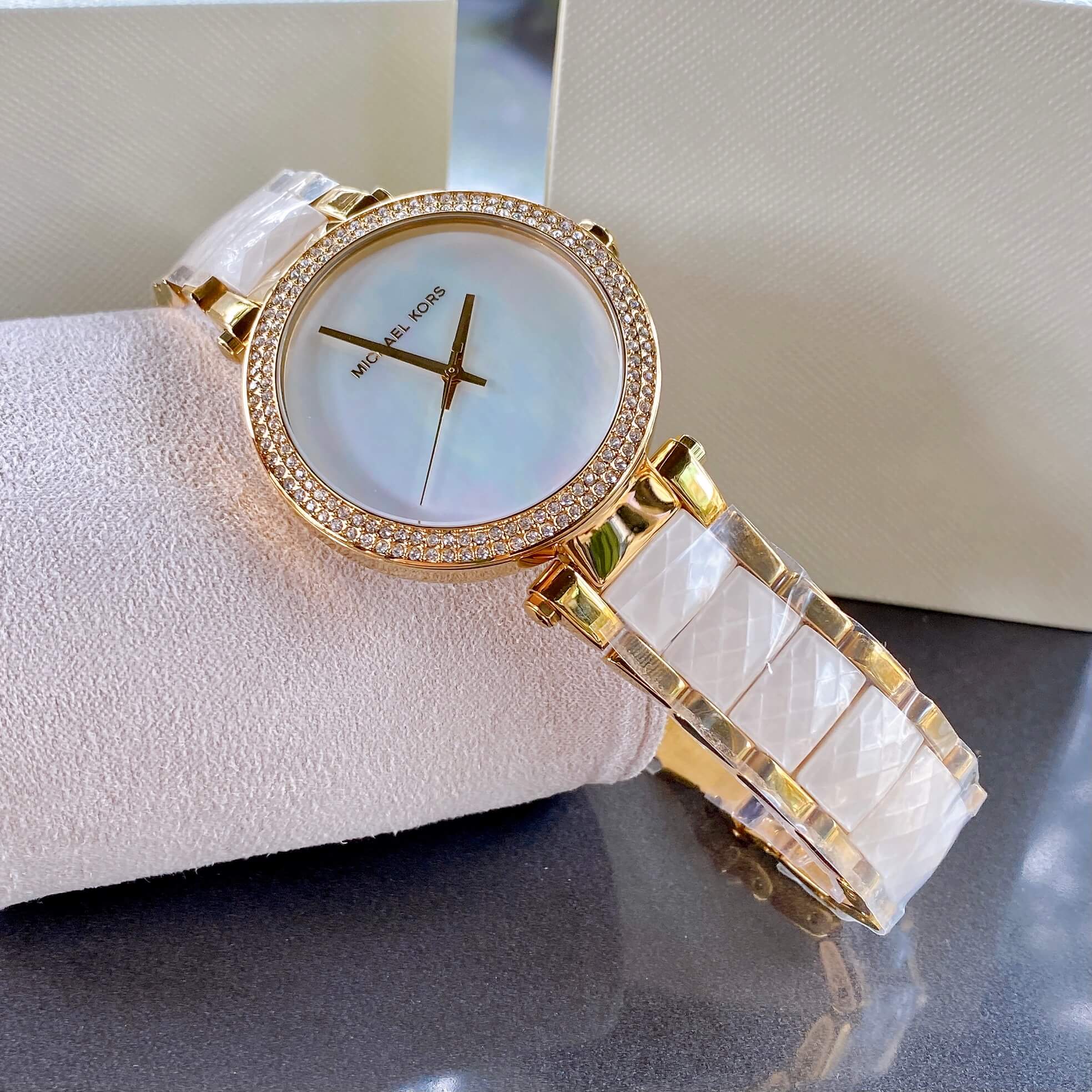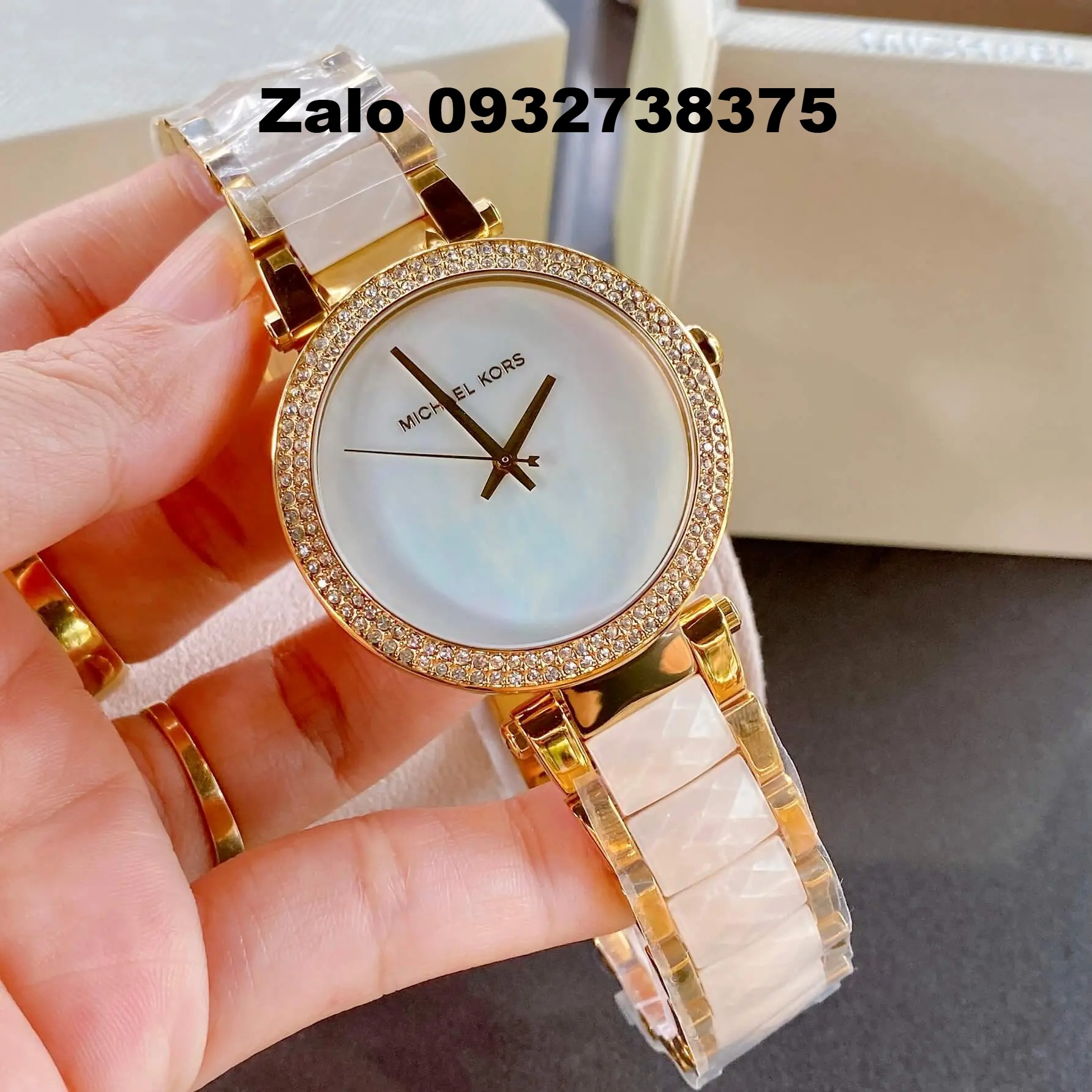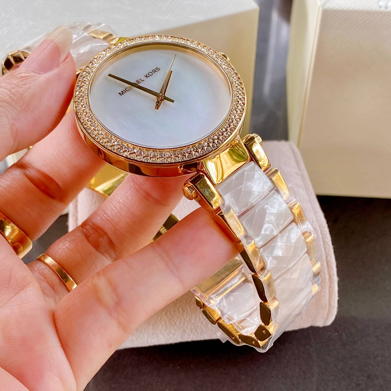 - Đồng Hồ Nữ Michael Kors MK6400 Dây Kim Loại Vàng Gold Mix Acetate Trắng Size 39mm