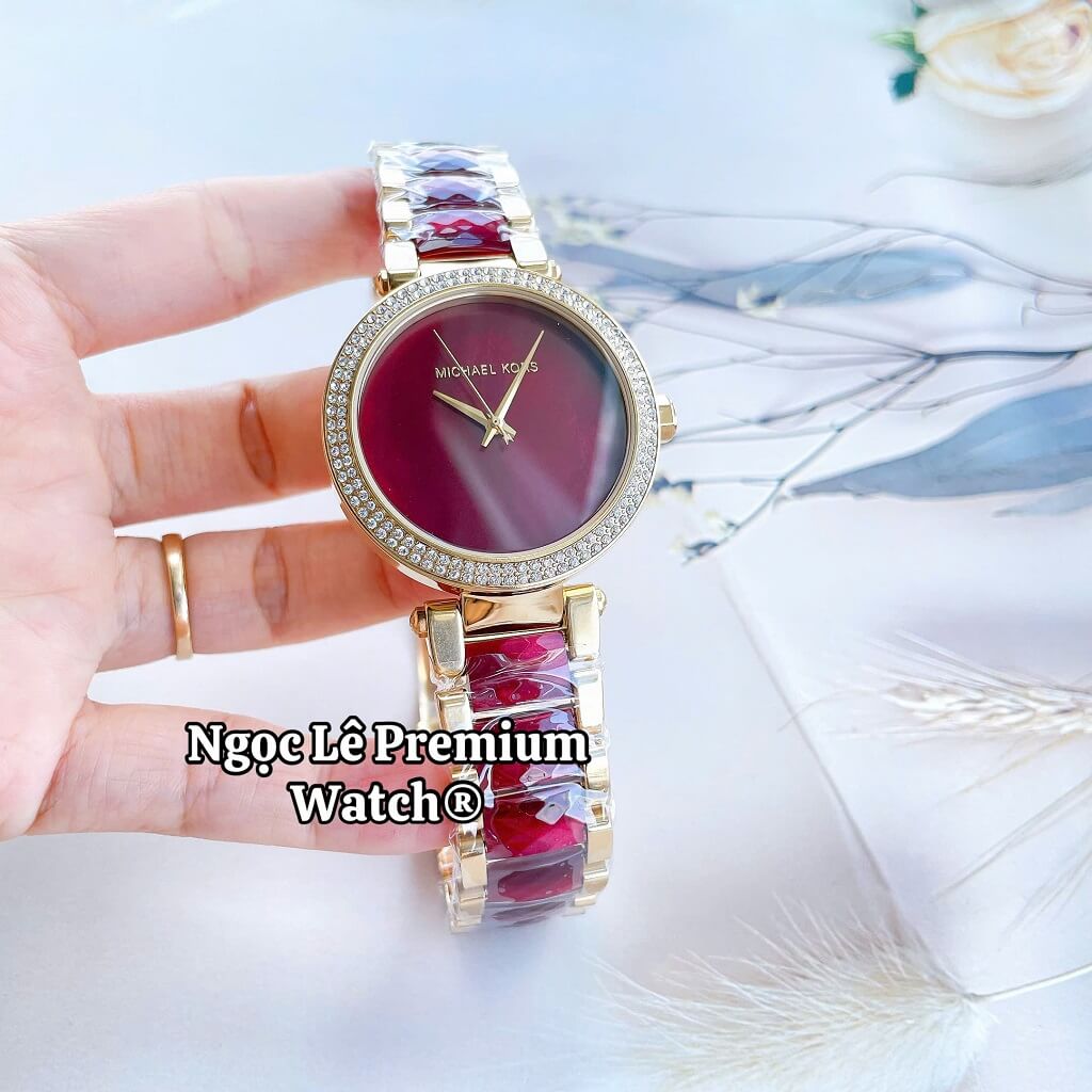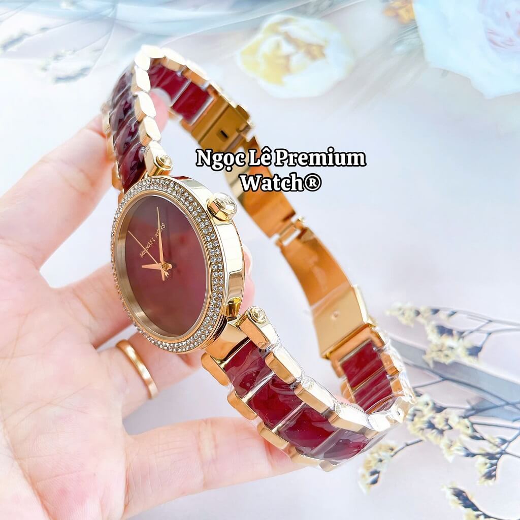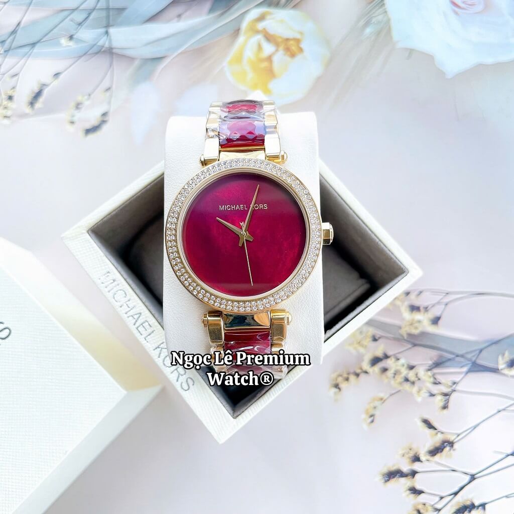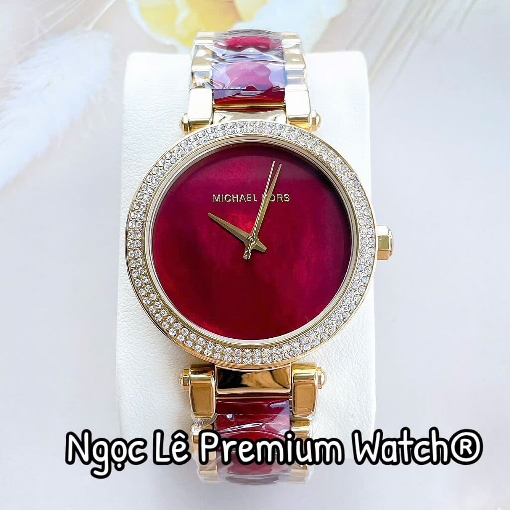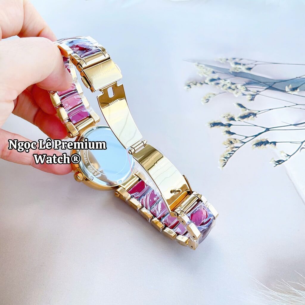 Đồng Hồ Nữ Michael Kors MK6427 Dây Acetate Đính Đá Vỏ Vàng Size 38mm