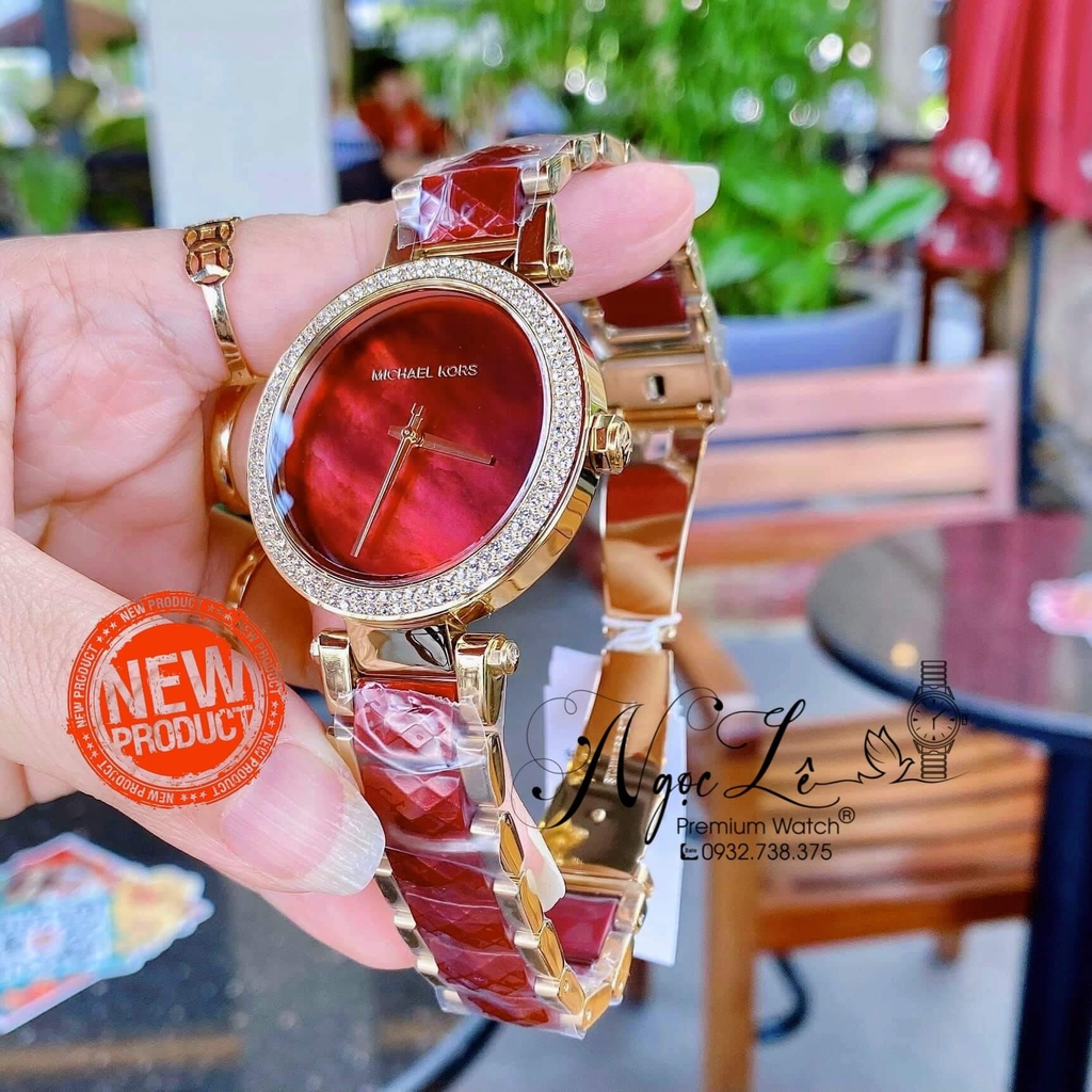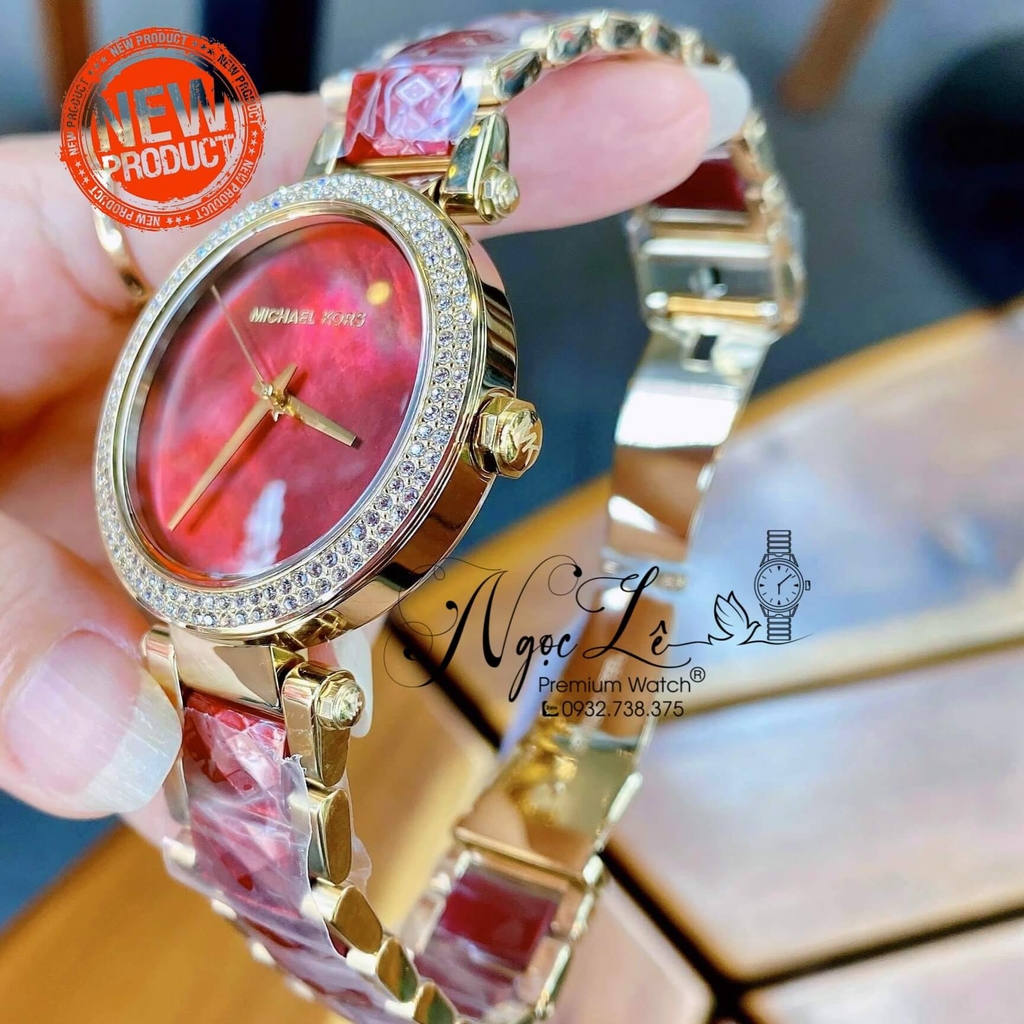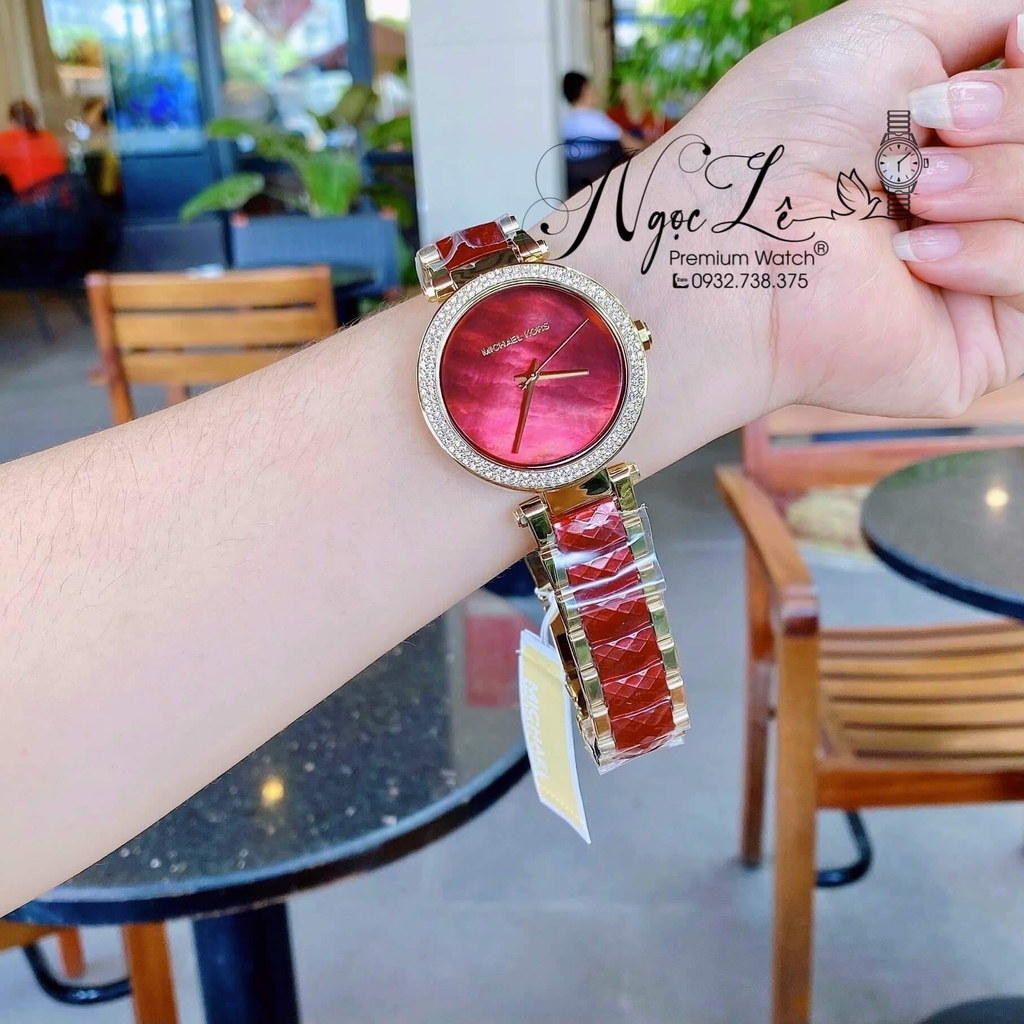 Mẫu đồng hồ Michael Kors MK6427 mang thiết kế nổi bật với tone đỏ rực rỡ kết hợp vỏ vàng sang trọng. Thiết kế mặt tròn cổ điển cùng dây kim loại và acetate tạo nên tổng thể thời thượng, phù hợp cho những cô nàng yêu thích phong cách cá tính nhưng vẫn thanh lịch.