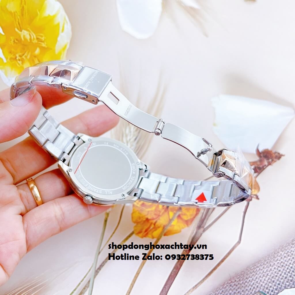 - Mặt 3 kim đính đá full bóng loáng với logo MK sang chảnh vị trí 12h