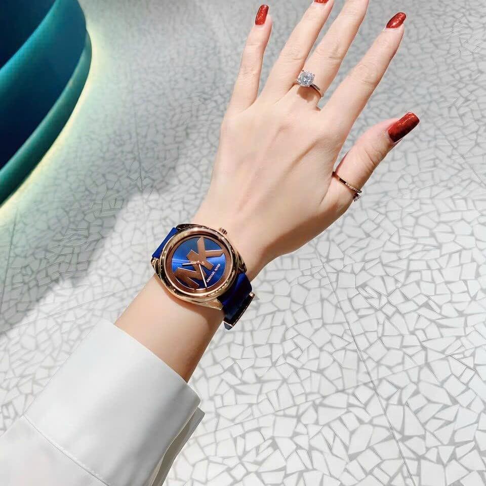 - Đồng Hồ Nữ Michael Kors MK7140 Dây Silicone Xanh Vỏ Rose Gold Size 41mm chính hãng