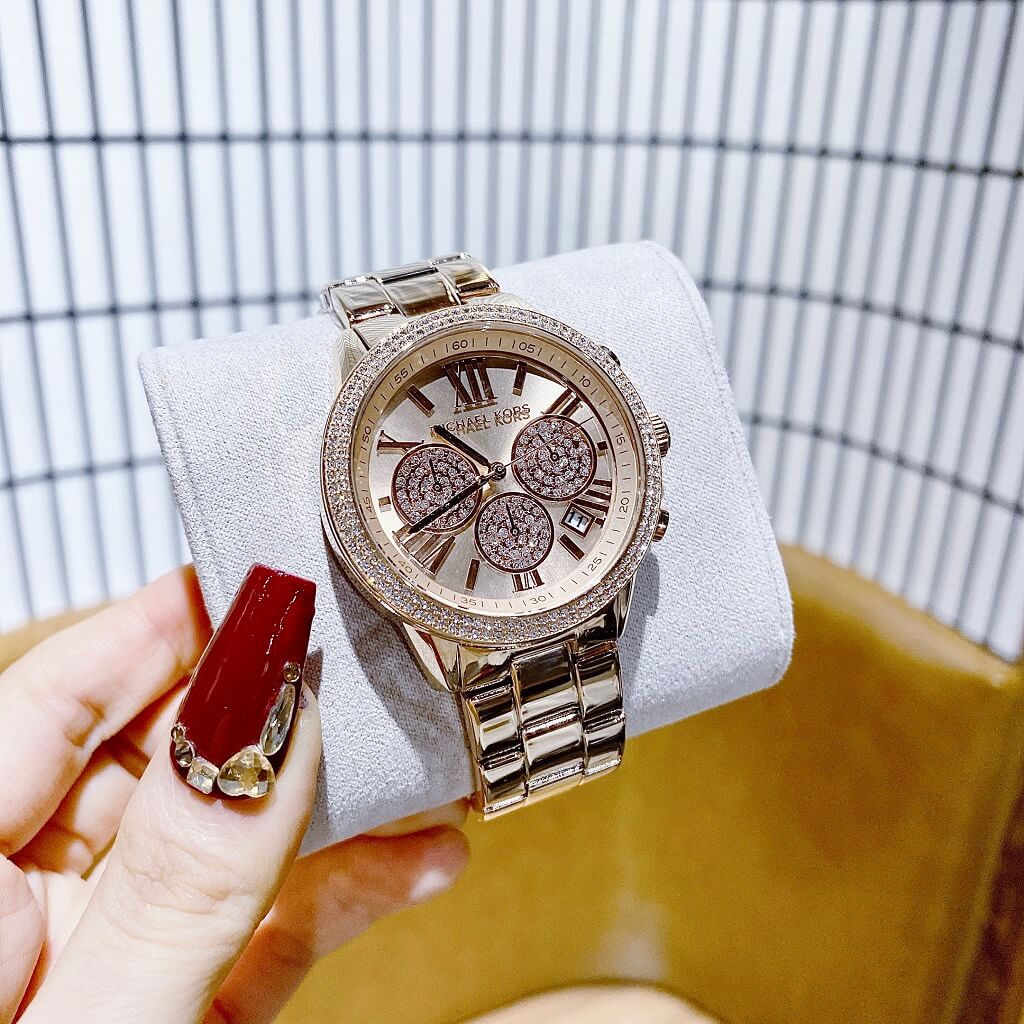 - Mẫu đồng hồ mang đậm chất Michael Kors, với thiết kế viền đính đá