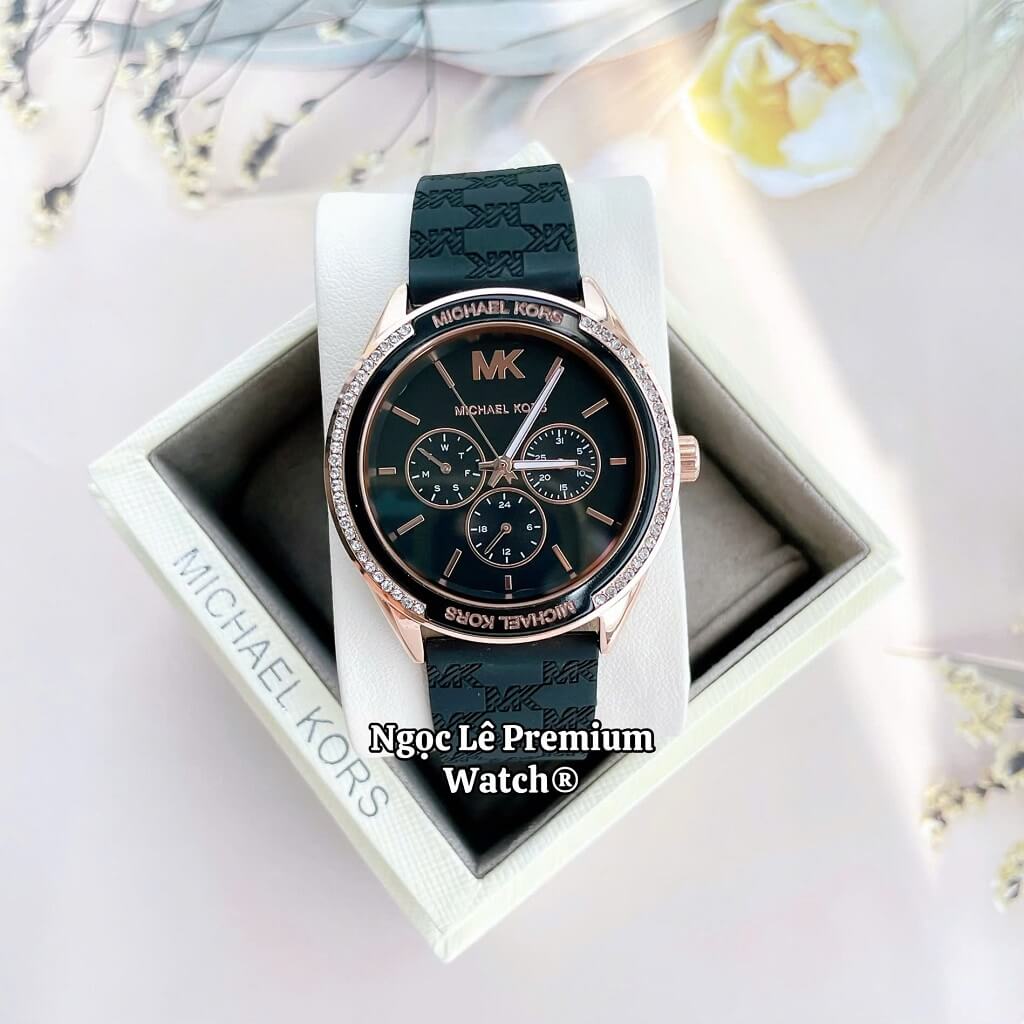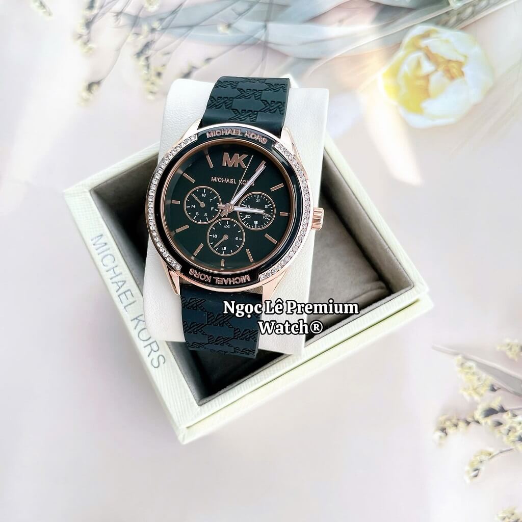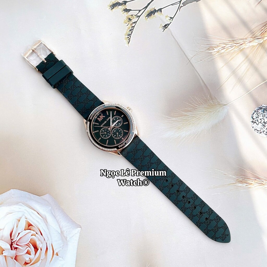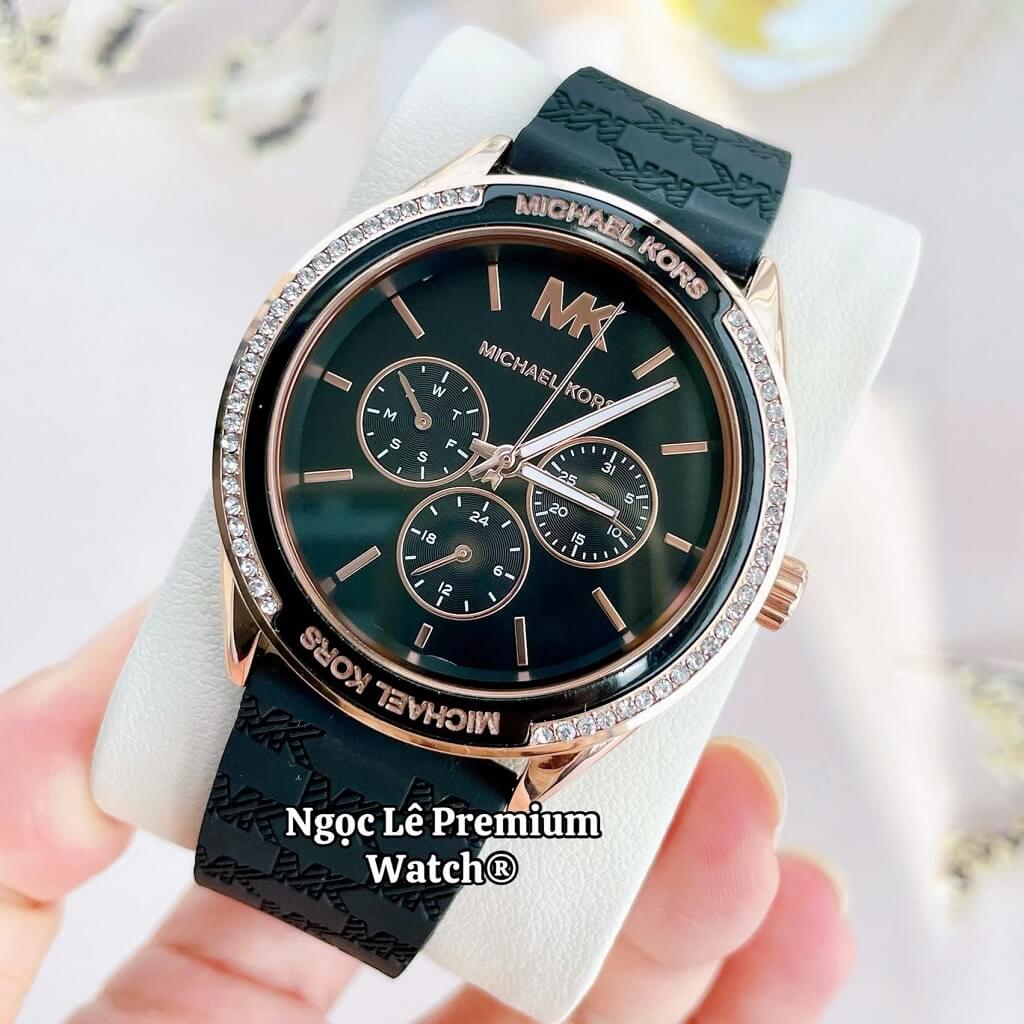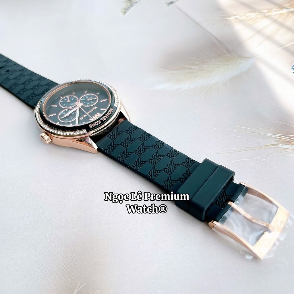 Đồng Hồ Nữ Michael Kors MK7266 Dây Silicone Đen Đính Đá Vỏ Vàng Hồng Size 40mm