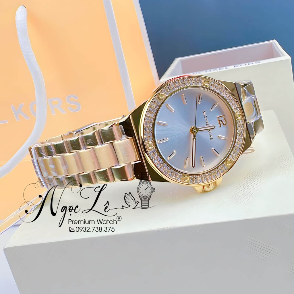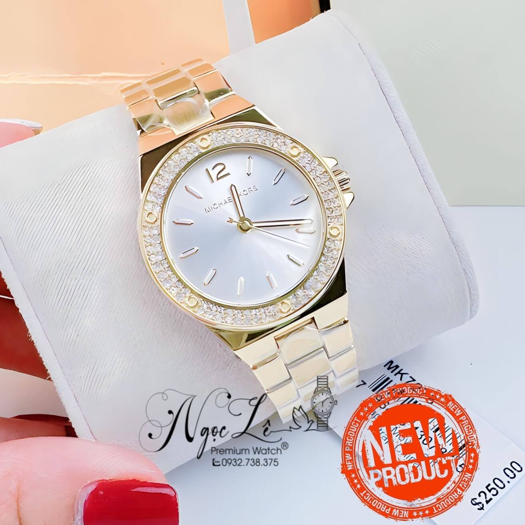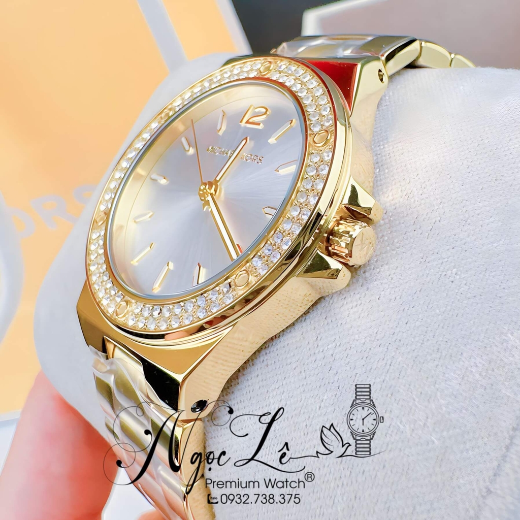 Đồng hồ MK màu vàng đính đá quanh mặt rất đẹp
