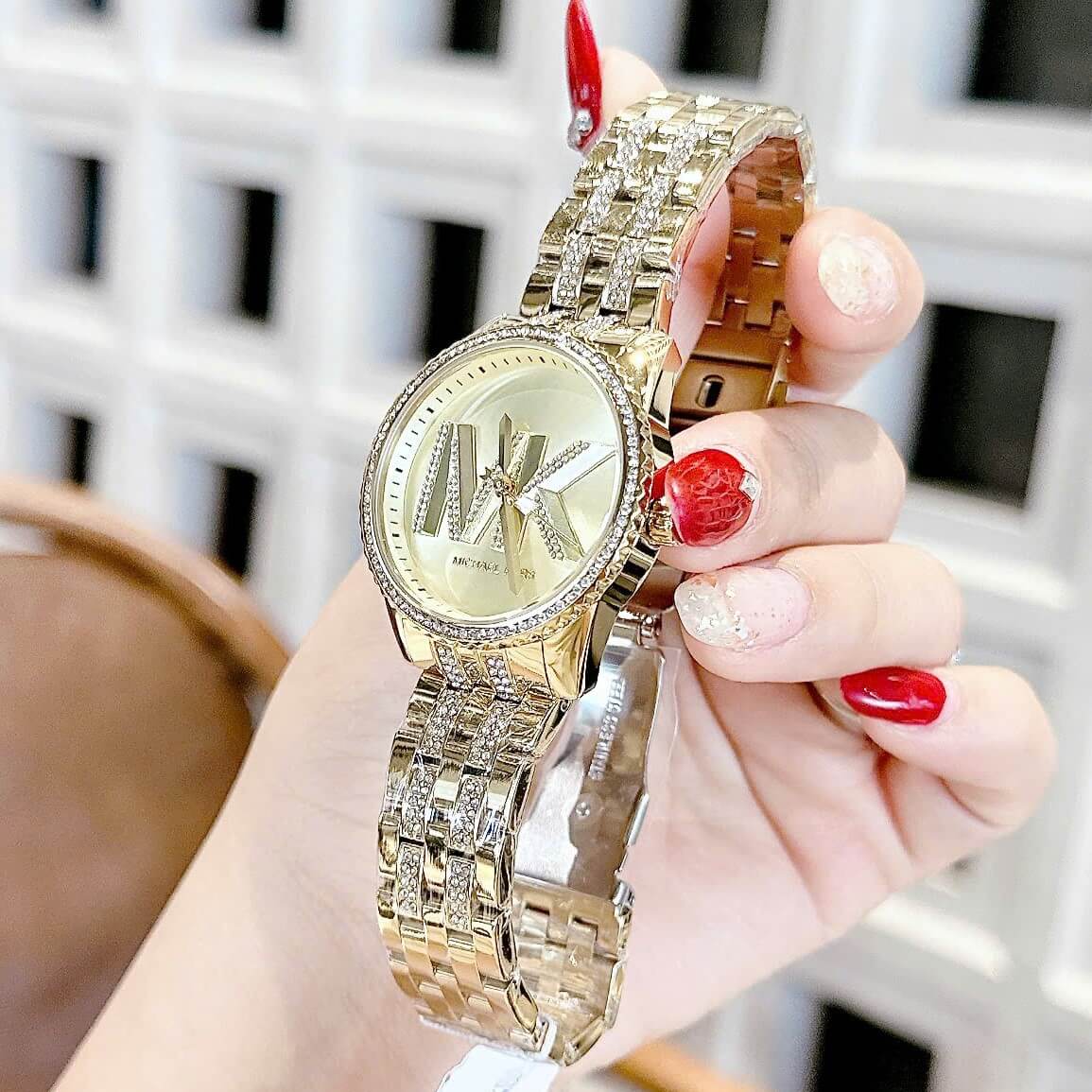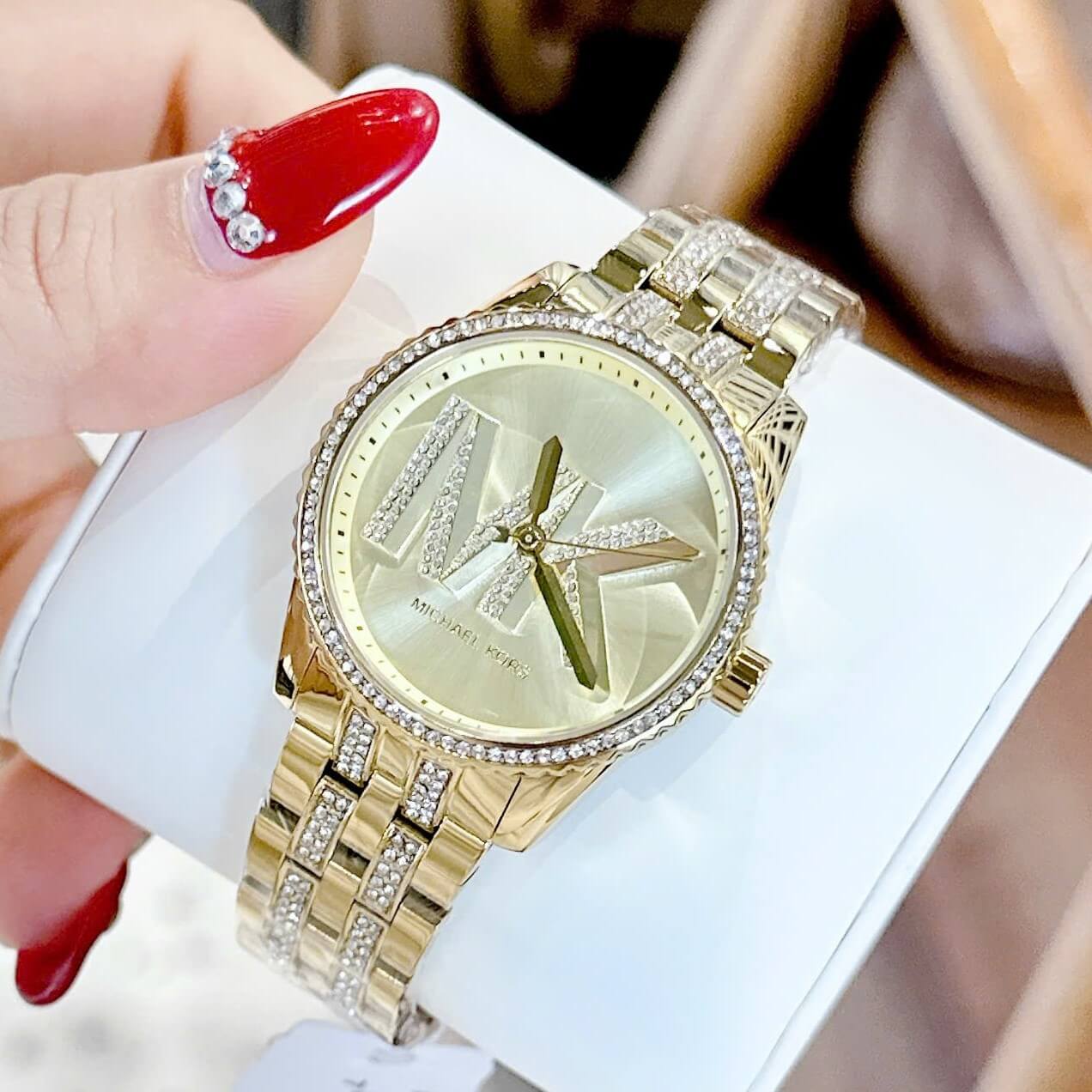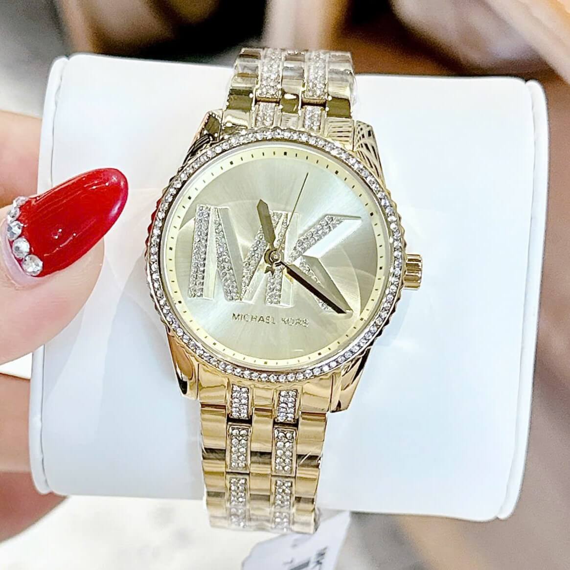 Mẫu Michael Kors MK7540 phiên bản vỏ vàng đính đá mang vẻ đẹp sang trọng, nổi bật và thời thượng. Tone vàng gold óng ánh kết hợp mặt số đính đá lấp lánh tạo điểm nhấn tinh tế, tôn da khi lên tay, cực kỳ phù hợp cho đi làm, dự tiệc hoặc dạo phố.