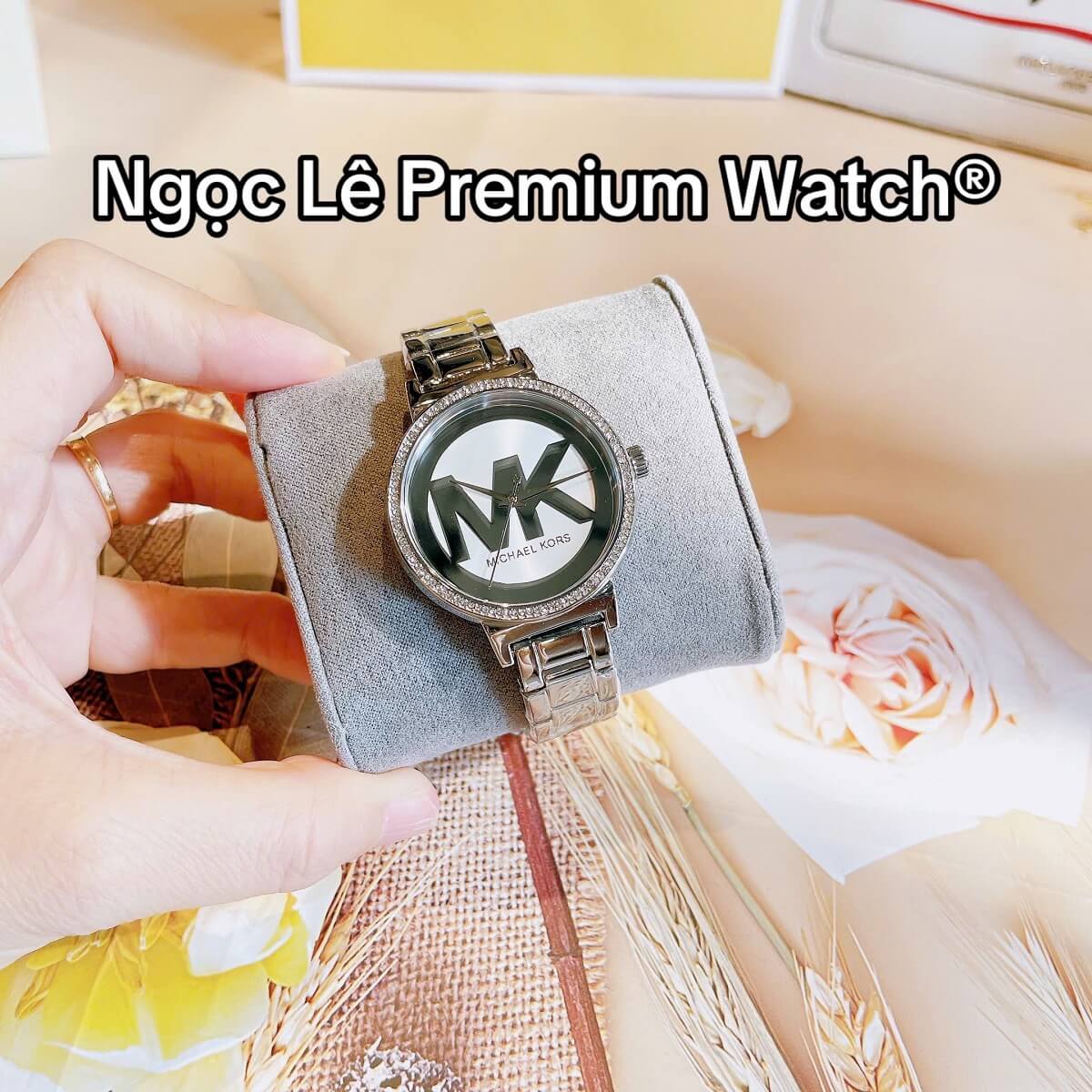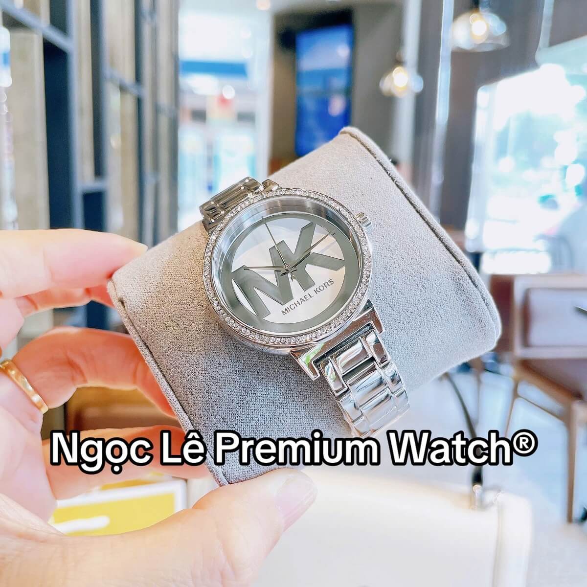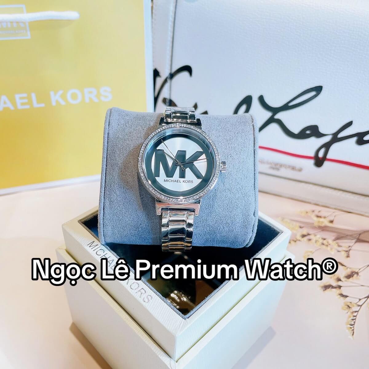 Mặt đồng hồ 36mm vừa vặn, nổi bật với logo MK cách điệu, đơn giản nhưng sang trọng