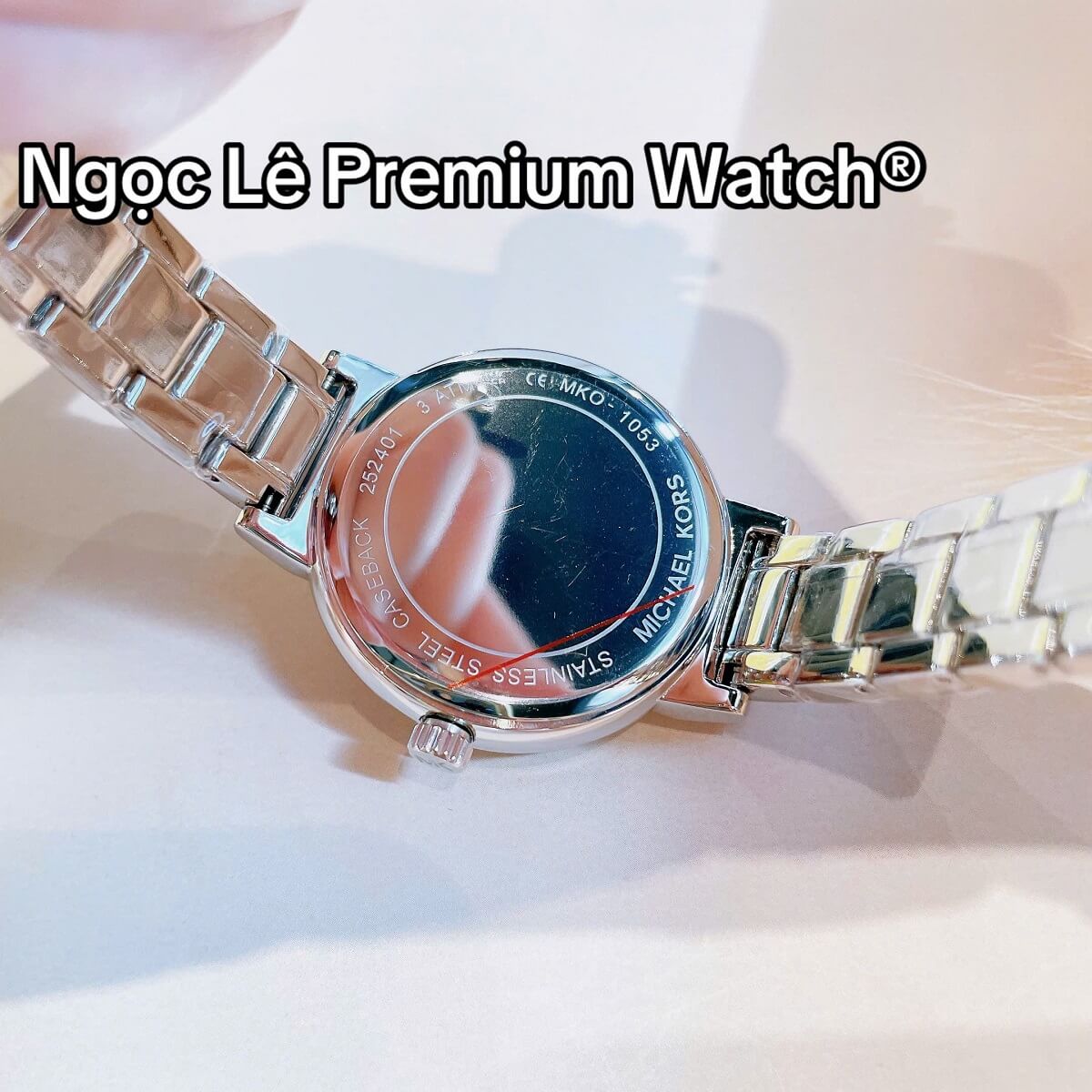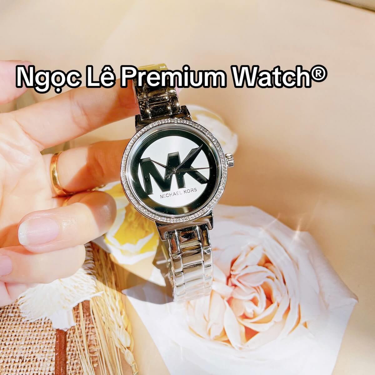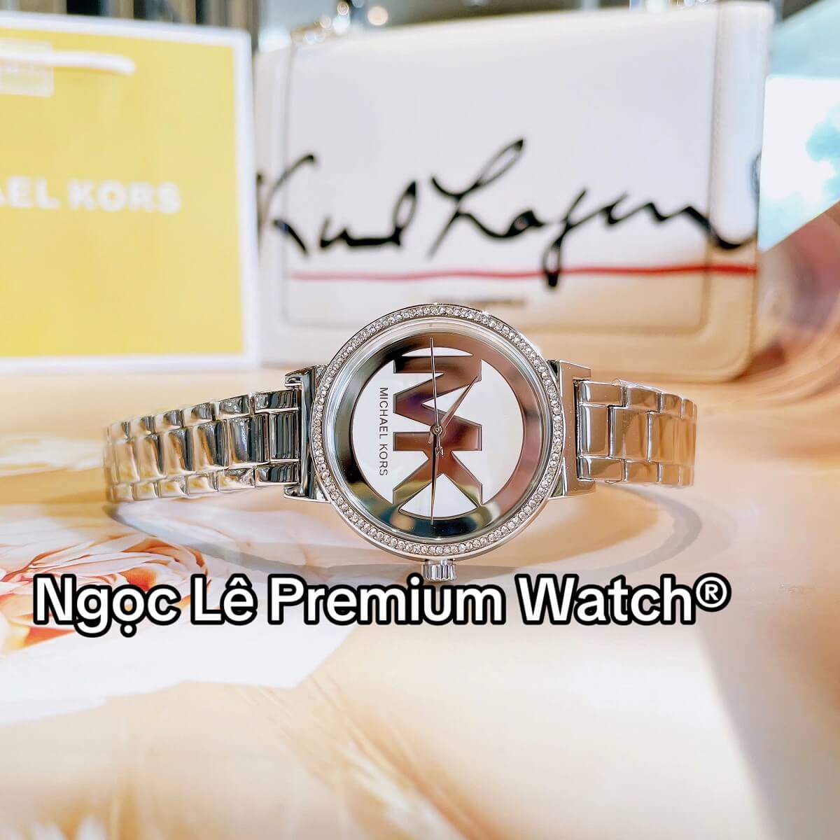 Mặt đồng hồ 36mm vừa vặn, nổi bật với logo MK cách điệu, đơn giản nhưng sang trọng