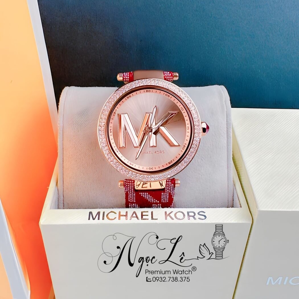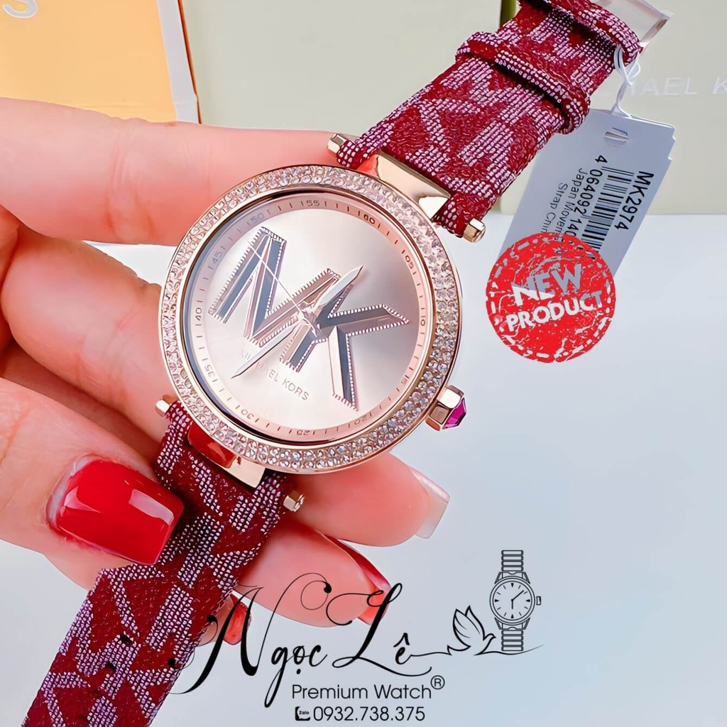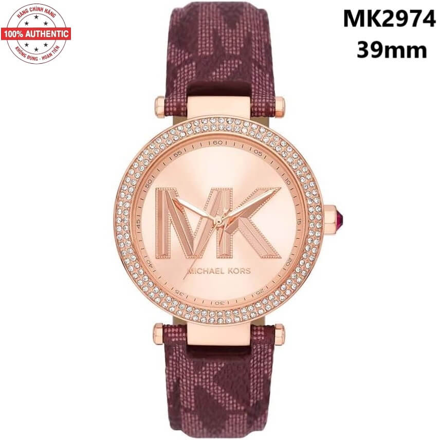 - Đồng Hồ Nữ Michael Kors Parker MK2974 Dây Da Đỏ Rượu Đính Đá Size 39mm Chính Hãng