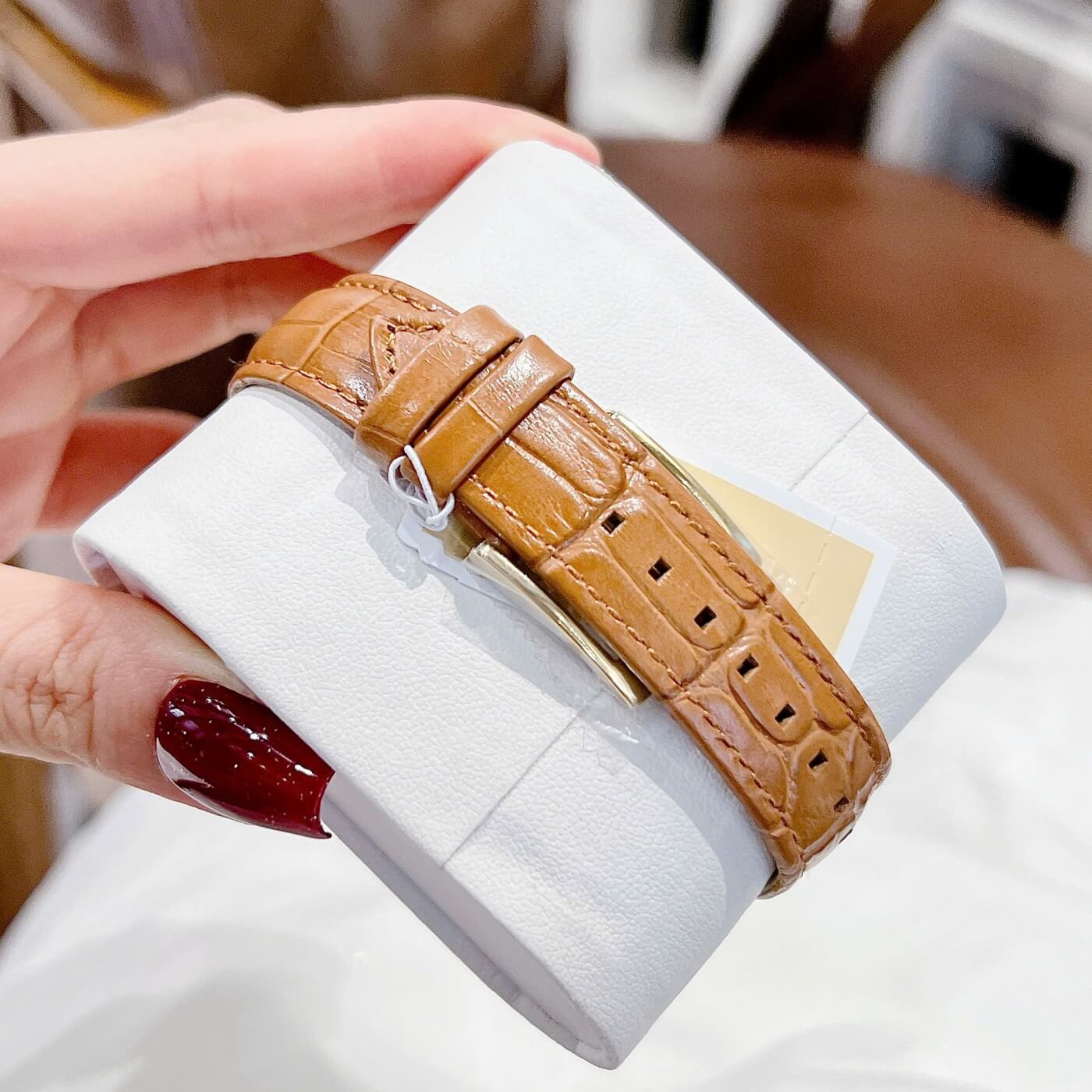 Dây da nâu mềm mại, khóa gài chắc chắn