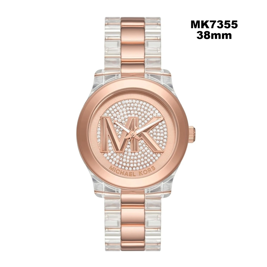 Đồng hồ MK7355 đến từ thương hiệu MK sang trọng, dòng Runway, điểm đặc biệt của mẫu này là chữ MK nằm ở trung tâm mặt, được đính đá sáng lấp lánh bên trong quanh chữ MK