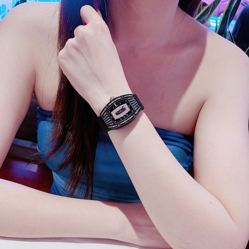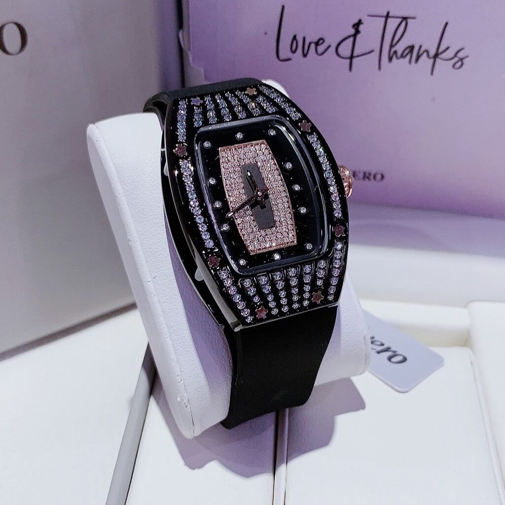 Đính đá: Mặt đồng hồ có các chi tiết đính đá, tăng thêm phần quý phái và lấp lánh cho chiếc đồng hồ.