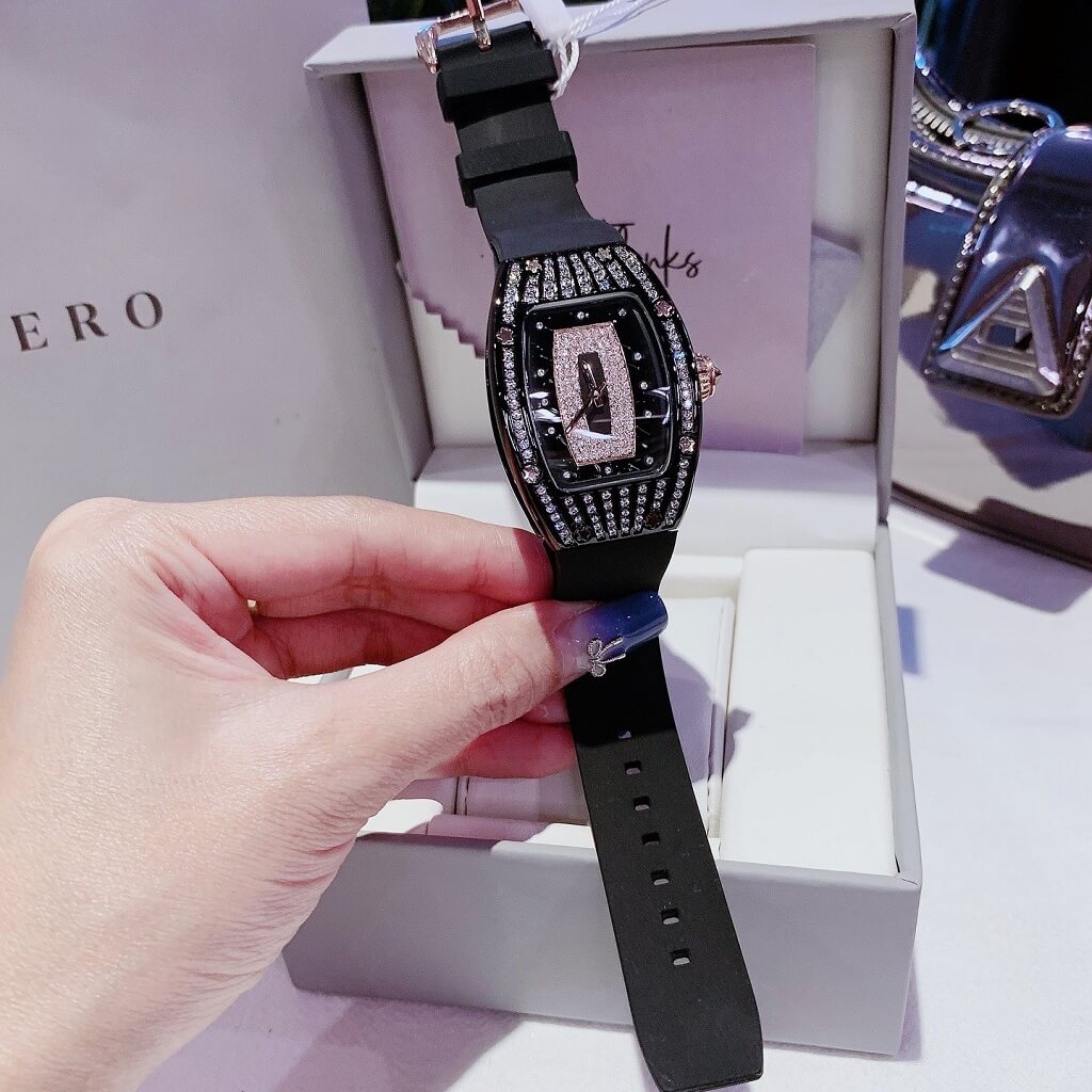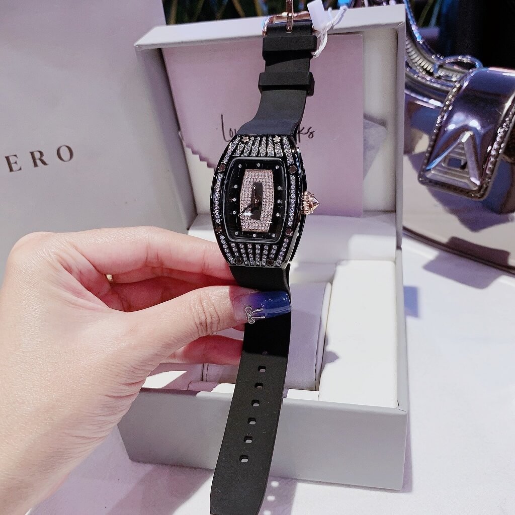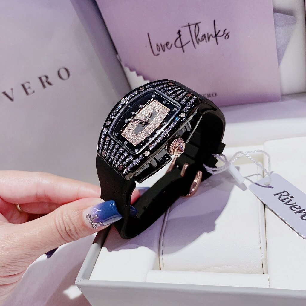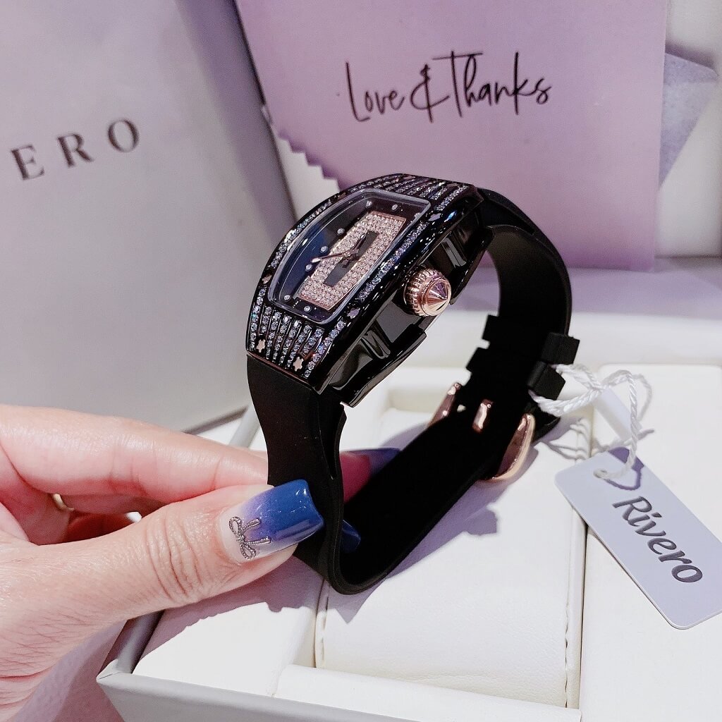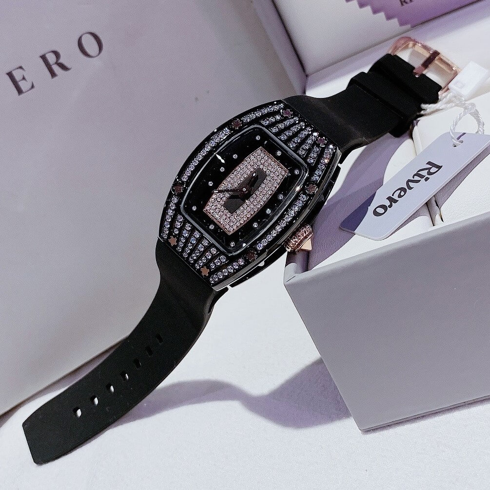 Thông tin chi tiết: Đồng Hồ Nữ Rivero R9005 Dây Cao Su Đen Vỏ Đen Đính Đá 36mm Chính Hãng