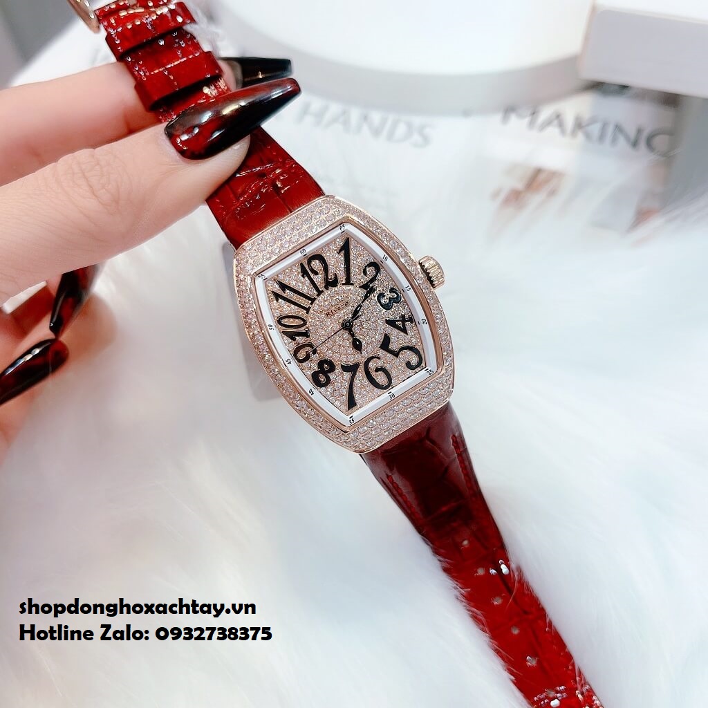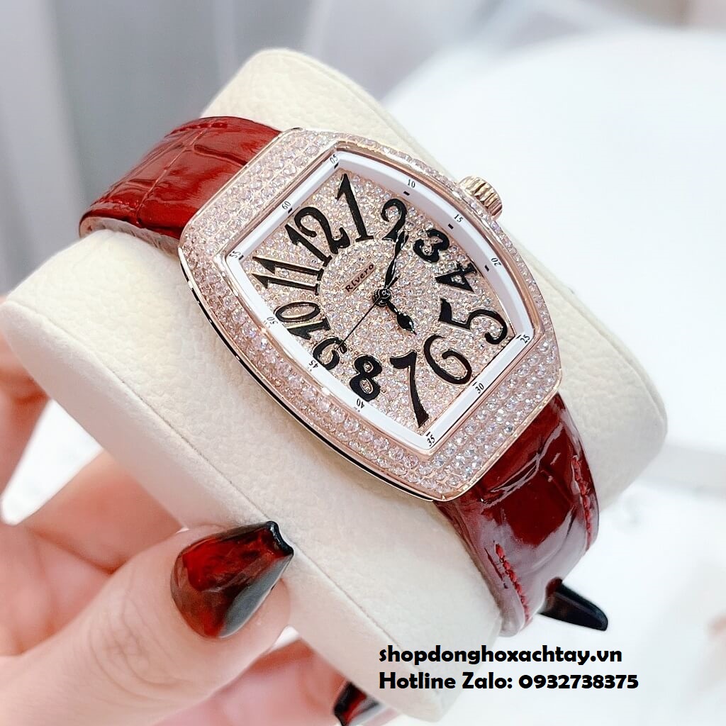 ♥️ Đồng Hồ Nữ Rivero R9006 Dây Da Đỏ Rose Gold 32mm chính hãng