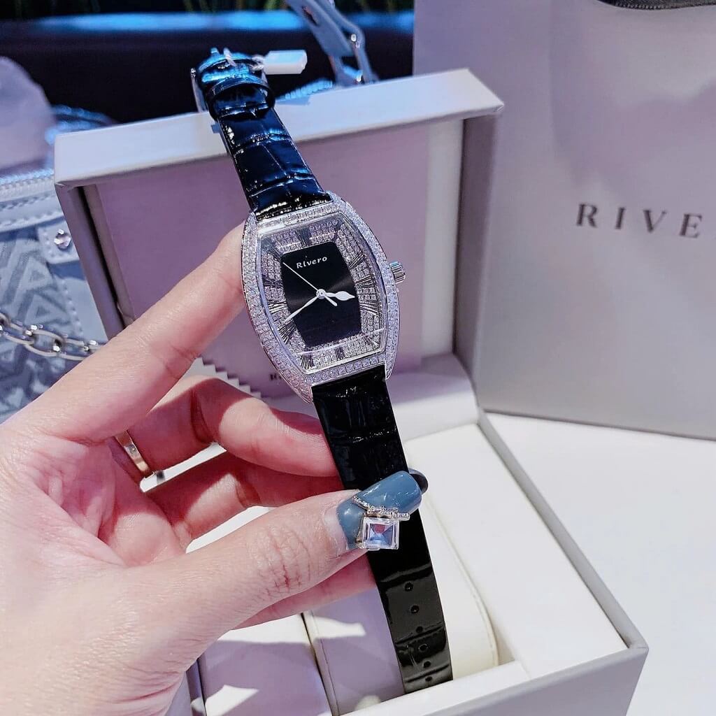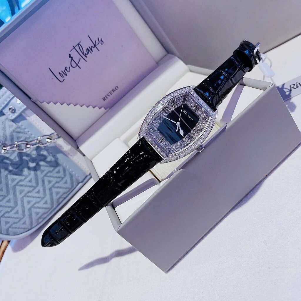 Thông tin chi tiết: Đồng Hồ Nữ Rivero R9007 Dây Da Đen Vỏ Silver Đính Đá 34mm Chính Hãng