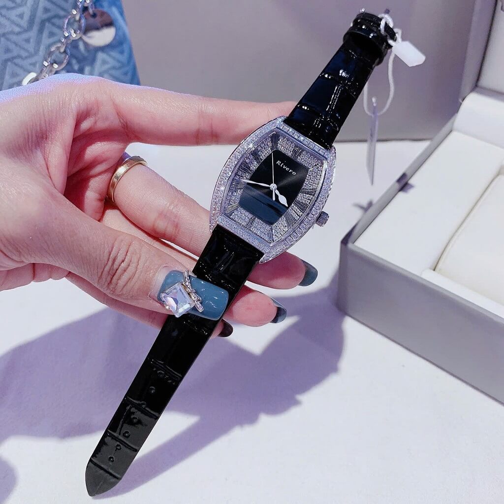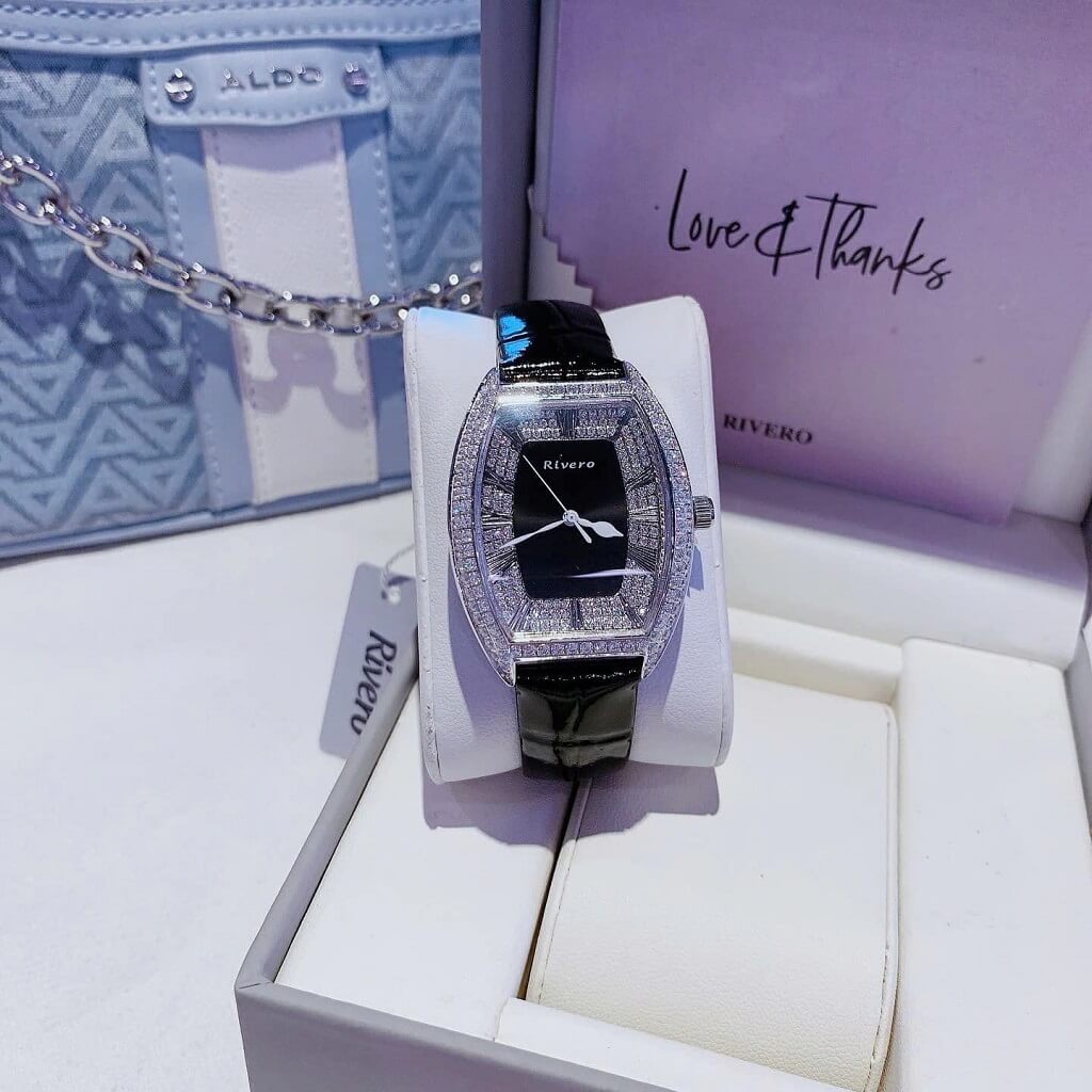 Đính Đá: Đồng hồ Rivero R9007 được trang bị những viên đá pha lê tinh tế, giúp tăng thêm sự lấp lánh và thu hút ánh nhìn. Những viên đá này thường được đặt xung quanh viền đồng hồ hoặc trên mặt đồng hồ, tạo nên sự sang trọng.