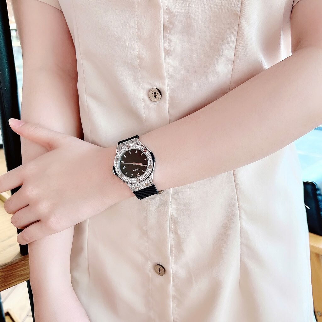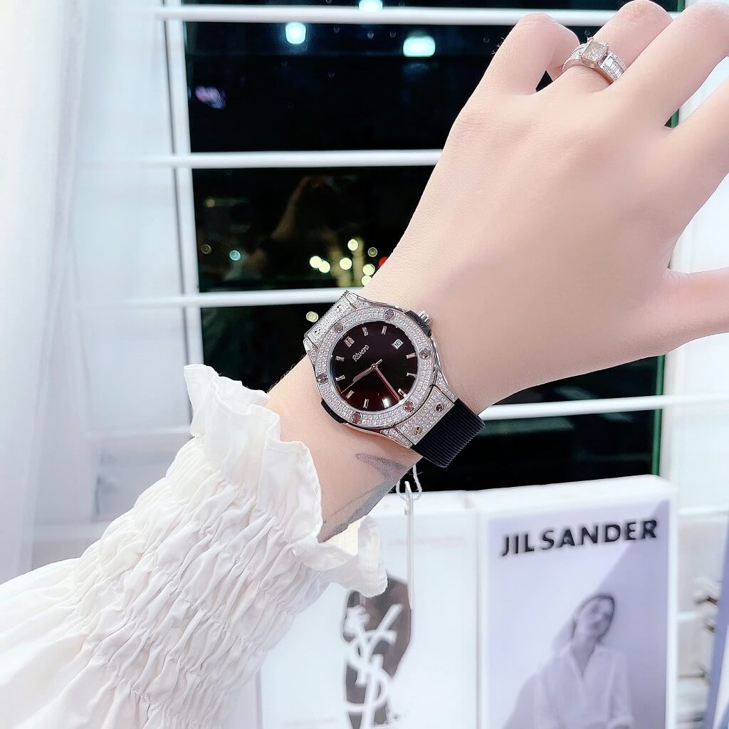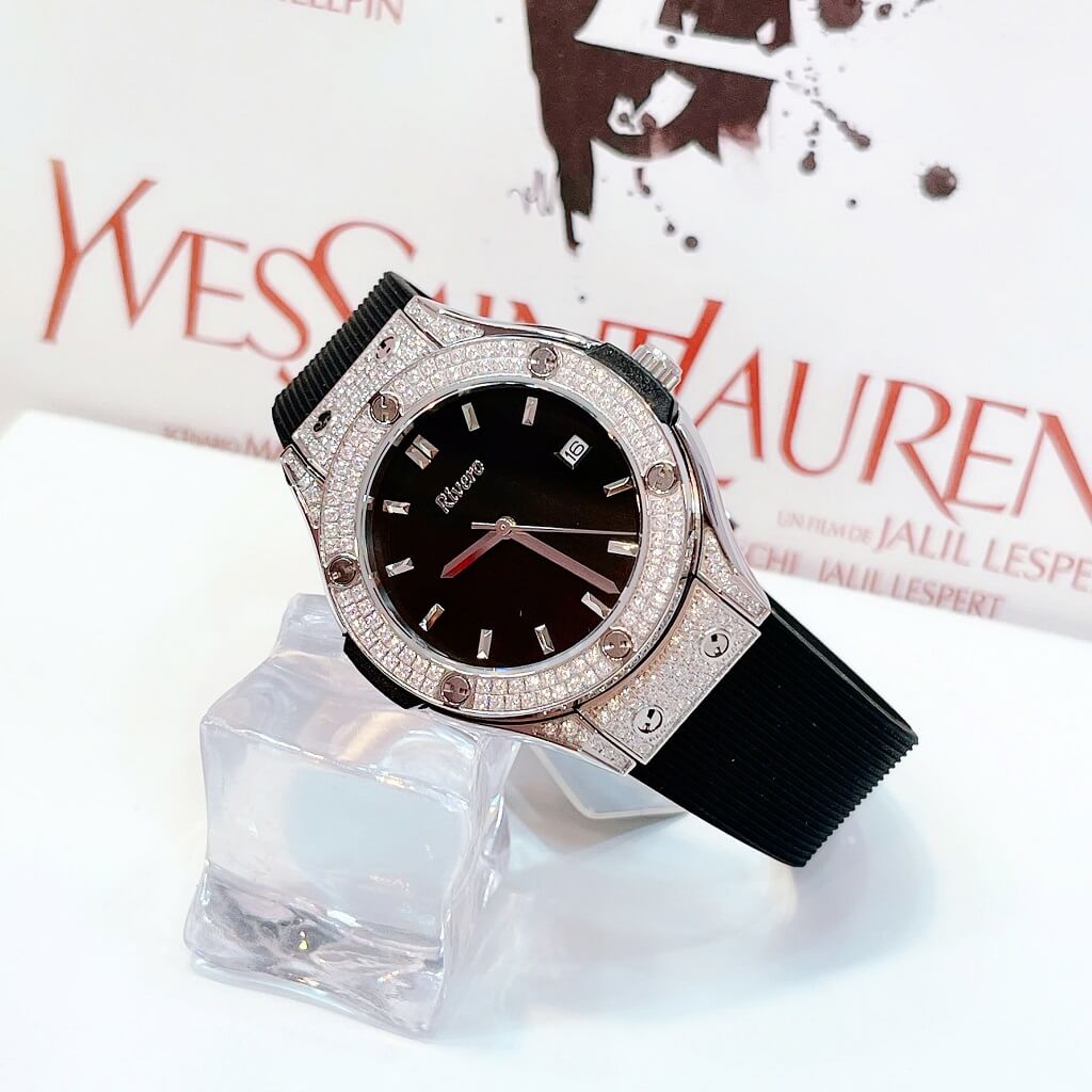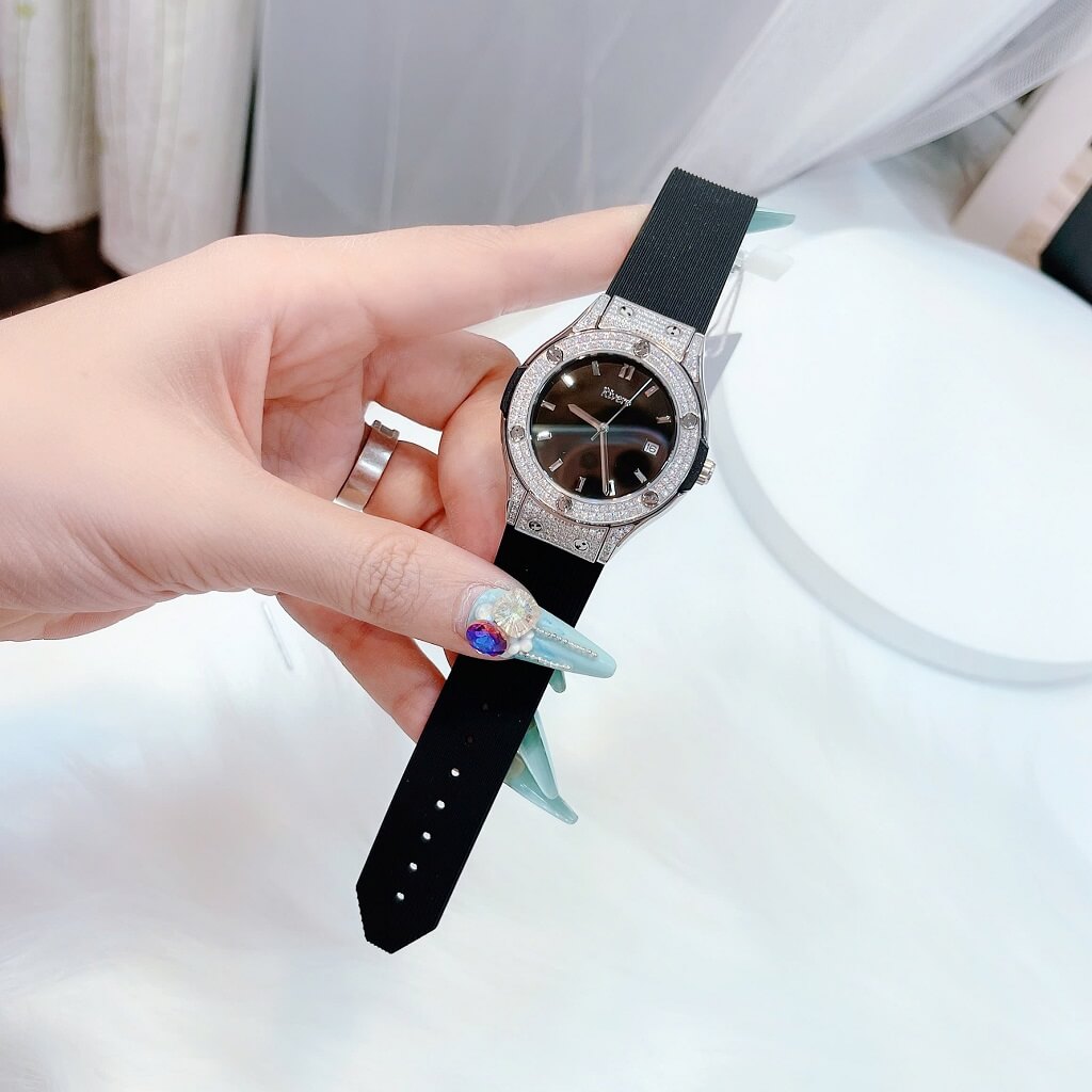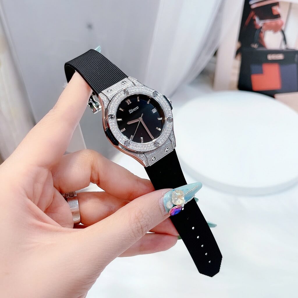 Đồng hồ nữ Rivero R9009 với thiết kế dây cao su đen và vỏ màu bạc (silver) đính đá là một lựa chọn thời trang thanh lịch và hiện đại. Dưới đây là một số thông tin về sản phẩm:
