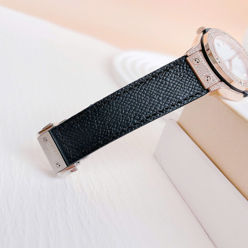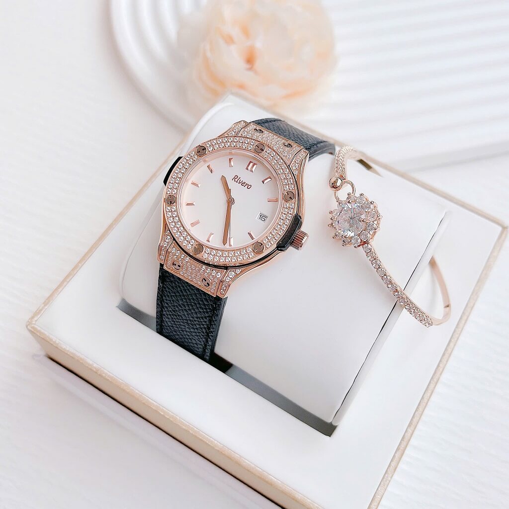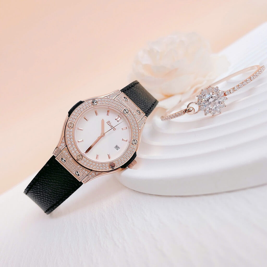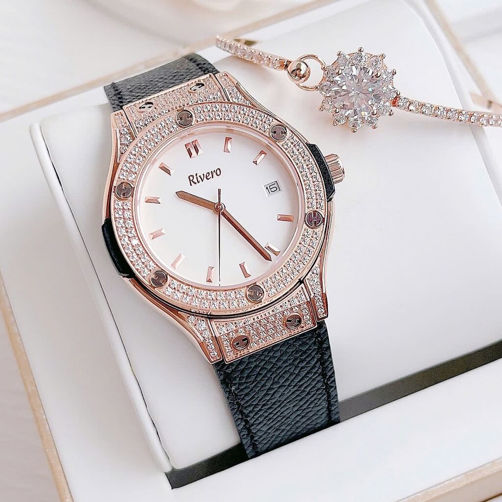 Rivero R9009 phiên bản dây da đen, vỏ màu rose gold là một thiết kế lý tưởng dành cho những quý cô yêu thích sự sang trọng nhưng vẫn giữ được nét hiện đại và cá tính. Sở hữu mặt số 34mm vừa vặn, mẫu đồng hồ này mang đến điểm nhấn nổi bật cho cổ tay và tổng thể outfit.