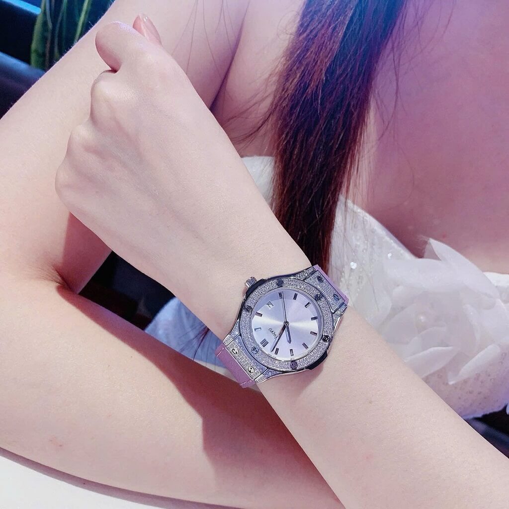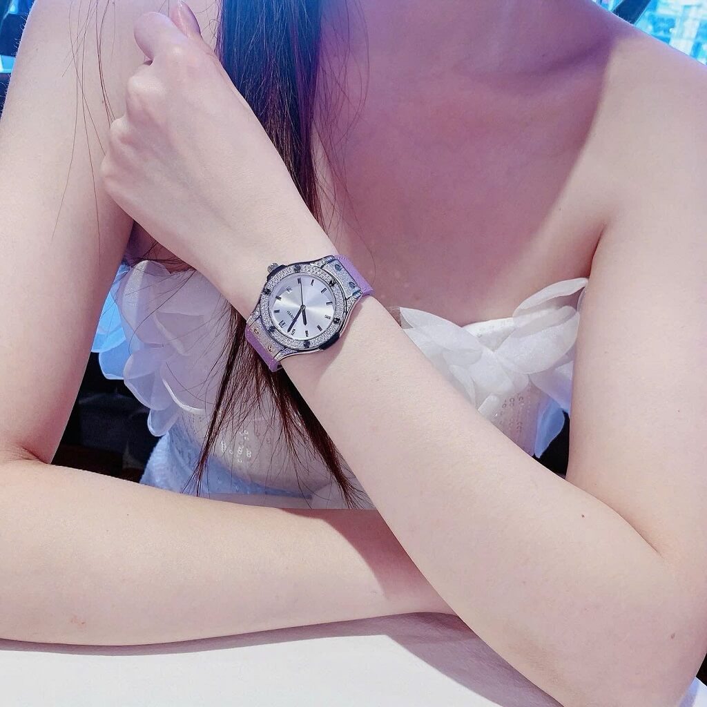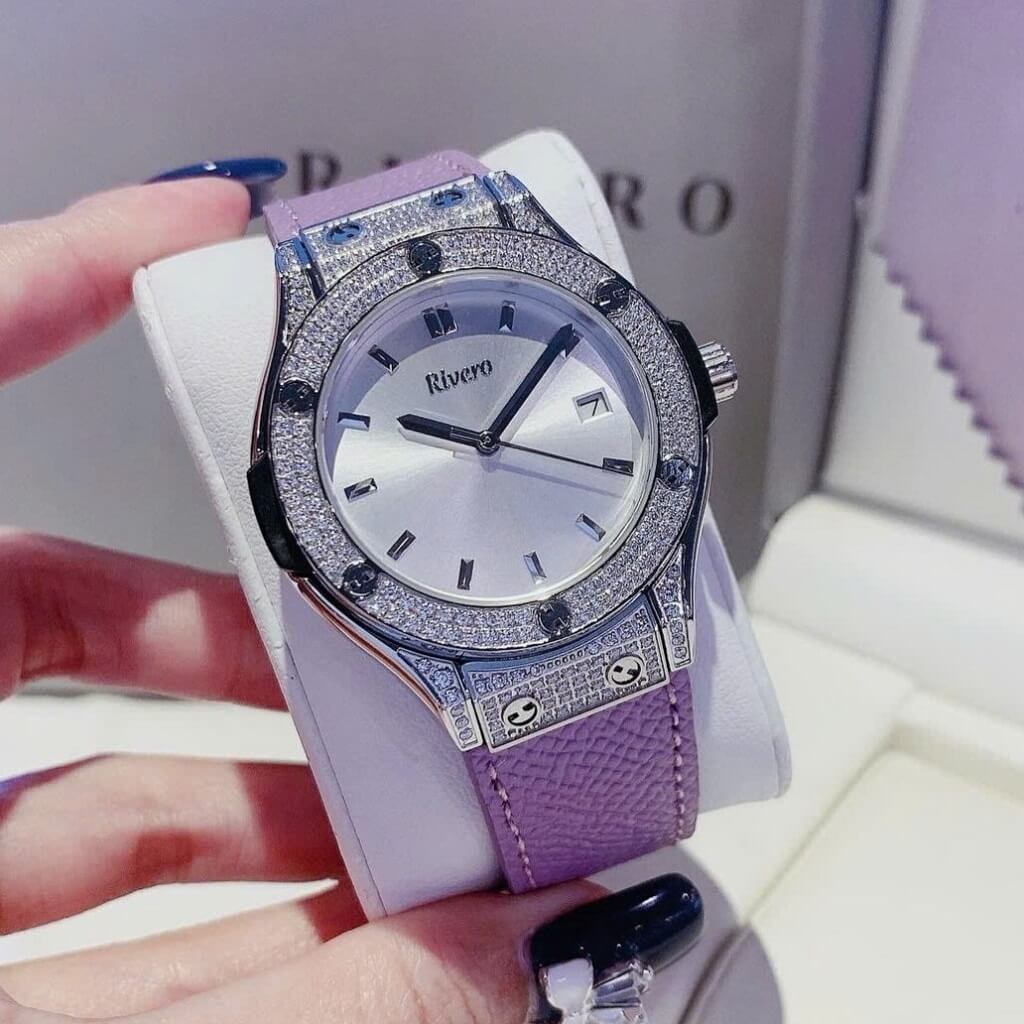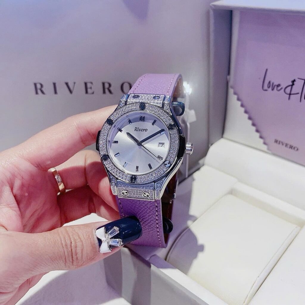Thông số chi tiết sản phẩm: Đồng Hồ Nữ Rivero R9009 Dây Da Tím Vỏ Màu Silver Đính Đá Size 34mm Chính Hãng