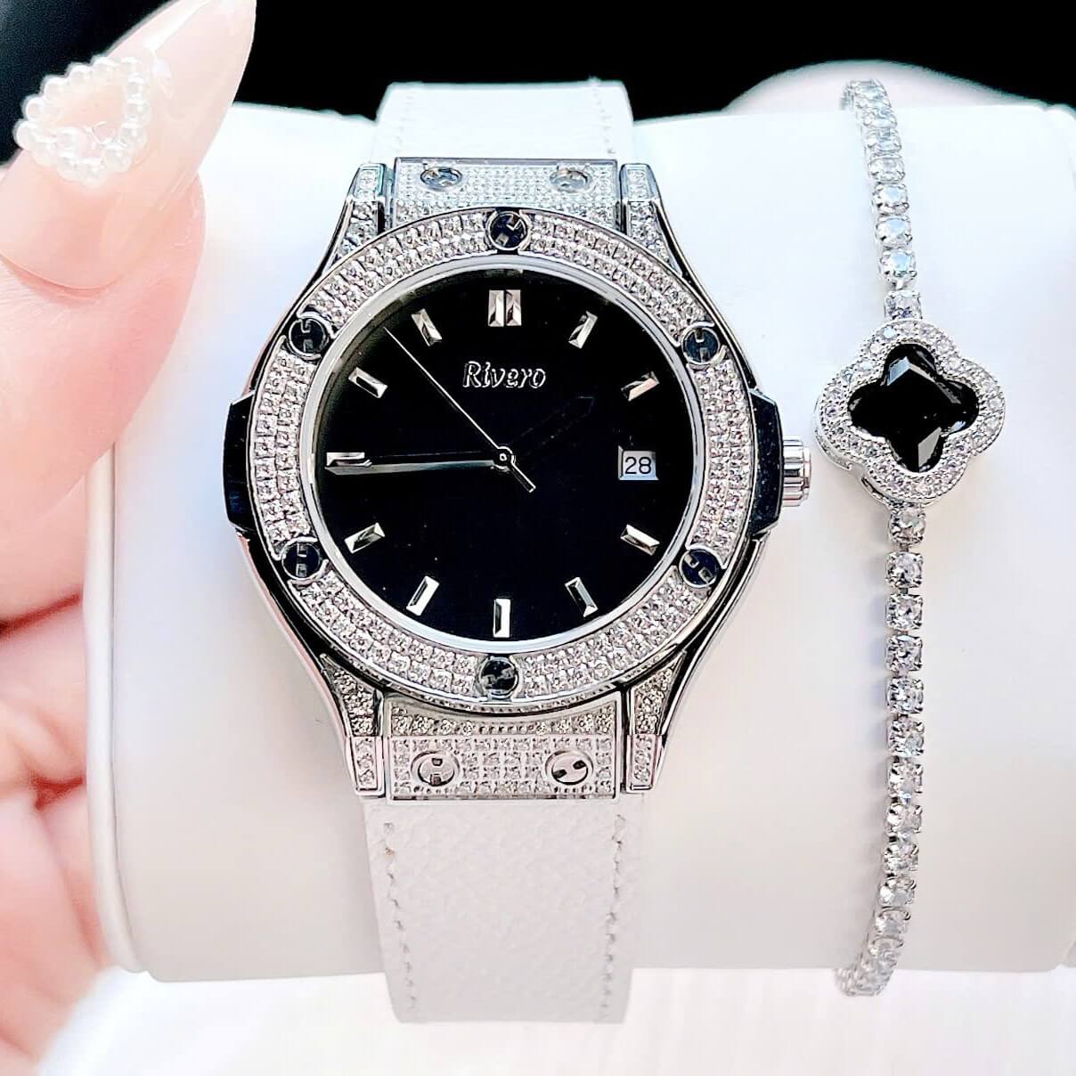 Sự kết hợp hài hòa giữa trắng và đen – thanh thoát nhưng cá tính – giúp Rivero R9009 dễ dàng trở thành điểm nhấn trên cổ tay, phù hợp từ phong cách công sở đến dạo phố cuối tuần.