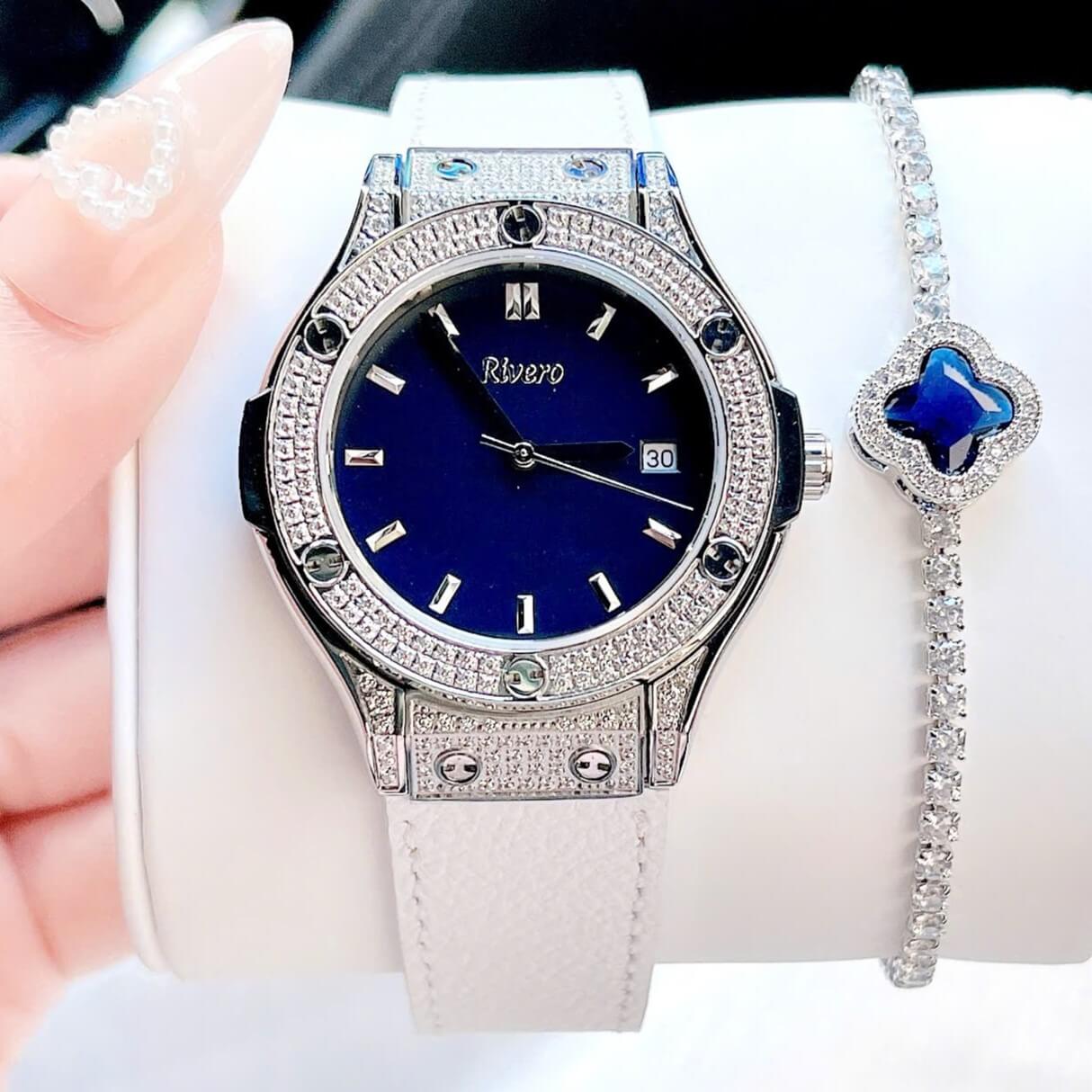 Dù bạn chọn phong cách dịu dàng, tối giản hay năng động, mẫu Rivero R9009 mặt xanh luôn là điểm nhấn hoàn hảo trên cổ tay.
