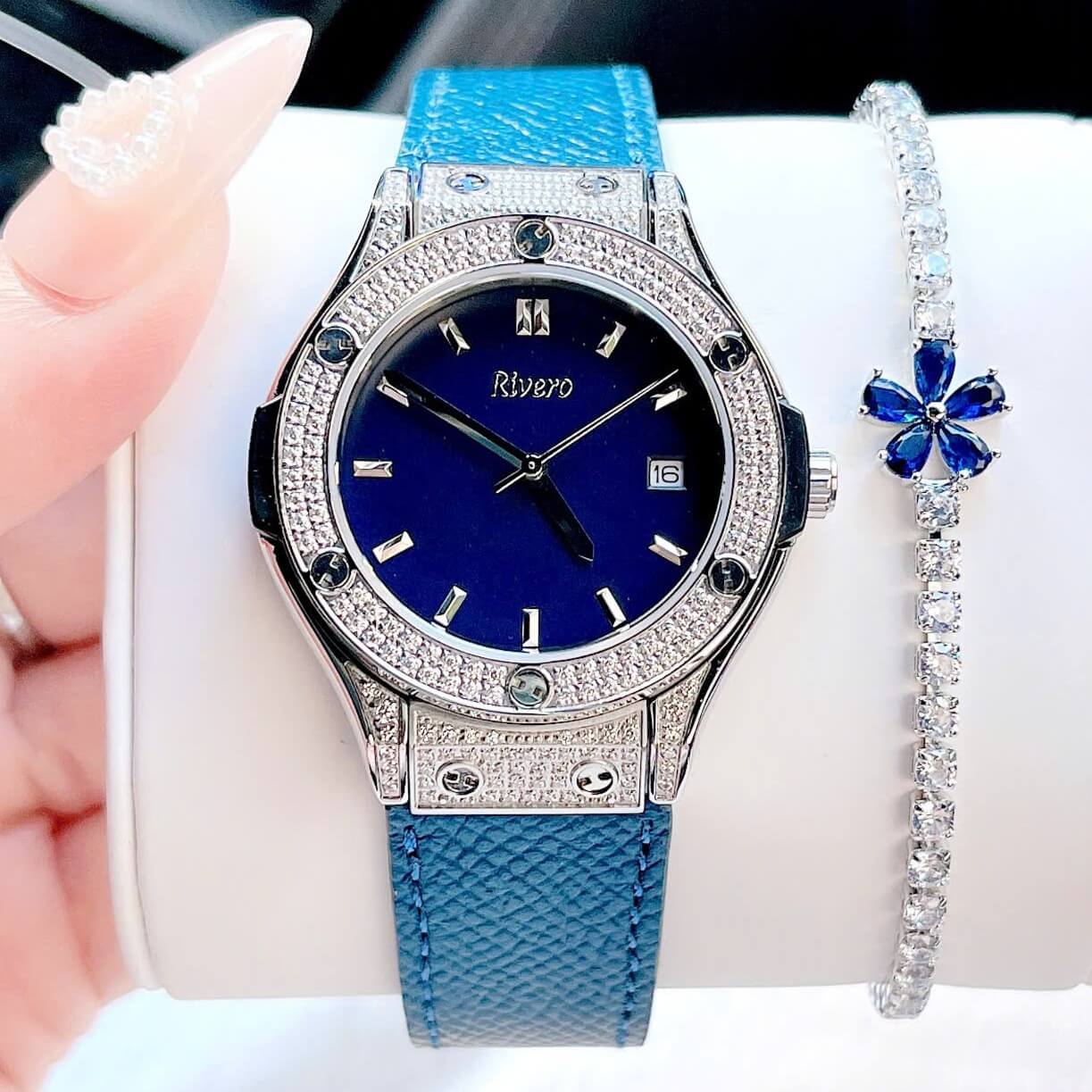 Rivero R9009 phiên bản tone xanh đồng điệu mang đến cảm giác mát mắt, sang trọng và đầy phong cách. Màu xanh từ dây đến mặt số tạo nên tổng thể hiện đại, trẻ trung và dễ gây ấn tượng với người đối diện. Đây là sự lựa chọn lý tưởng cho nàng yêu nét thanh lịch pha chút cá tính.