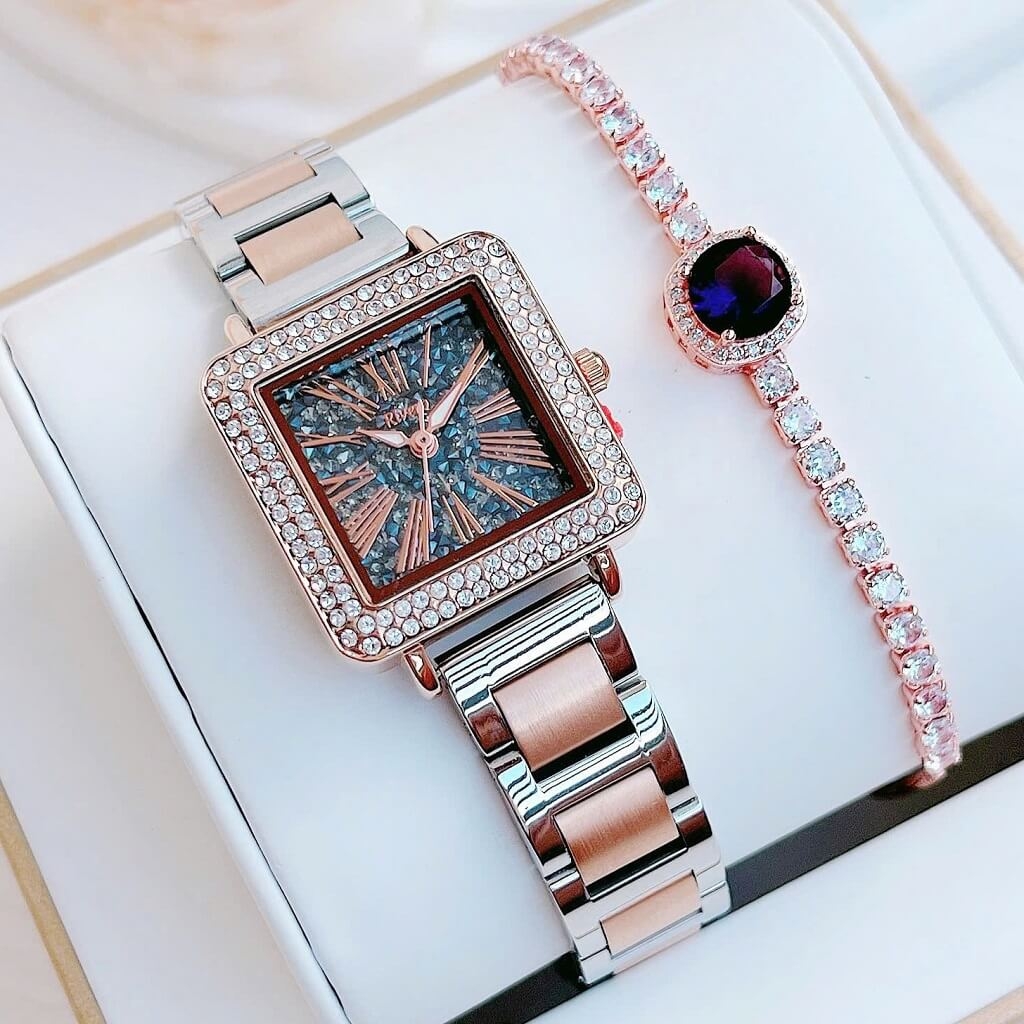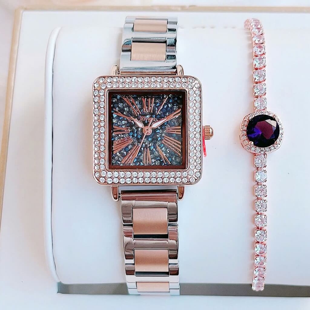 Chắc chắn sẽ là lựa chọn hoàn hảo cho phái đẹp, Đồng Hồ Nữ Rivero R9011 Mặt Vuông Demi Rose Đính Đá Size 28mm mang đến sự kết hợp hoàn hảo giữa thiết kế hiện đại và phong cách quý phái, thể hiện sự sang trọng và đẳng cấp.