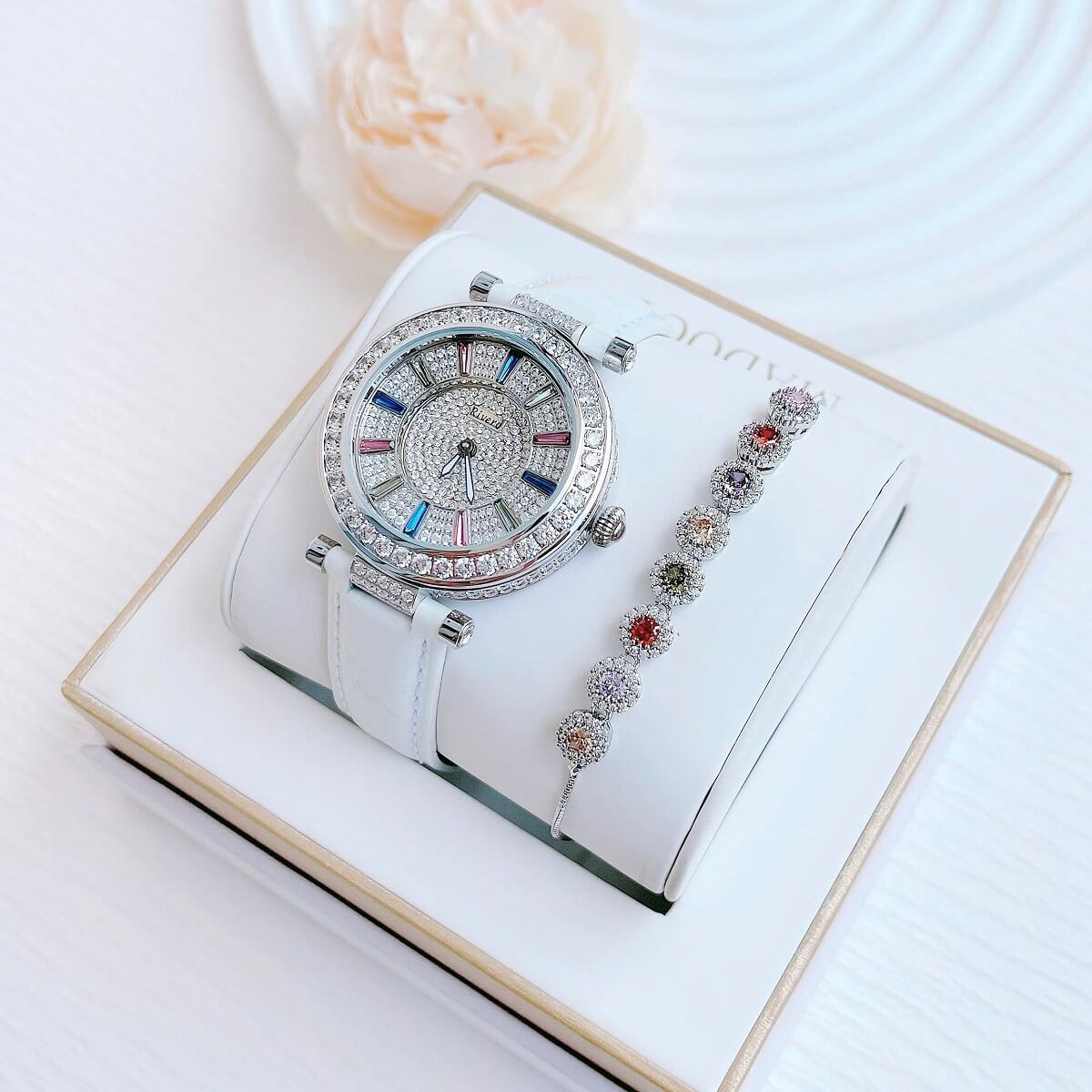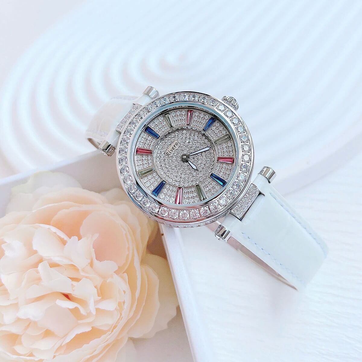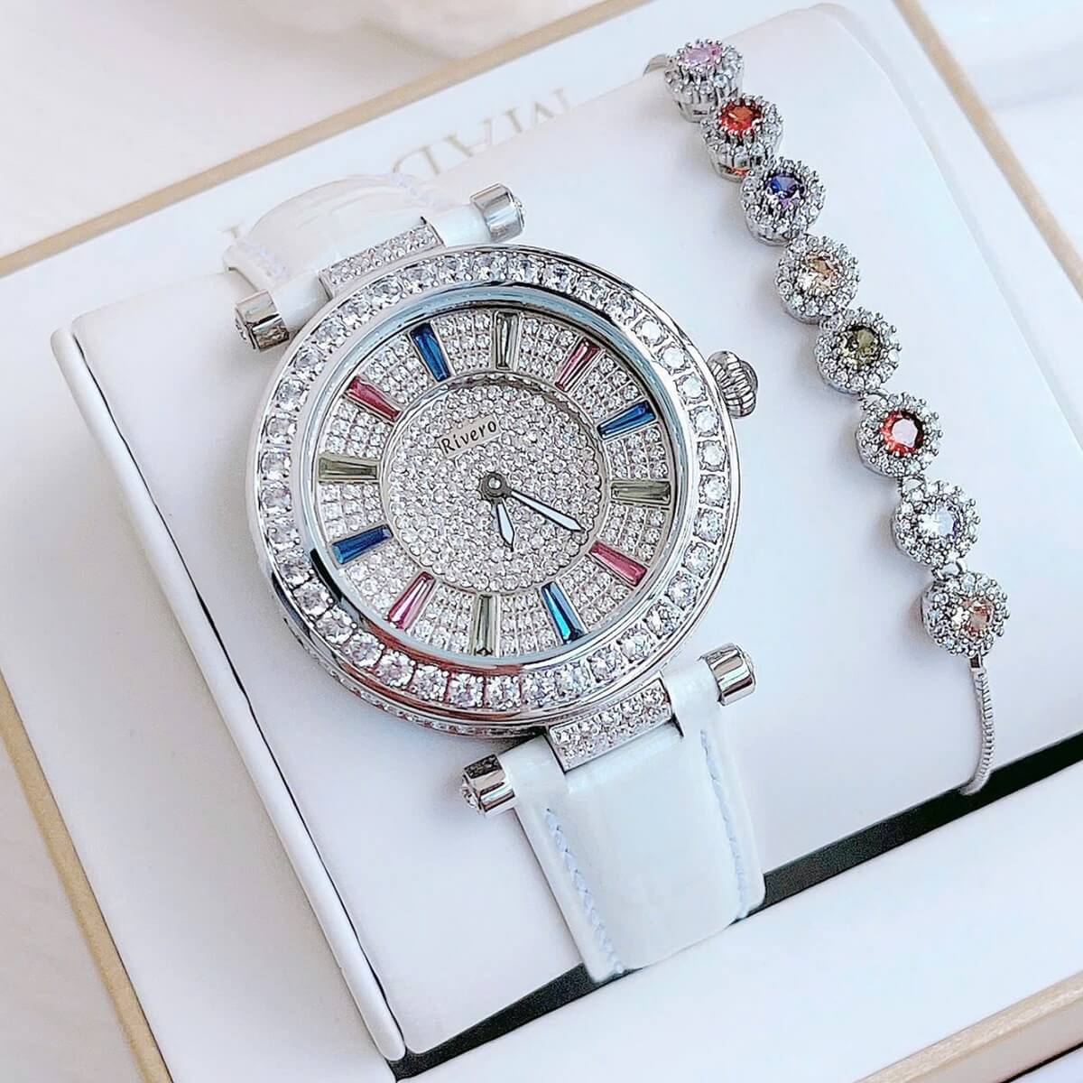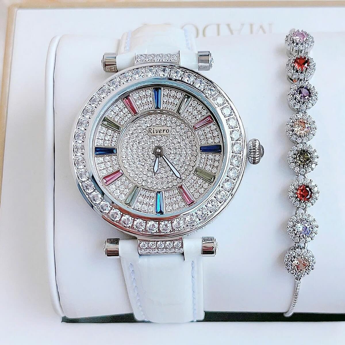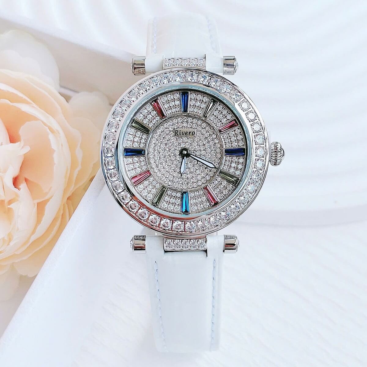 Chính sách bảo hành đồng hồ: Đồng Hồ Nữ Rivero R9015 Dây Da Trắng Đá Phong Thủy Vỏ Silver Size 36mm