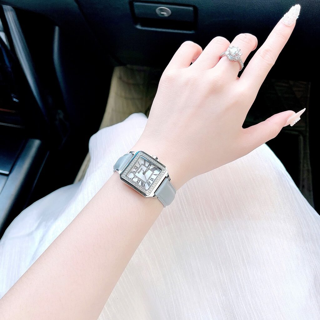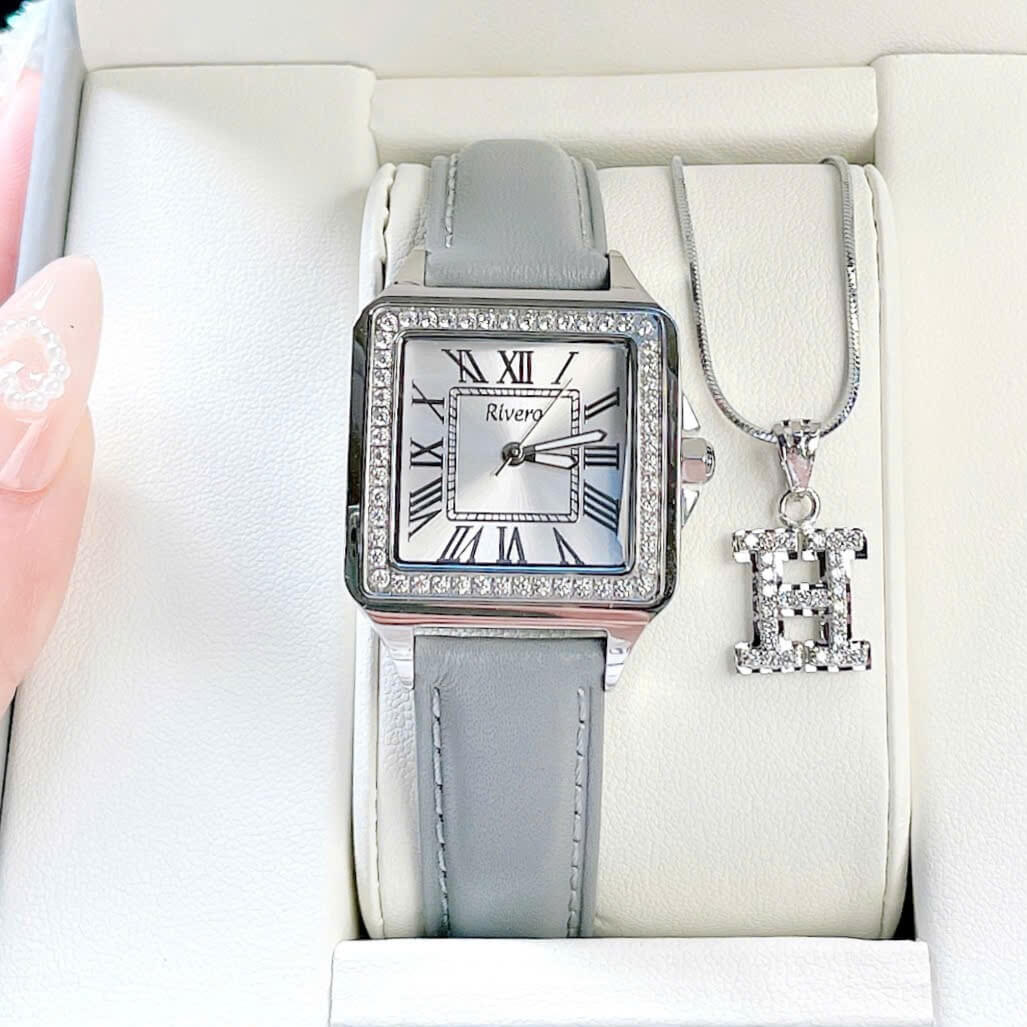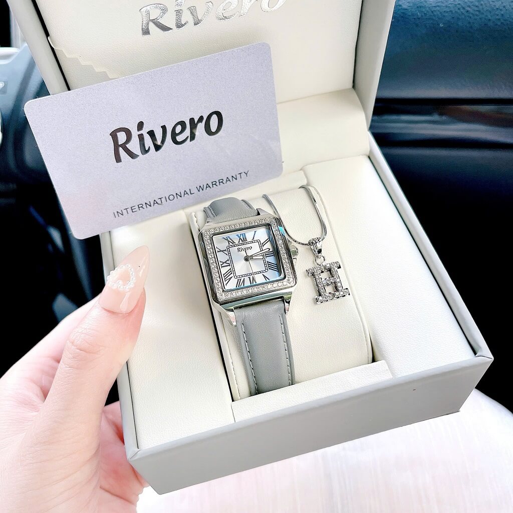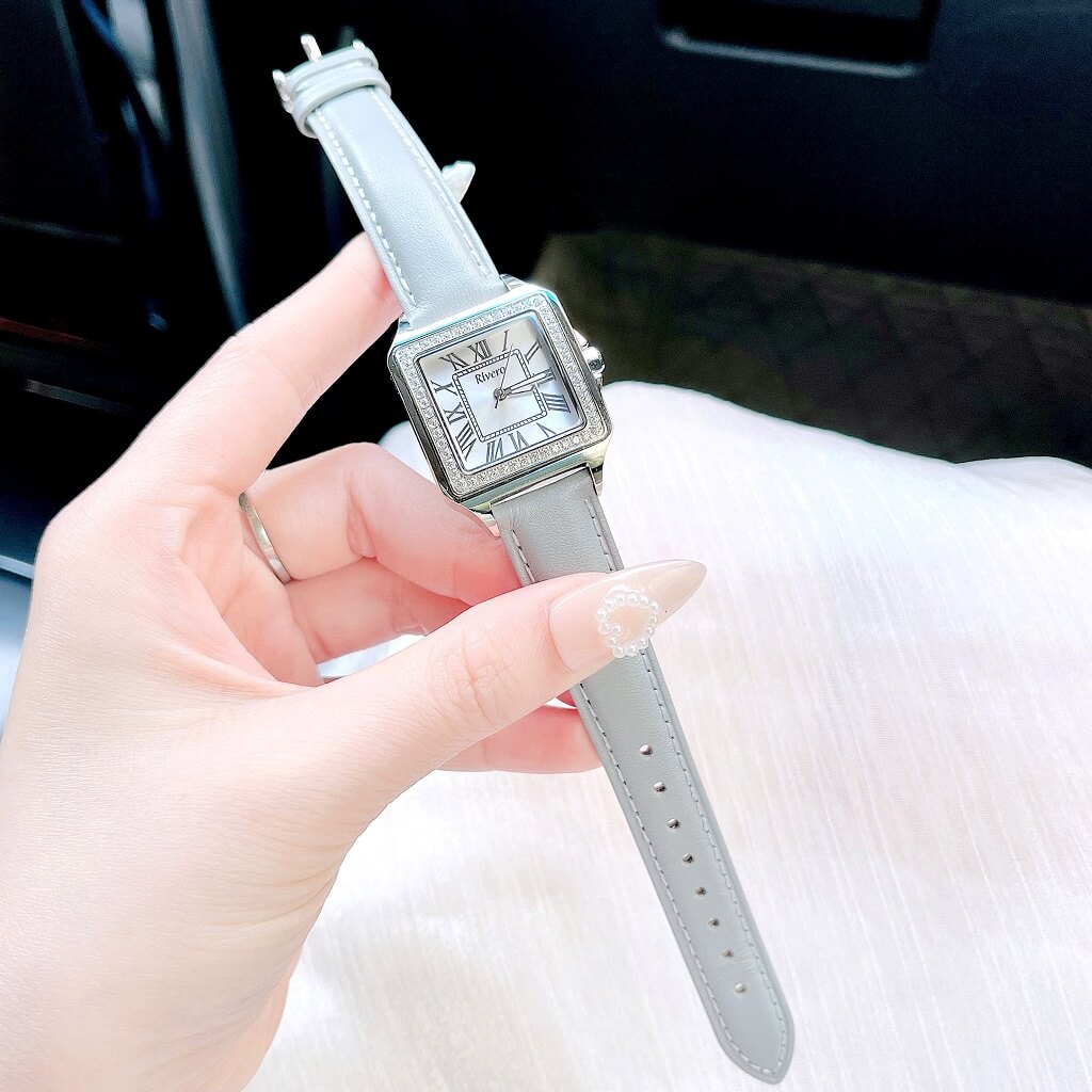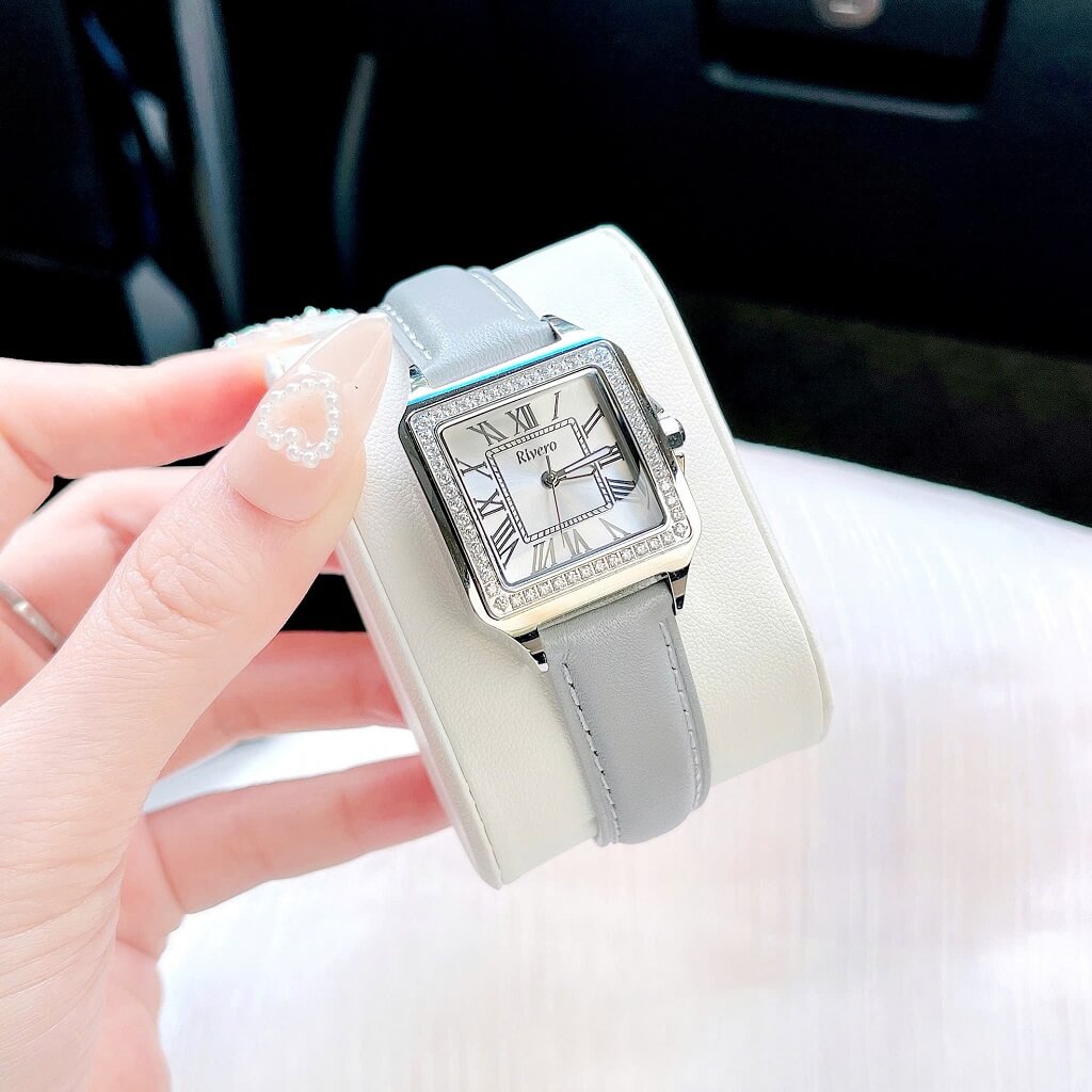 Đồng Hồ Nữ Rivero R9186 Dây Da Xám Đính Đá Vỏ Silver Size 33mm – Quartz