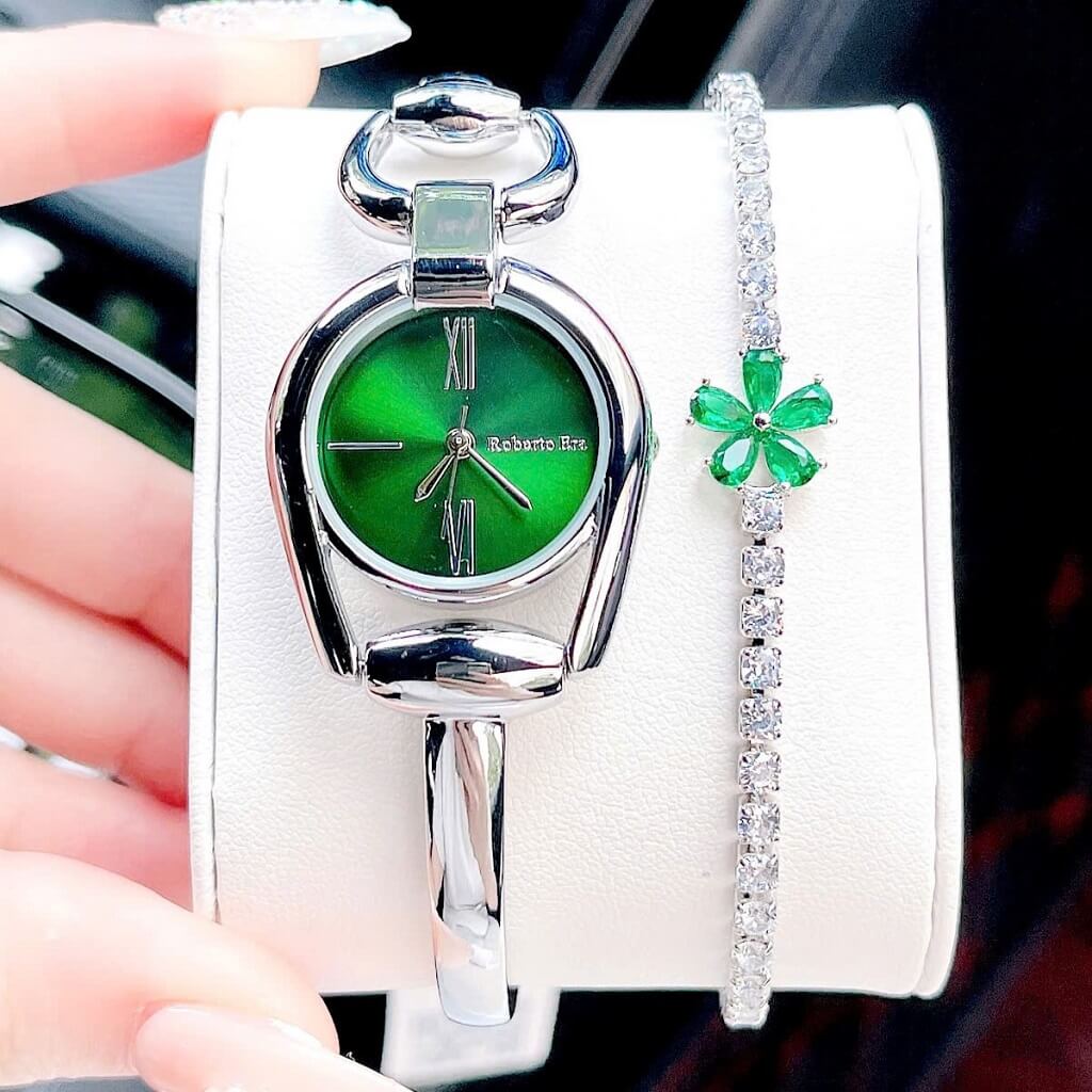 Thông số chi tiết sản phẩm: Đồng Hồ Nữ Roberto Era Dáng Lắc Tay Màu Xanh Lá Silver Size 28mm Chính Hãng