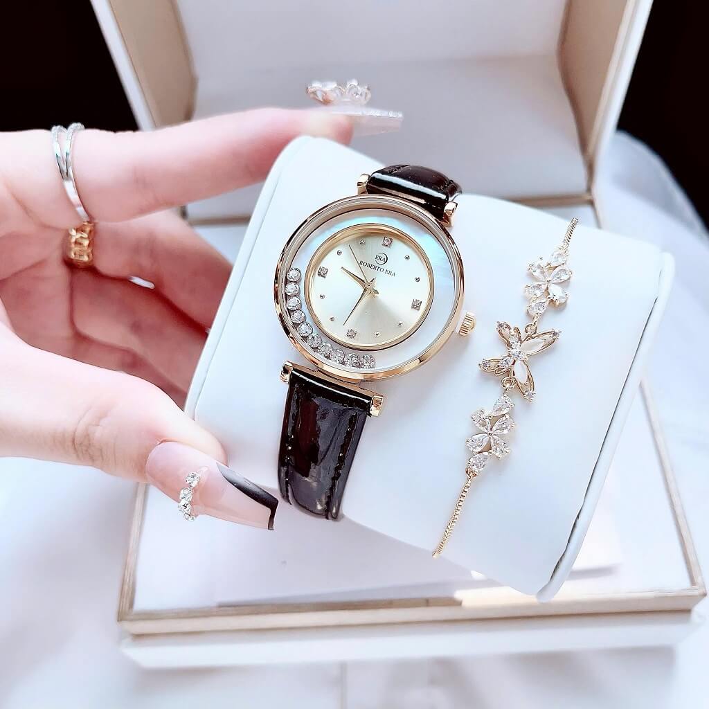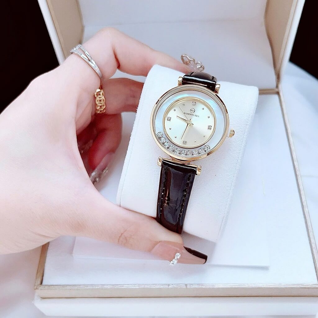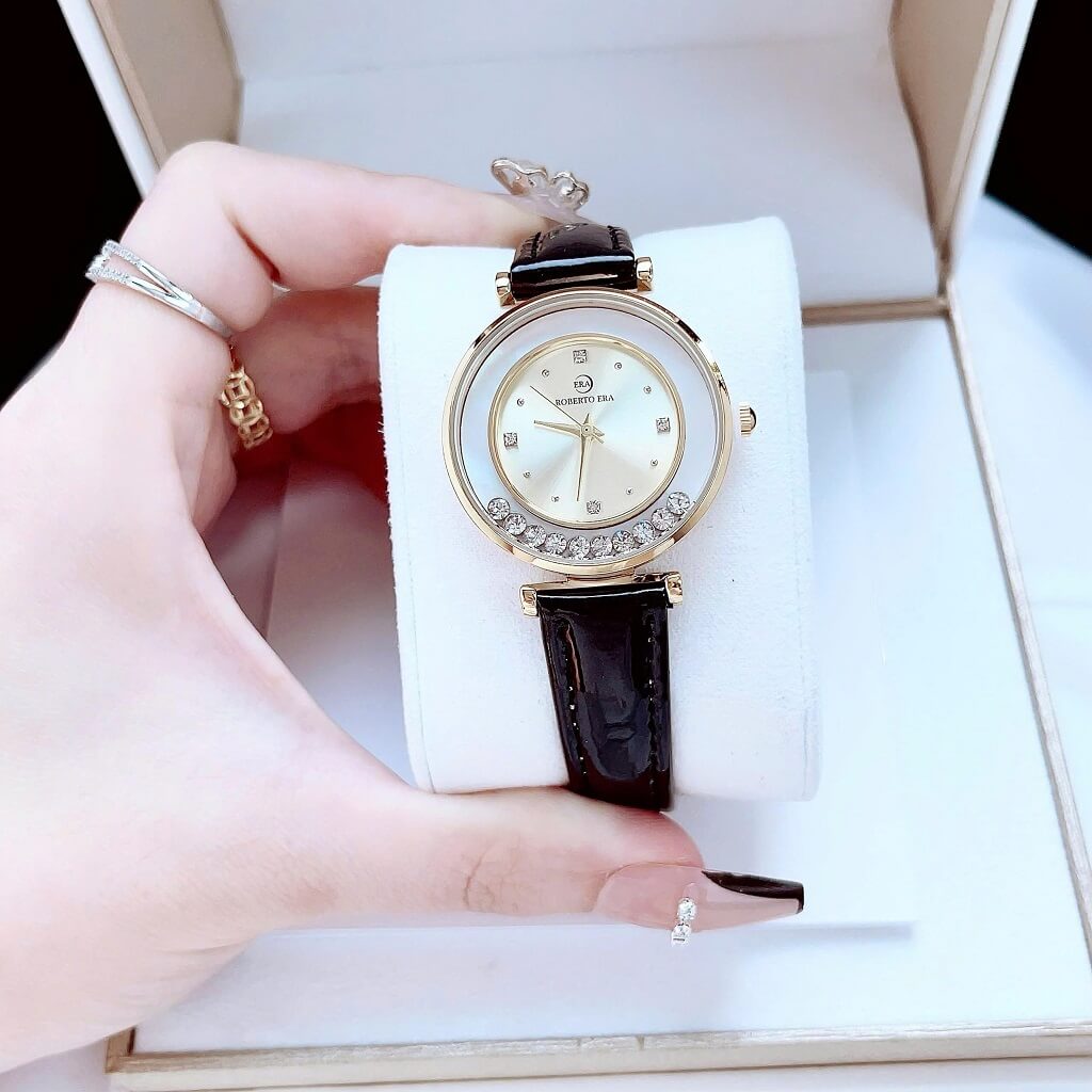Chào đón phong cách đẳng cấp với Đồng Hồ Nữ Roberto Era Dây Da Đen Vỏ Vàng Đá Chảy Size 32mm – sự kết hợp hoàn hảo giữa thiết kế tinh tế và chất lượng vượt trội, mang đến cho bạn một món phụ kiện không thể thiếu trong bộ sưu tập của mình.