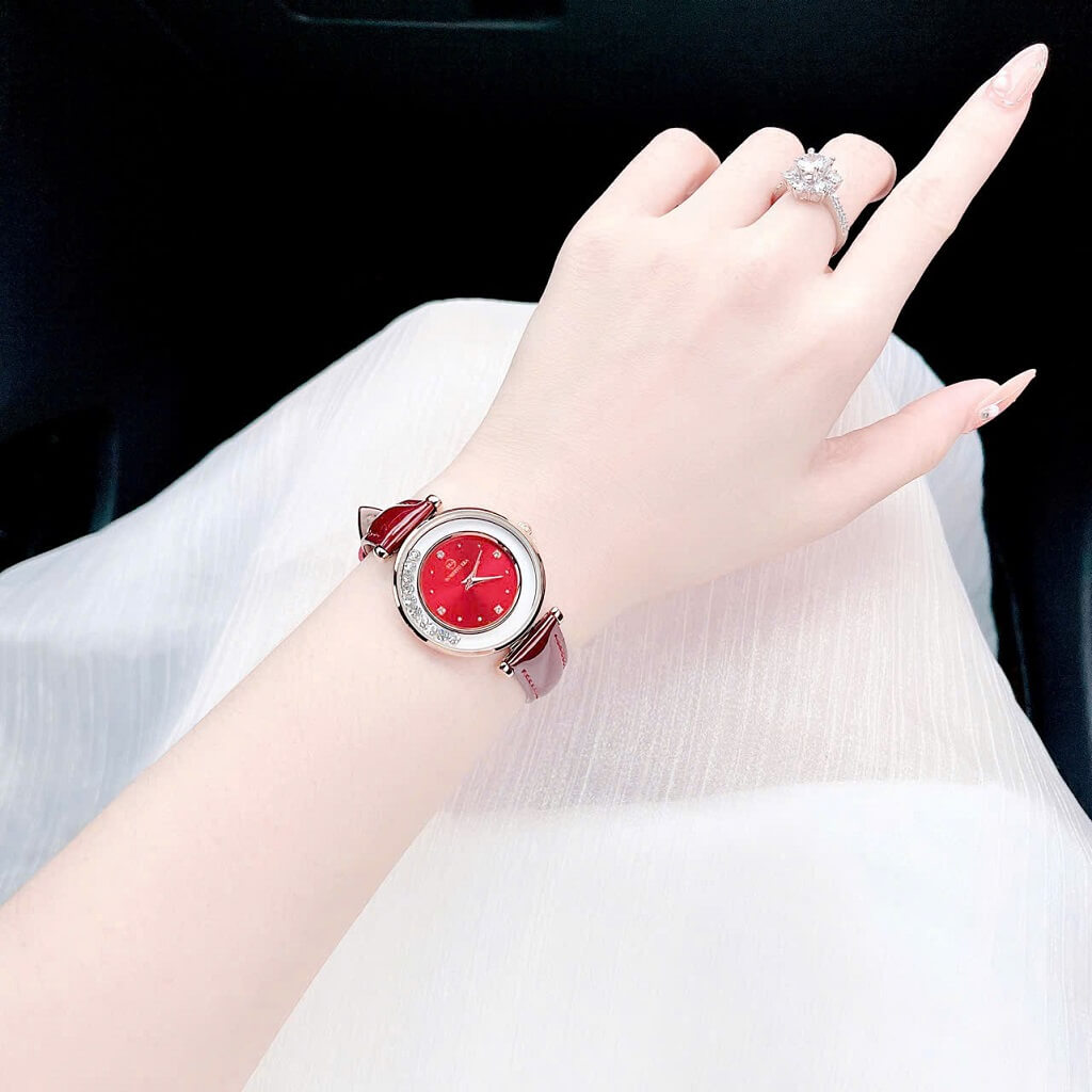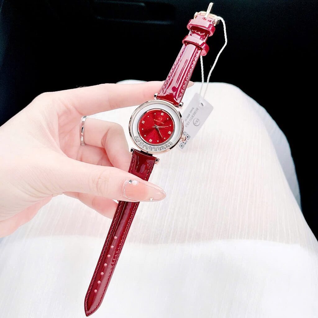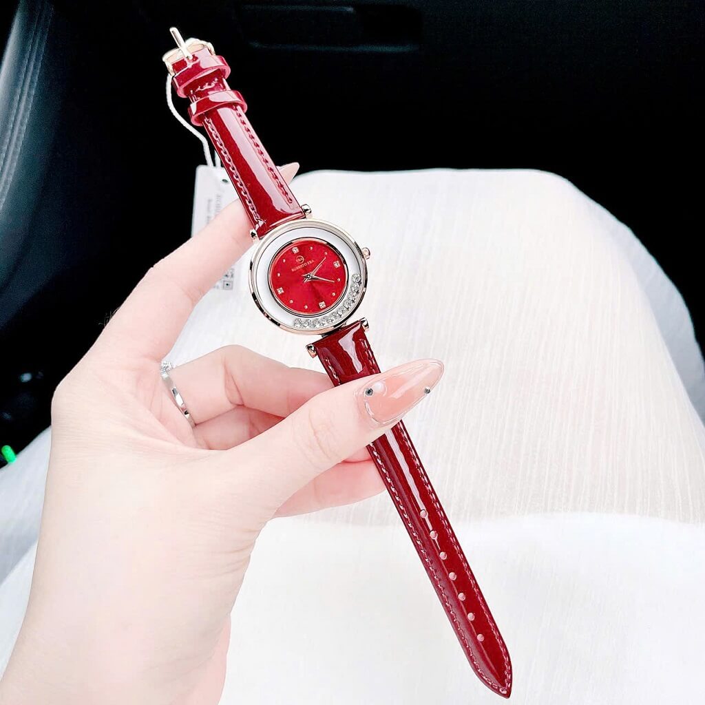 Dây đeo da đỏ: Dây da mềm mại, dễ chịu khi đeo và màu đỏ tươi tắn mang đến vẻ ngoài năng động, trẻ trung, phù hợp với nhiều phong cách trang phục.