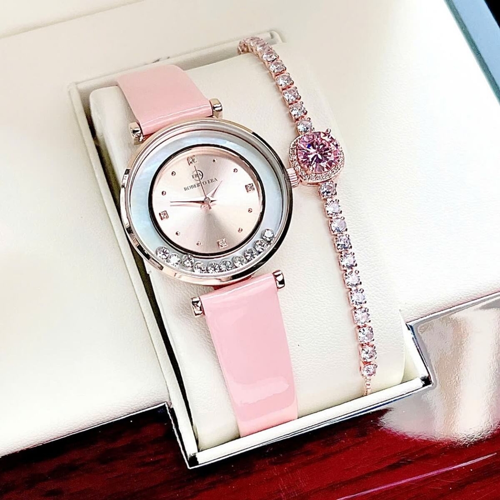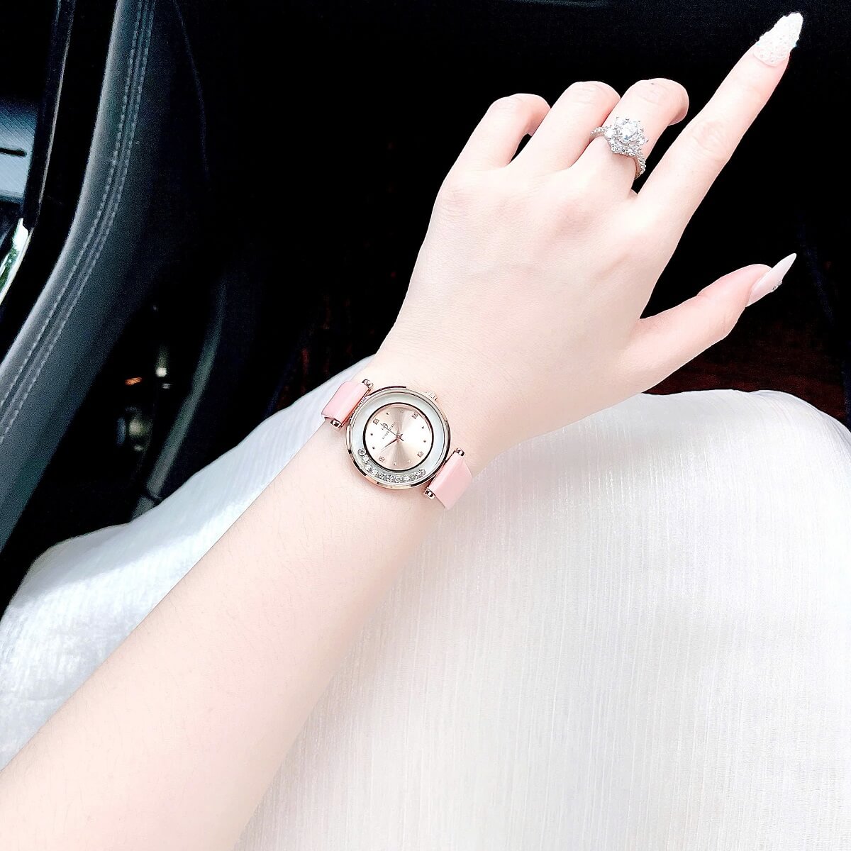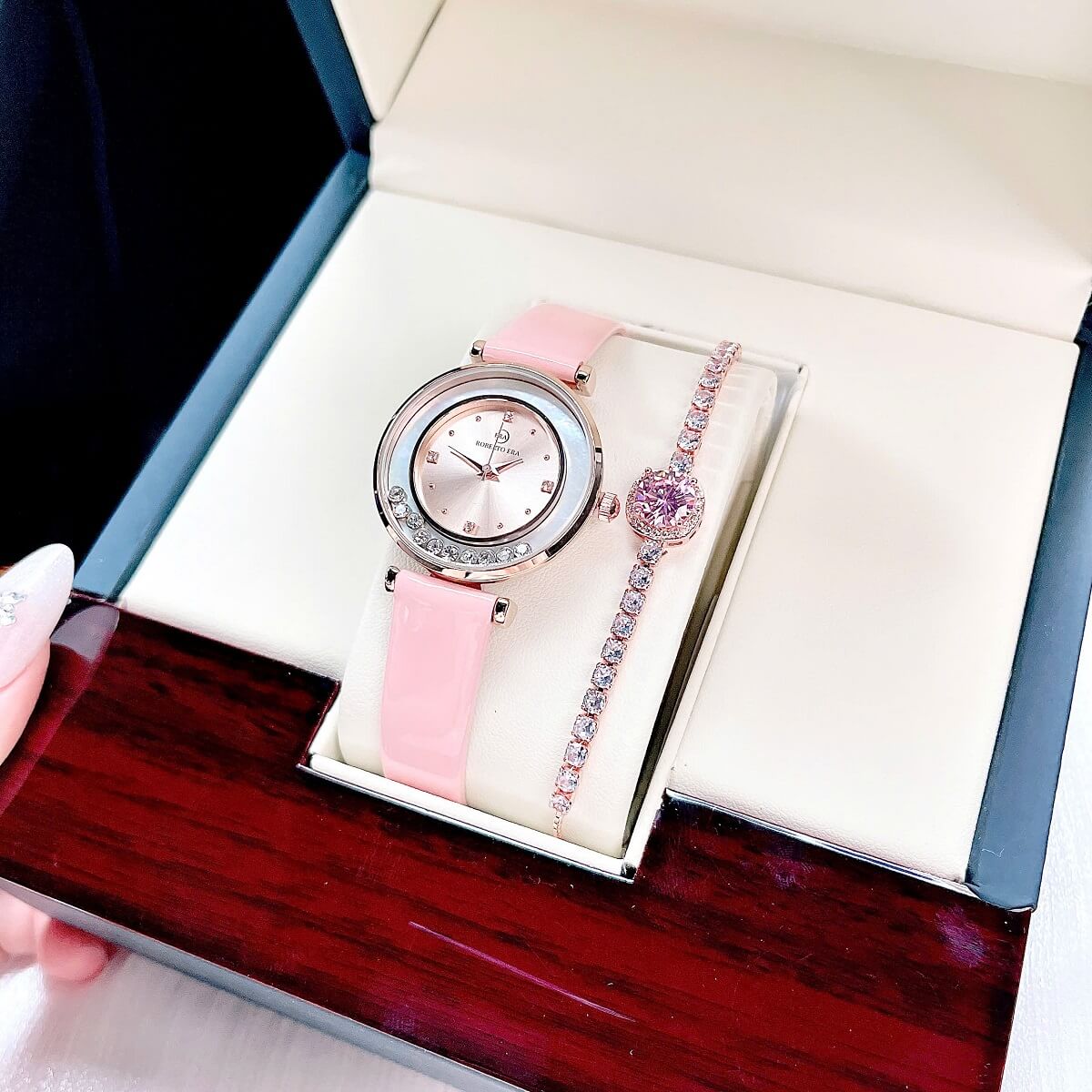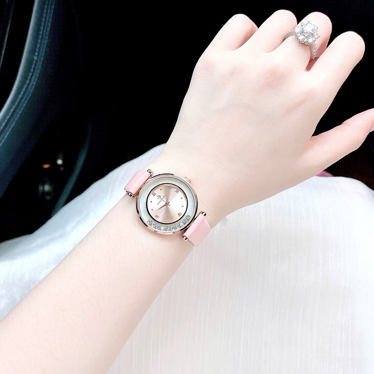 Dây đeo: Da thật màu hồng, mềm mại, ôm cổ tay