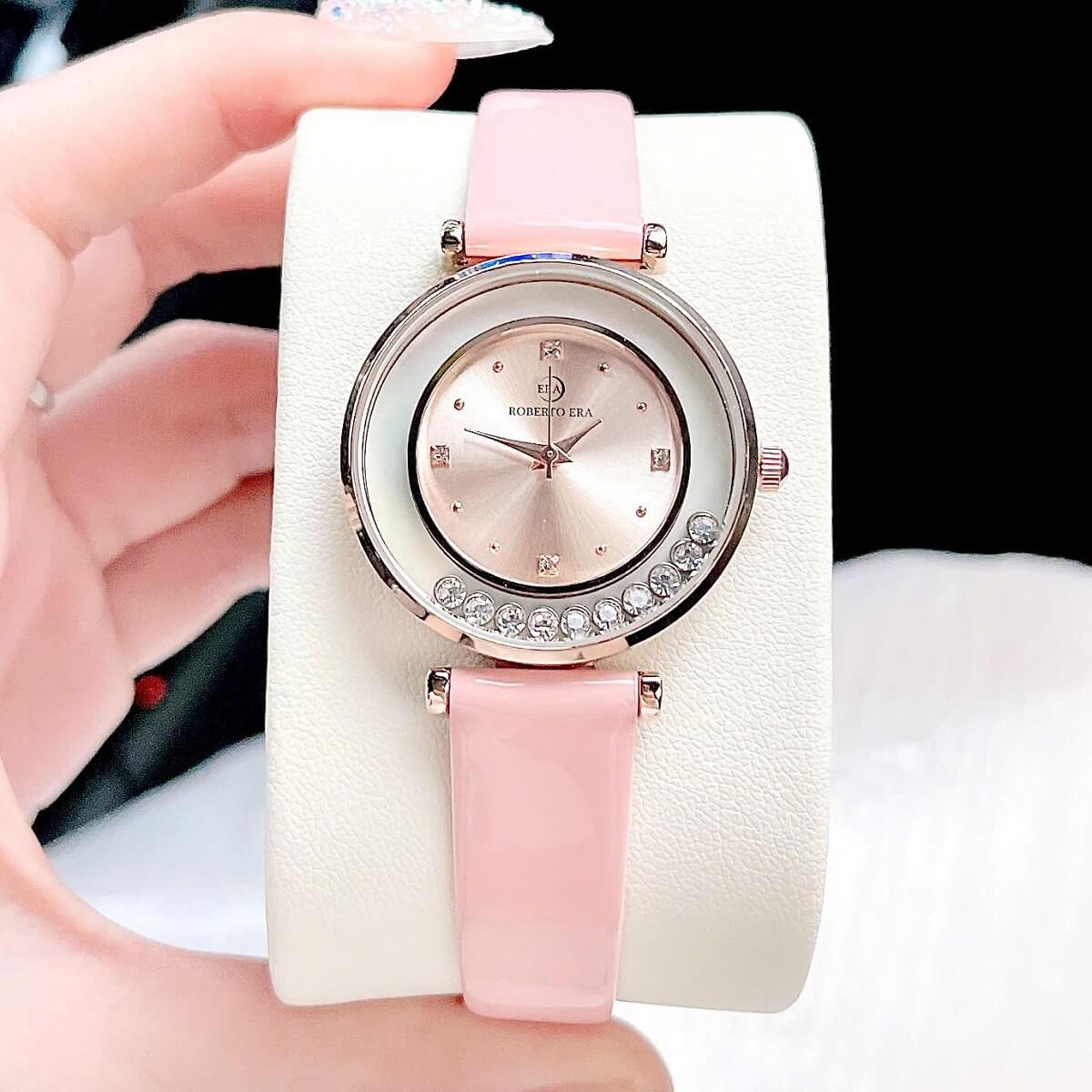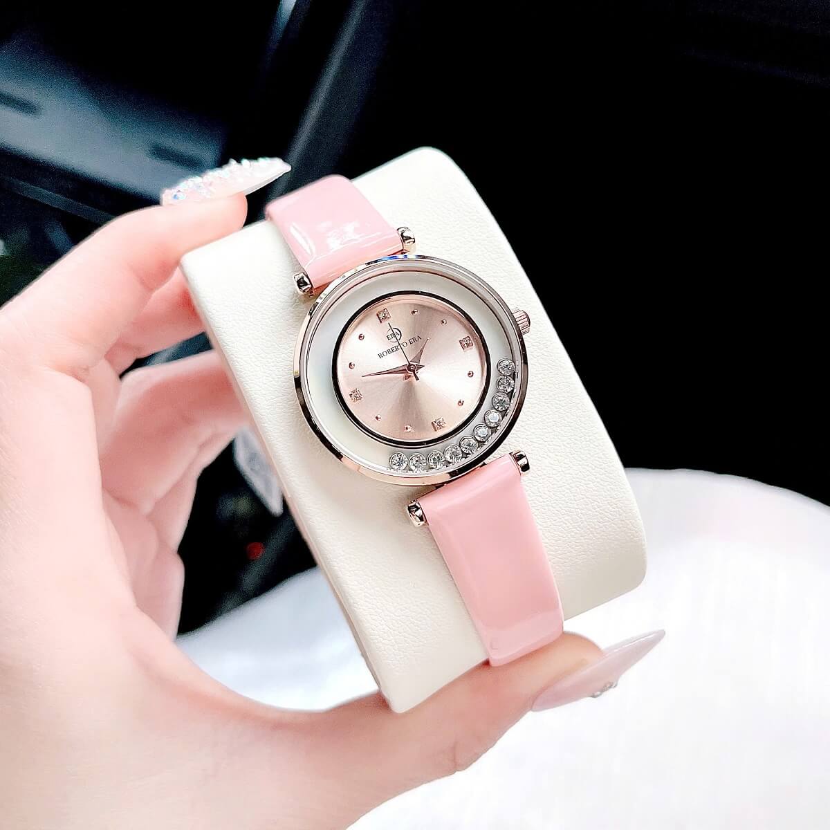 Đồng hồ nữ Roberto Era dây da hồng 32mm là lựa chọn hoàn hảo dành cho phái đẹp yêu thích vẻ đẹp nhẹ nhàng nhưng sang trọng. Mặt đá chảy lấp lánh tạo hiệu ứng ánh sáng bắt mắt, kết hợp cùng vỏ vàng hồng thời thượng và dây da hồng dịu dàng, mang đến tổng thể thanh lịch, nữ tính và cuốn hút.