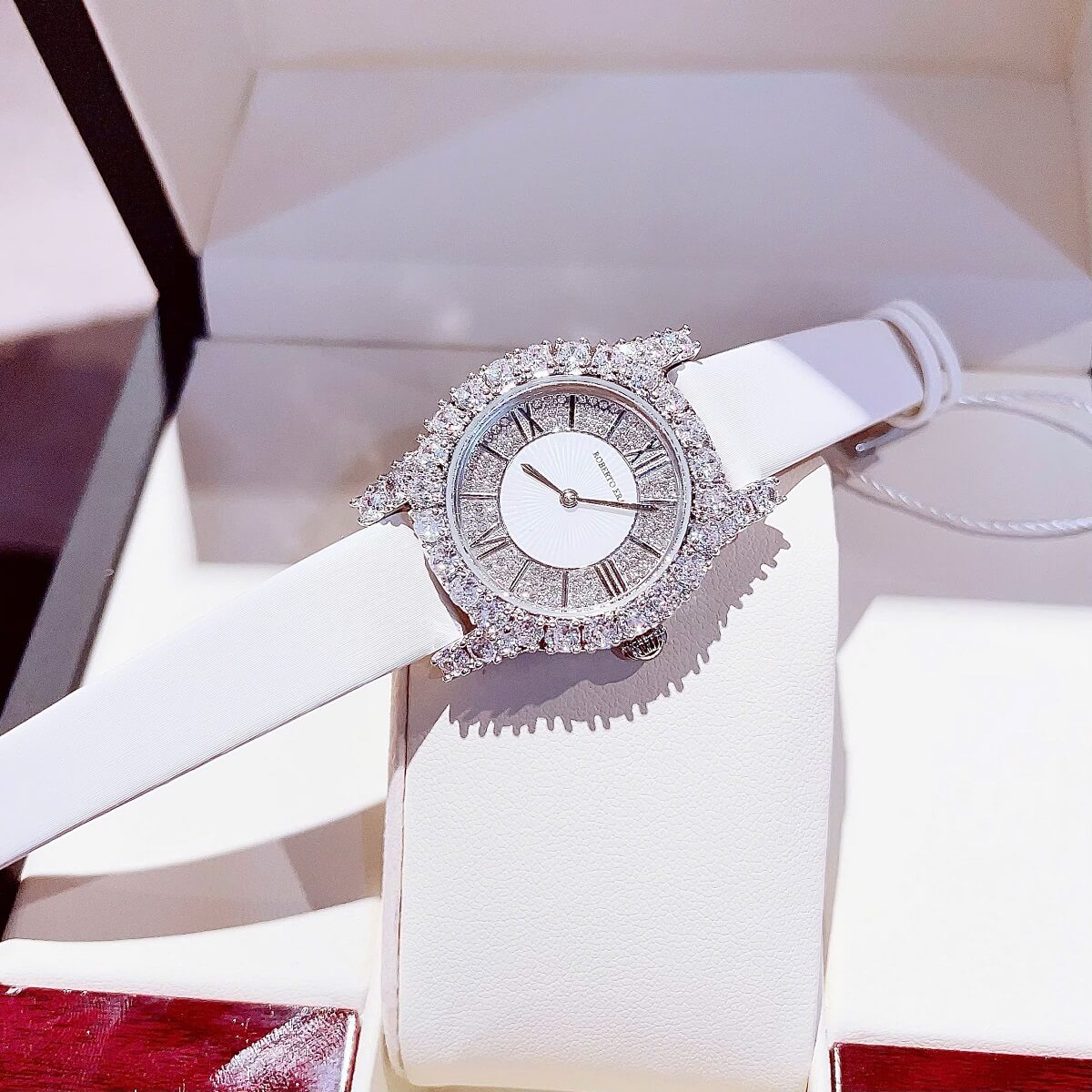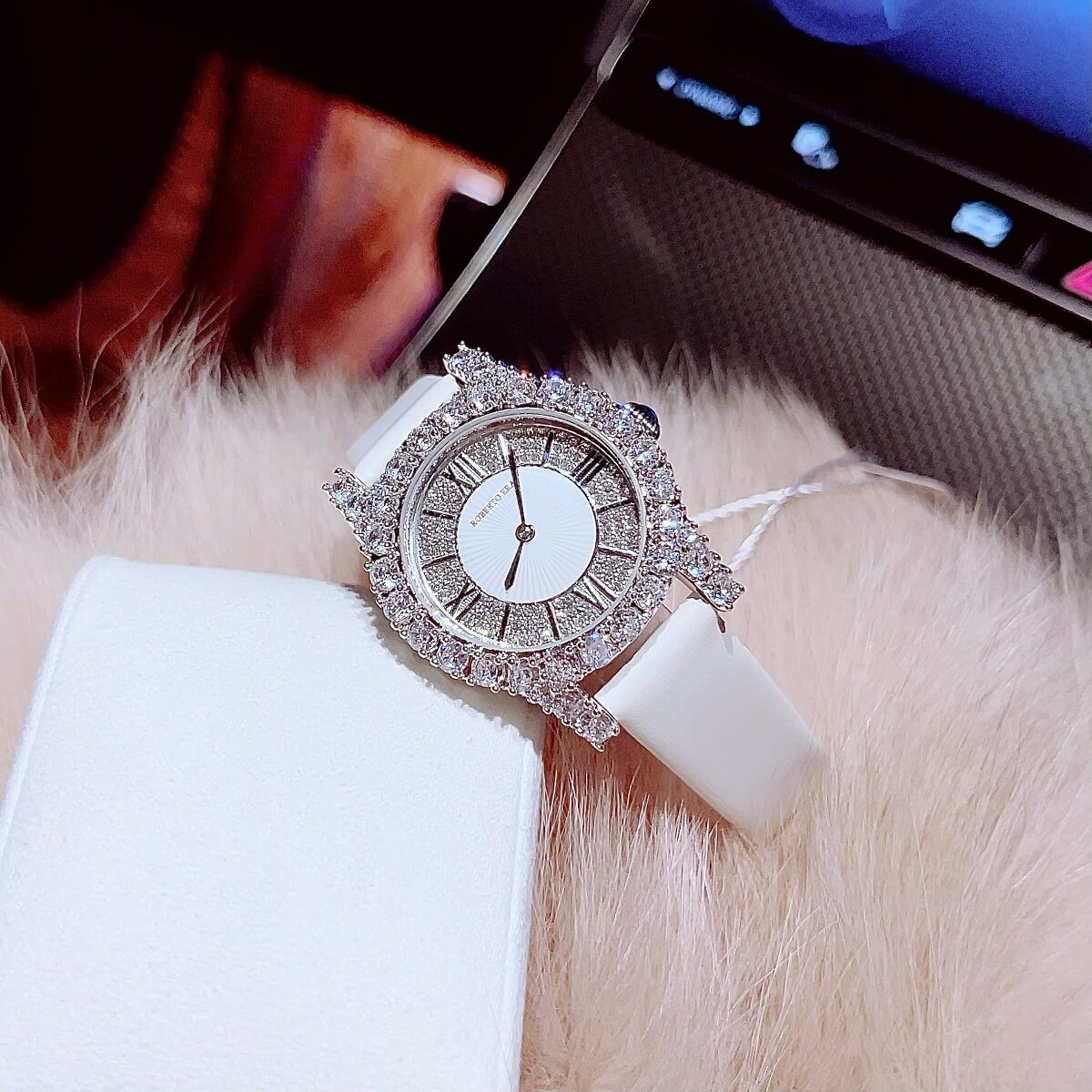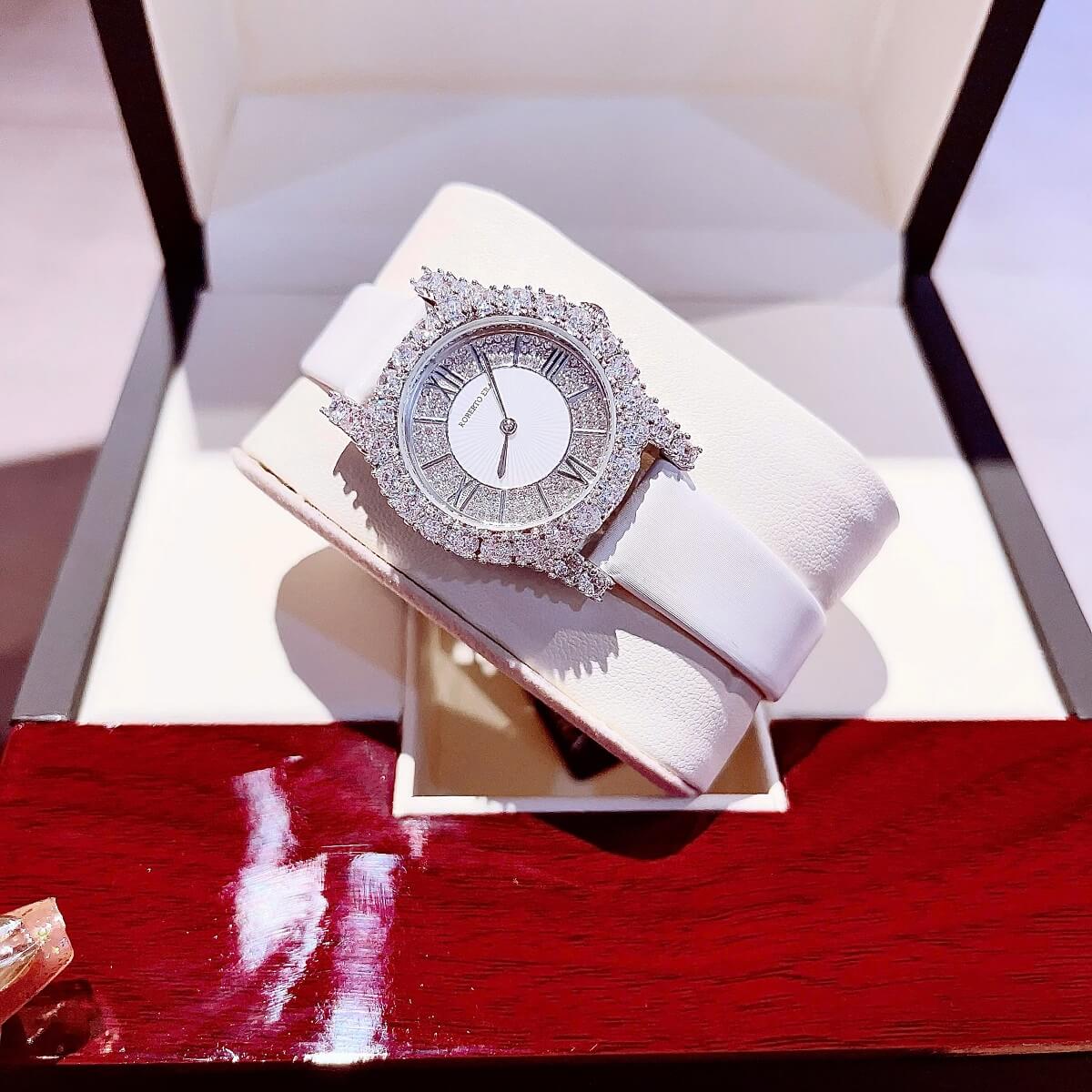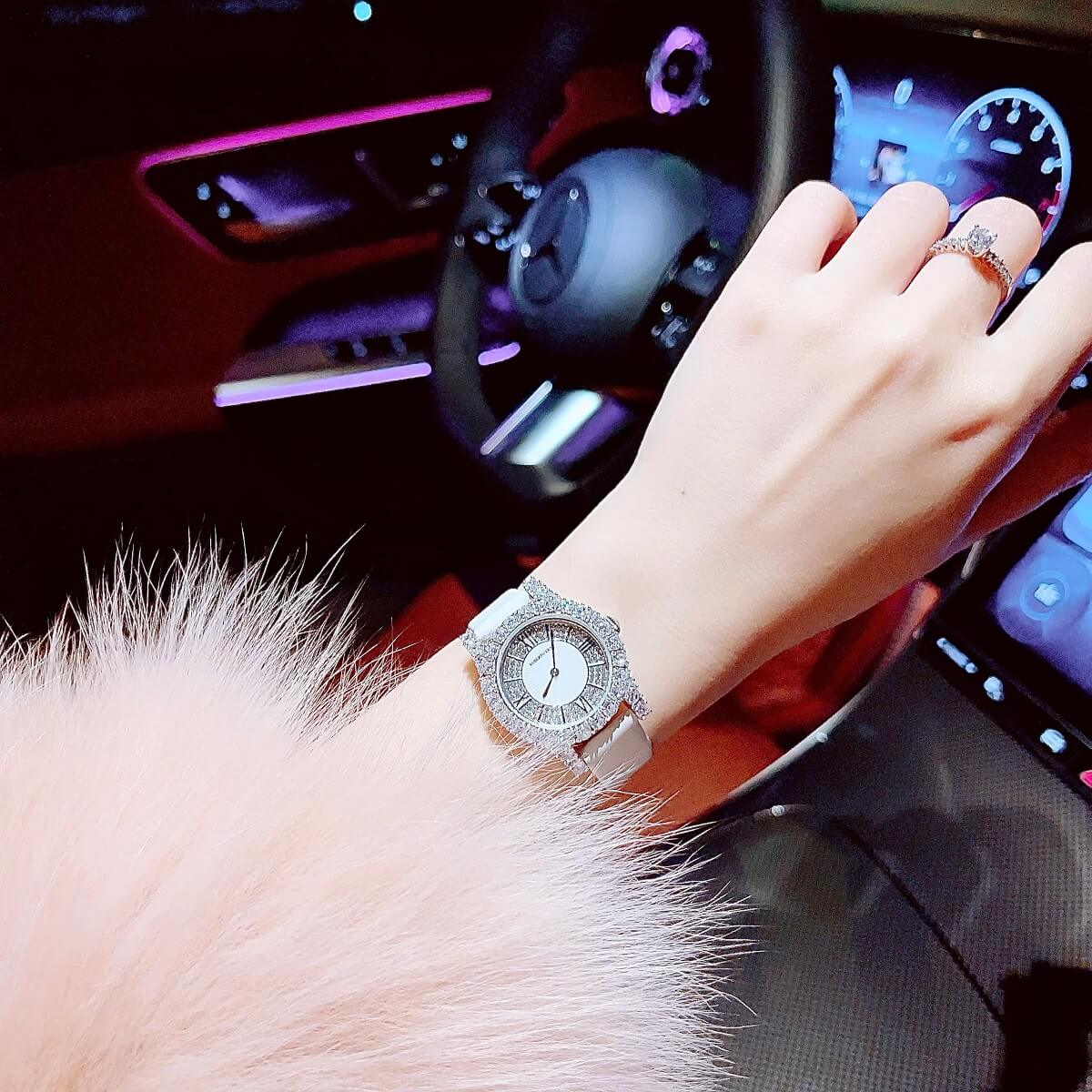 Điểm nhấn đặc biệt của chiếc đồng hồ này chính là các chi tiết đính đá quanh viền mặt đồng hồ. Những viên đá sáng lấp lánh không chỉ tăng thêm vẻ đẹp lộng lẫy mà còn thể hiện sự tinh tế, tỉ mỉ trong từng chi tiết thiết kế. Chiếc đồng hồ này sẽ làm nổi bật phong cách và gu thẩm mỹ của người sở hữu, đồng thời mang lại cảm giác tự tin và quý phái cho người sử dụng.
