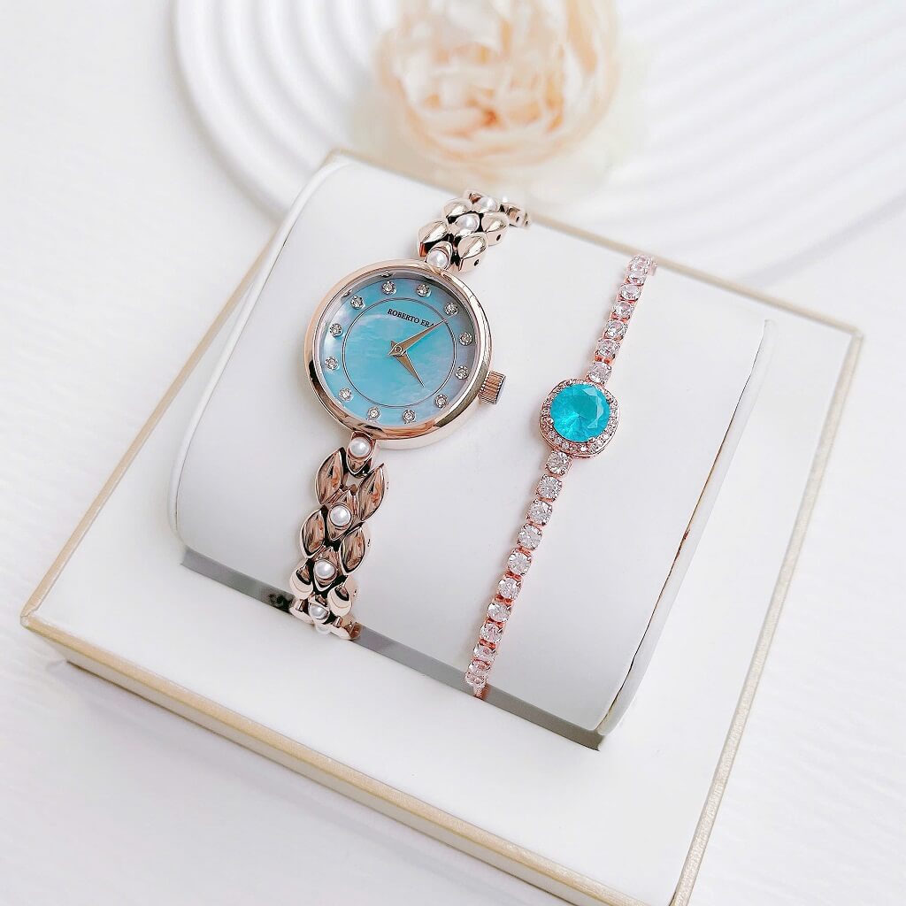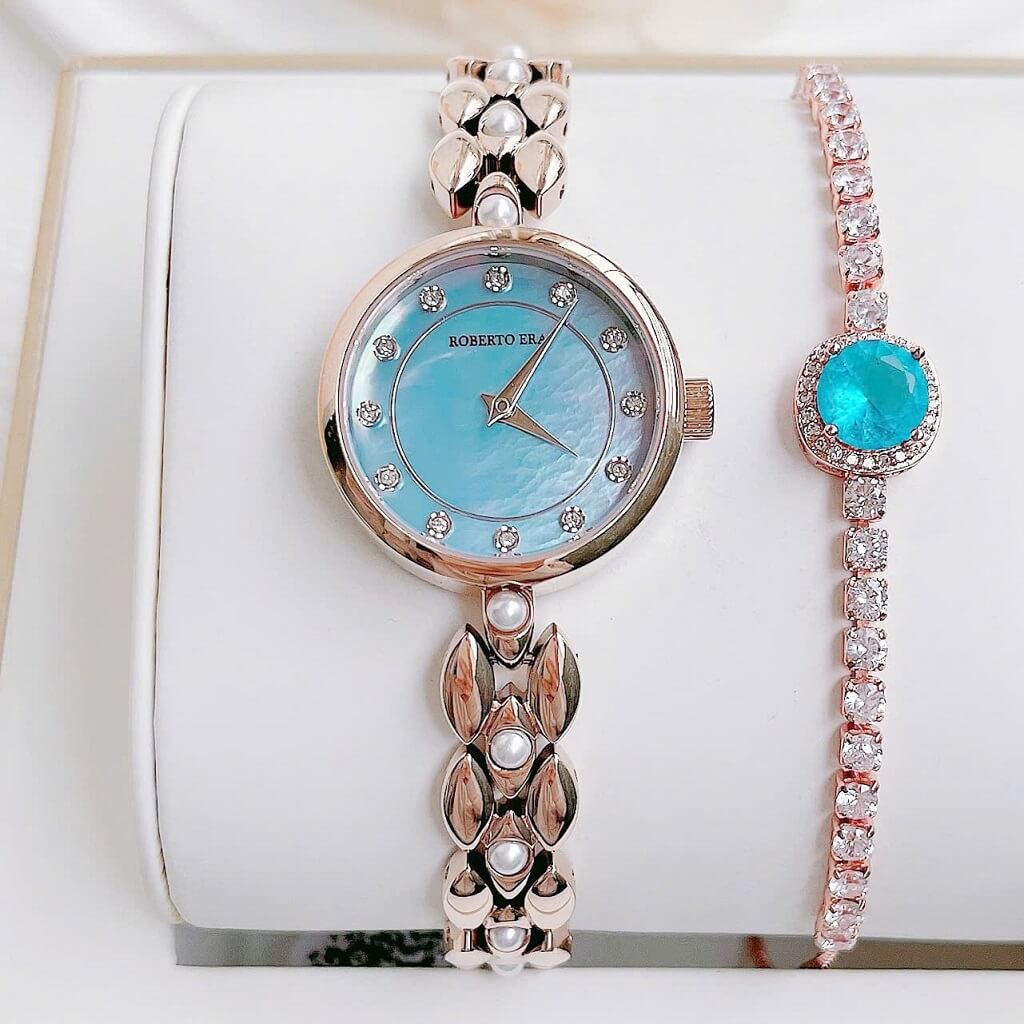 Roberto Era luôn là lựa chọn hàng đầu cho những ai yêu thích sự kết hợp giữa vẻ đẹp hiện đại và phong cách cổ điển. Mẫu đồng hồ nữ mặt xanh xà cừ dây kim loại vàng hồng size 28mm là một minh chứng rõ nét cho sự tinh tế và đẳng cấp.
