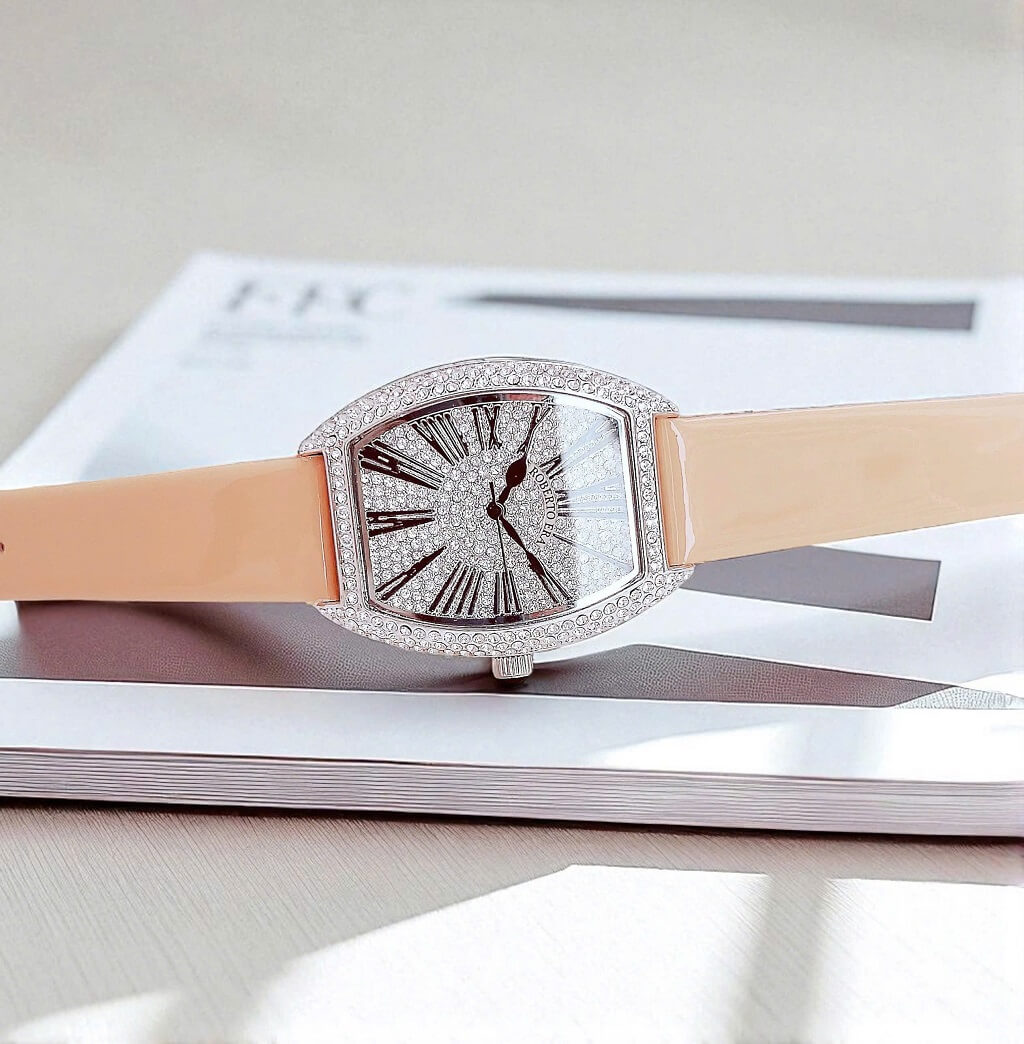 Roberto Era RE0221 sở hữu mặt đồng hồ hình ovan độc đáo với kích thước 36mm – vừa vặn và tôn lên cổ tay nhỏ nhắn của phụ nữ. Viền mặt được đính đá sáng lấp lánh, tạo nên điểm nhấn nổi bật, thu hút ánh nhìn trong mọi hoàn cảnh. Vỏ đồng hồ được chế tác từ thép không gỉ màu bạc (silver) cao cấp, không chỉ bền bỉ mà còn mang đến vẻ ngoài sang trọng, sáng bóng theo thời gian.