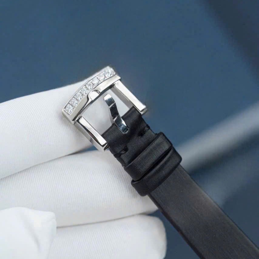 Dây được làm bằng da lụa màu đen bóng mượt, không bám bụi, mềm mại đeo nhẹ nhàng êm tay, khóa xiên tiện lợi cũng được đính hàng đá tỉ mỉ, khuyến cáo không nên mang bơi tắm để tăng thời gian sử dụng của bộ dây.