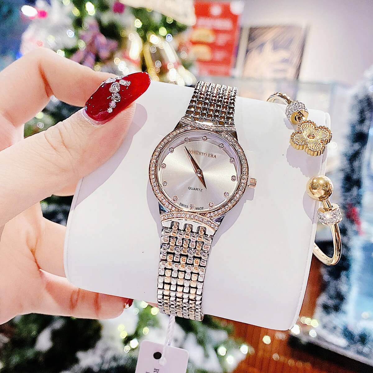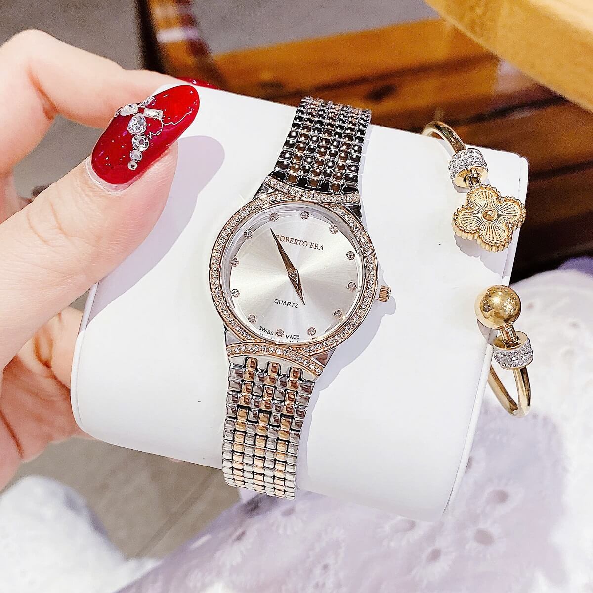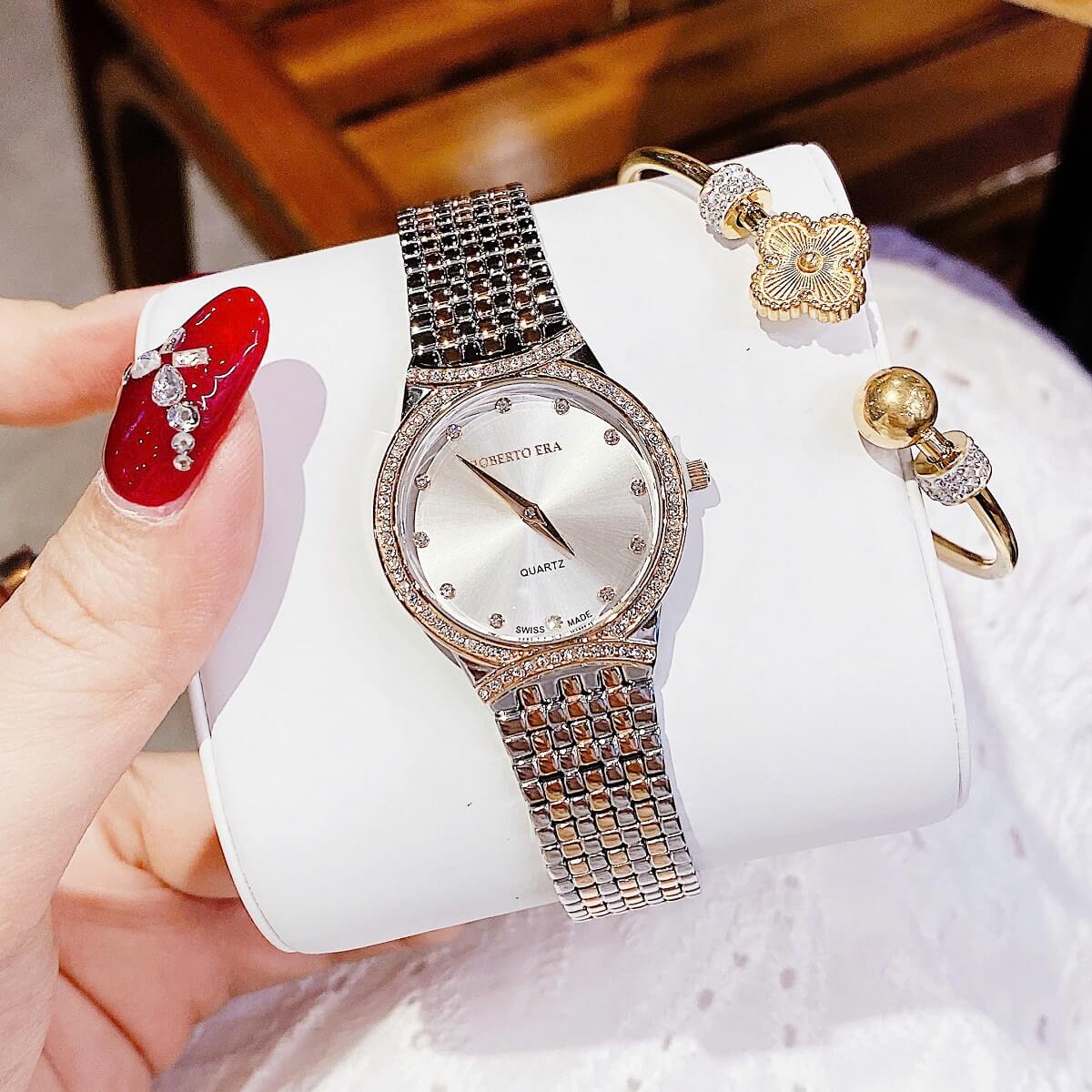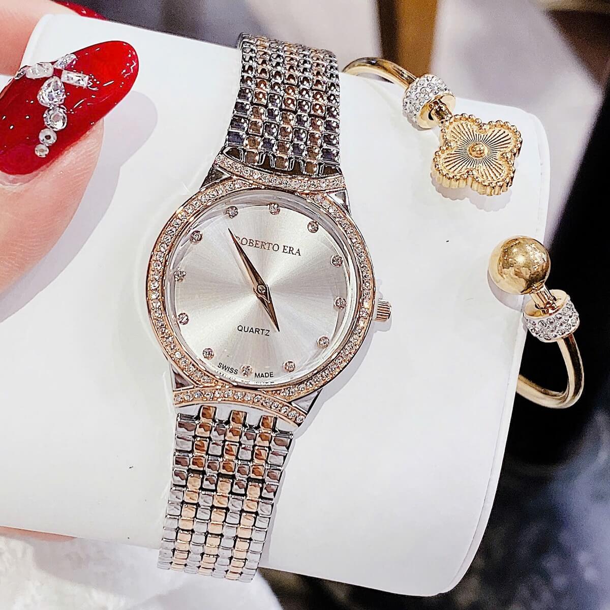 ĐỒNG HỒ NỮ ROBERTO ERA RE290 MÁY THỤY SĨ – ĐÍNH ĐÁ, VỎ DEMI ROSE, SIZE 30MM