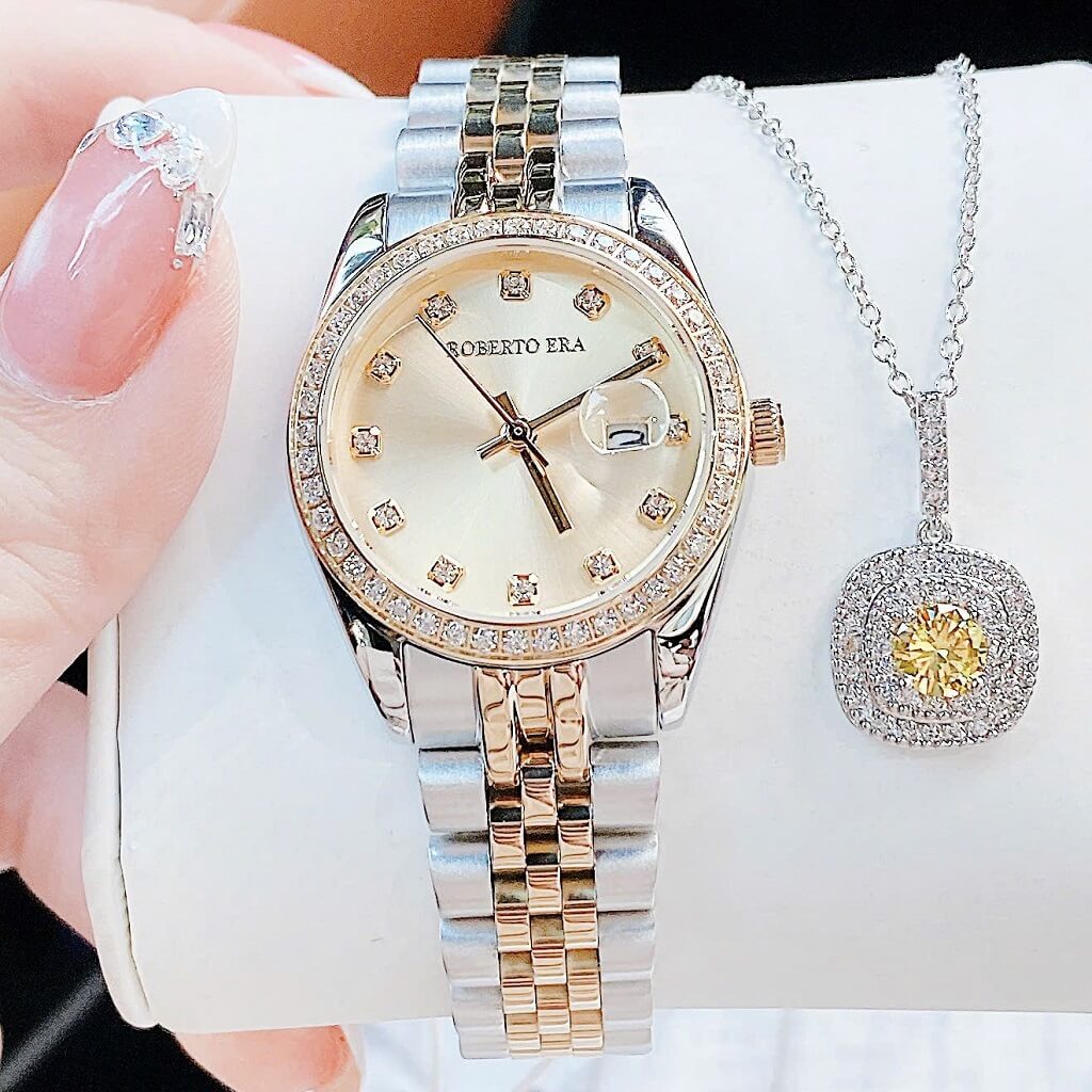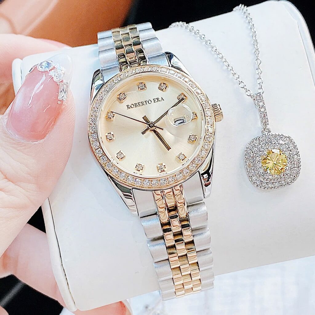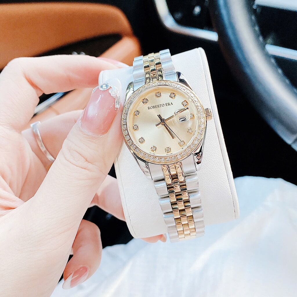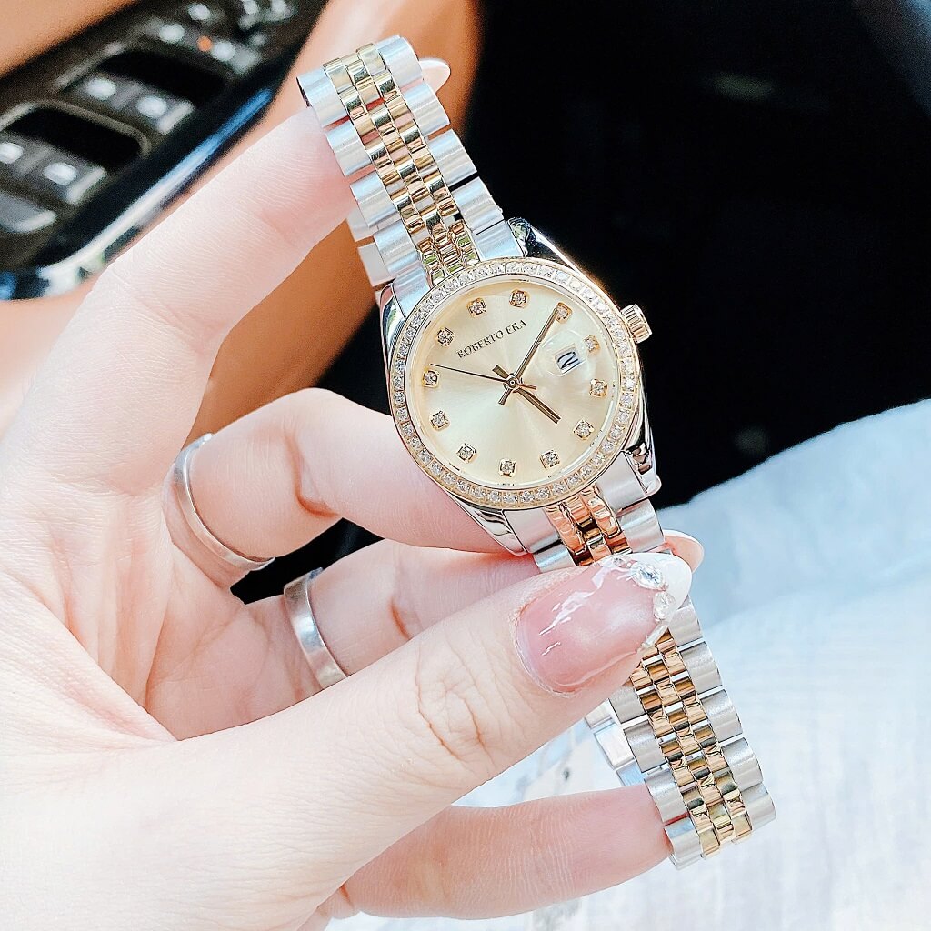 Đồng Hồ Nữ Roberto Era RE5655 Dây Kim Loại Demi Vàng Đính Đá Size 31mm – Thanh Lịch & Tỏa Sáng Mỗi Ngày