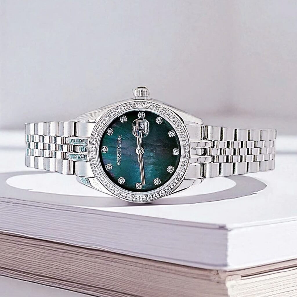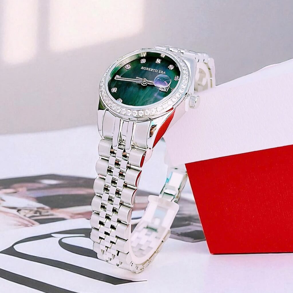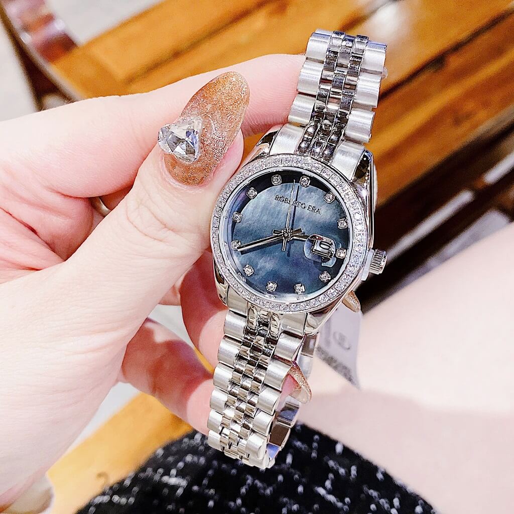 Dù bạn yêu thích phong cách nữ tính, thanh lịch hay quý phái, sang trọng, chiếc đồng hồ nữ Roberto Era RE5663 màu bạc sẽ là phụ kiện hoàn hảo. Sự kết hợp hài hòa giữa thiết kế và chất liệu mang đến một tổng thể thanh thoát, tinh tế – là món quà lý tưởng dành tặng cho chính mình hoặc người phụ nữ bạn yêu thương.