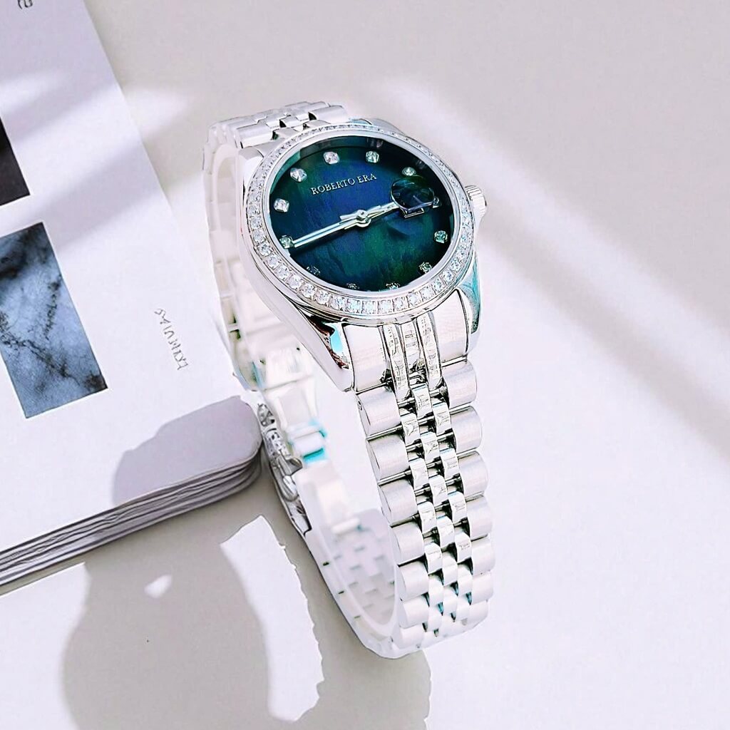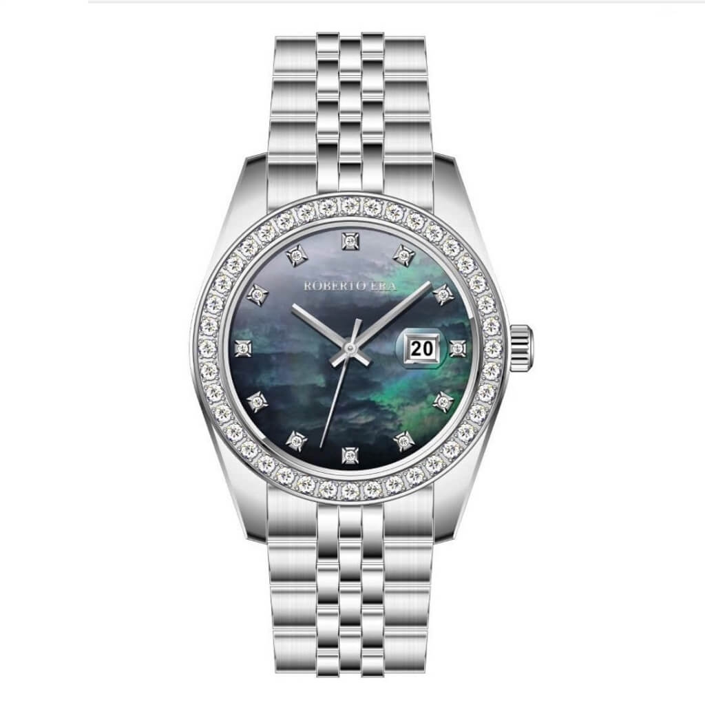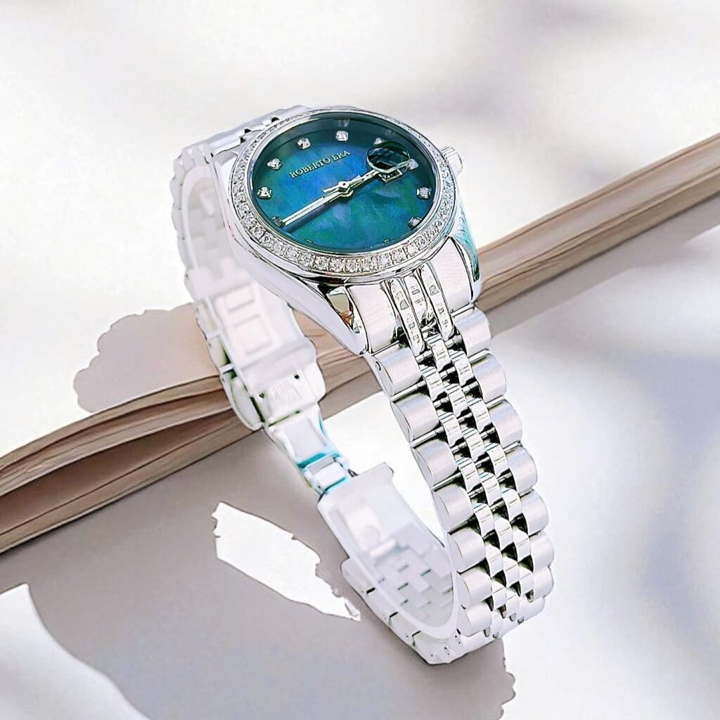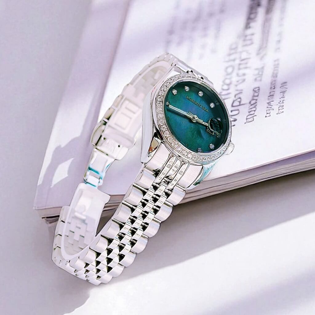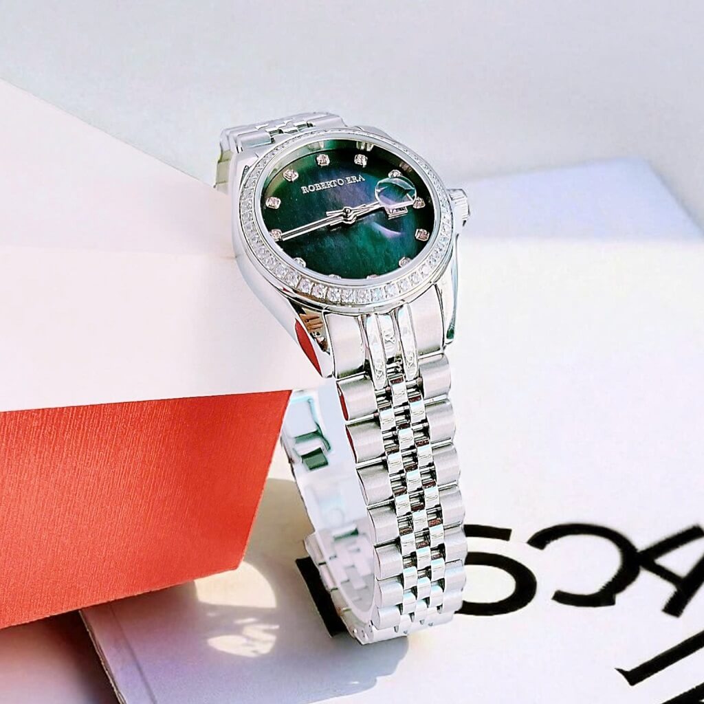 Roberto Era RE5663 là mẫu đồng hồ nữ cao cấp sở hữu thiết kế đầy cuốn hút, mang phong cách hiện đại xen lẫn nét cổ điển thanh lịch. Vỏ và dây được làm từ kim loại mạ bạc cao cấp, bền màu theo thời gian. Mặt đồng hồ tròn có đường kính 31mm – kích thước lý tưởng cho cổ tay phụ nữ Á Đông, vừa vặn và tôn lên nét nữ tính.
