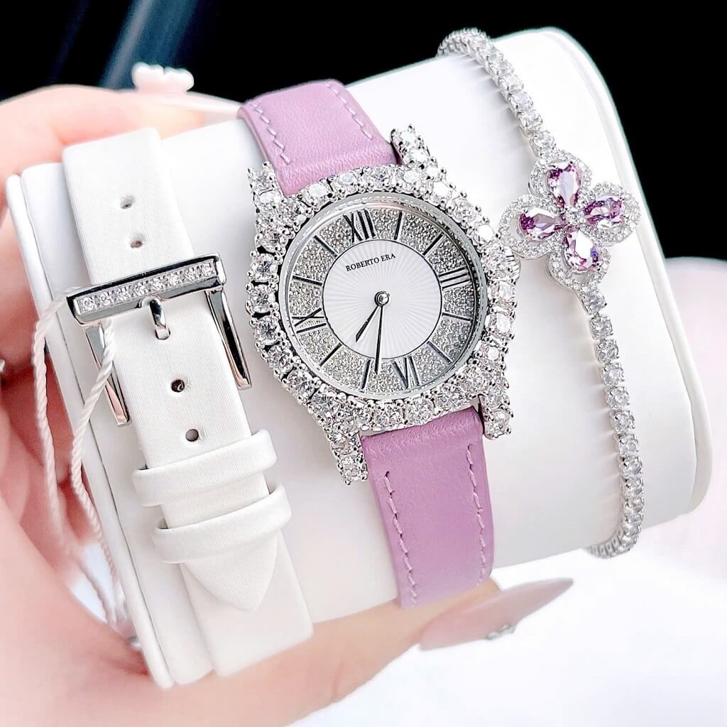 Đồng Hồ Nữ Roberto Era RE8348 sở hữu kiểu dáng tinh tế, kết hợp hoàn hảo giữa vẻ đẹp hiện đại và sự sang trọng cổ điển. Mặt đồng hồ tròn kích thước 31mm vừa vặn, tôn lên cổ tay thanh mảnh của phái nữ. Viền mặt đồng hồ được đính đá lấp lánh, tạo điểm nhấn nổi bật, thu hút mọi ánh nhìn.