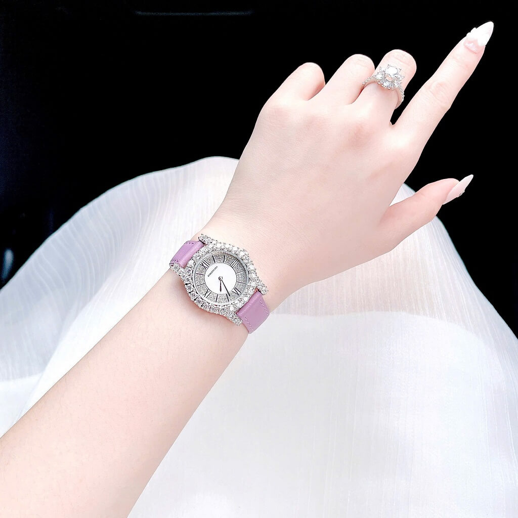 Vỏ đồng hồ làm từ thép không gỉ mạ bạc cao cấp, chống oxy hóa và bền màu theo thời gian. Tông màu Silver (bạc) tạo cảm giác sang trọng, dễ phối đồ, đặc biệt thích hợp với những cô nàng yêu thích sự thanh lịch nhưng vẫn nổi bật.