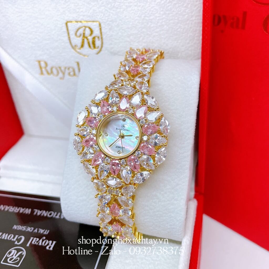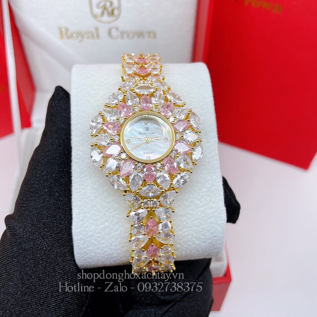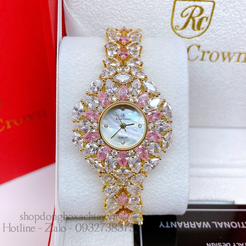 Hình Ảnh Đồng Hồ Nữ Royal Crown 2035 Đá Trắng Hồng Gold 34mm Chính Hãng