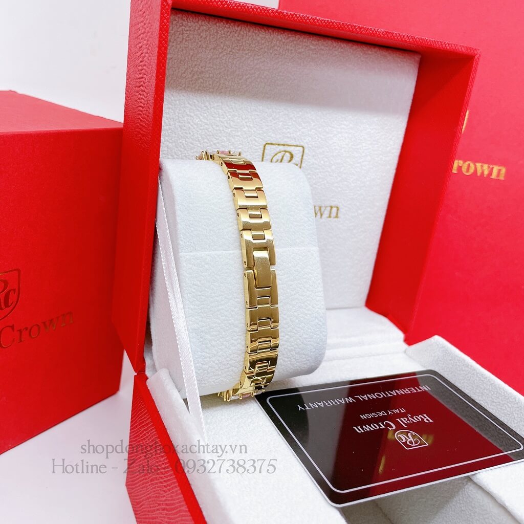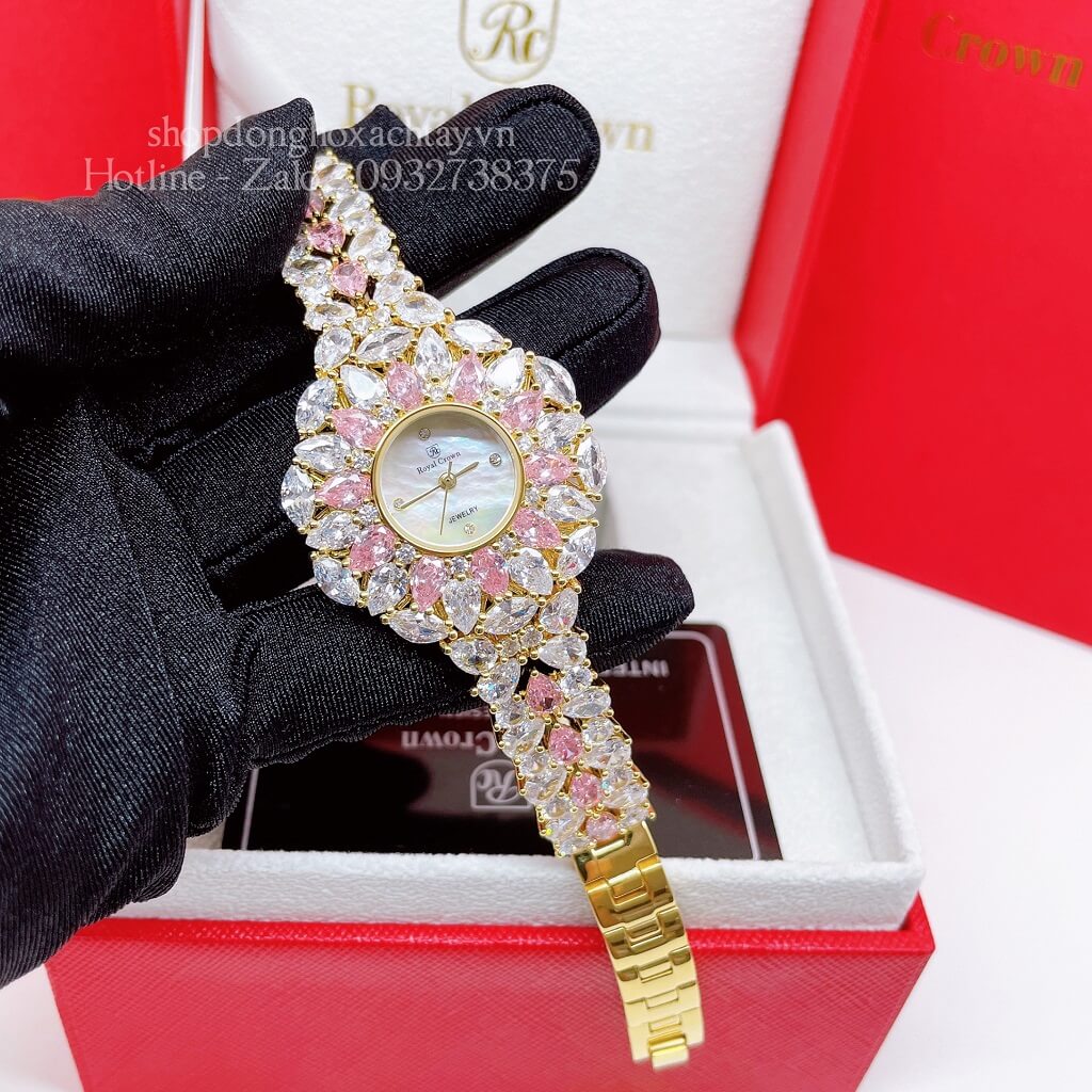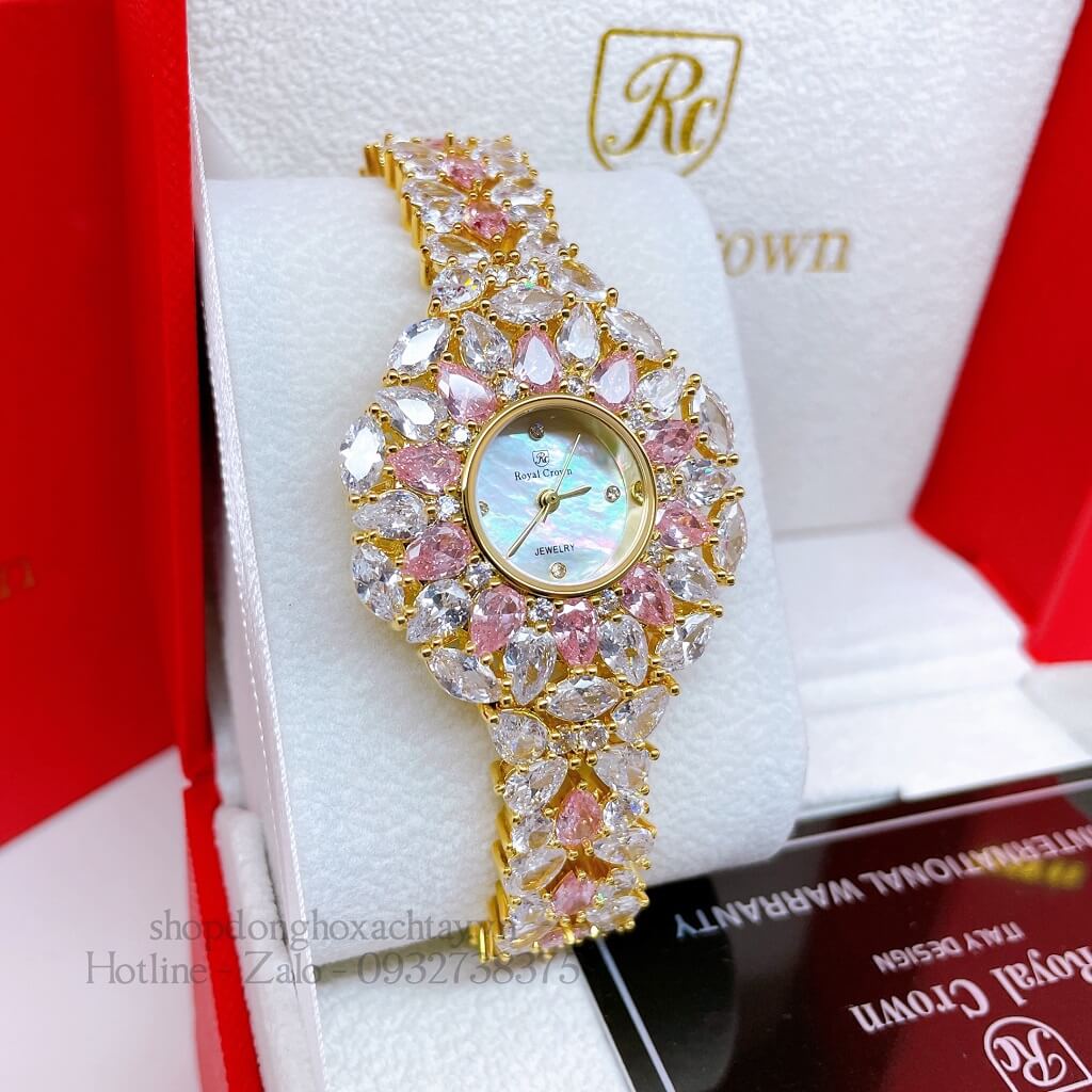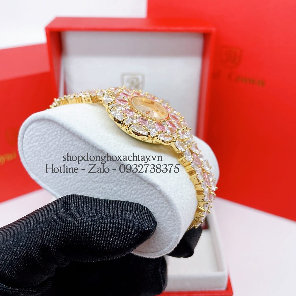 Hình Ảnh Đồng Hồ Nữ Royal Crown 2035 Đá Trắng Hồng Gold 34mm Chính Hãng